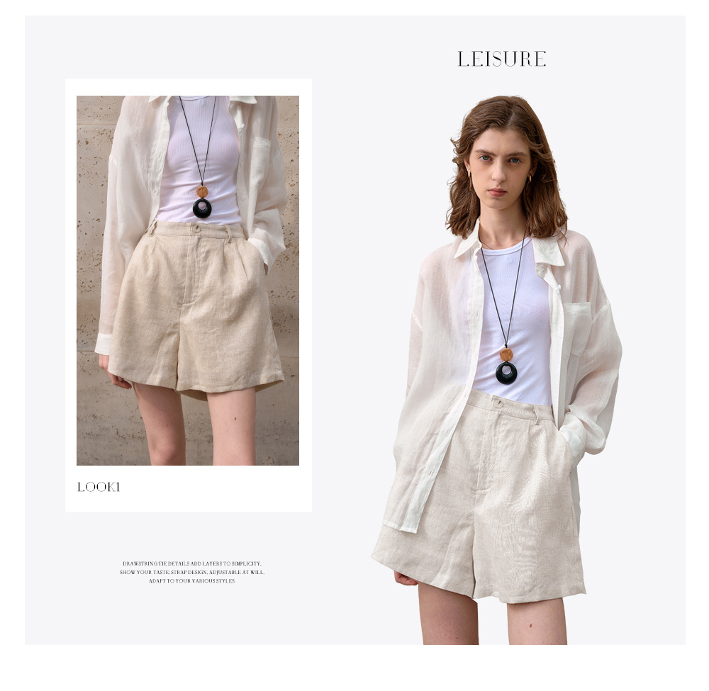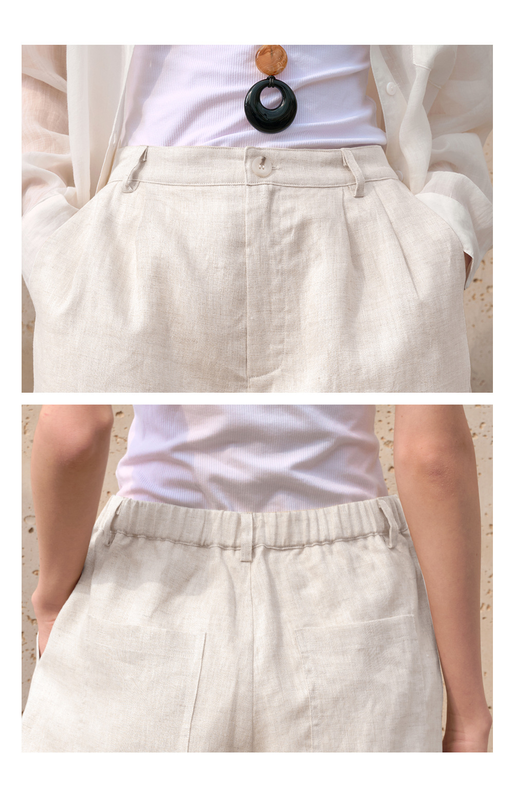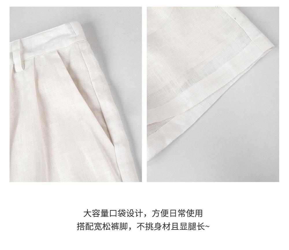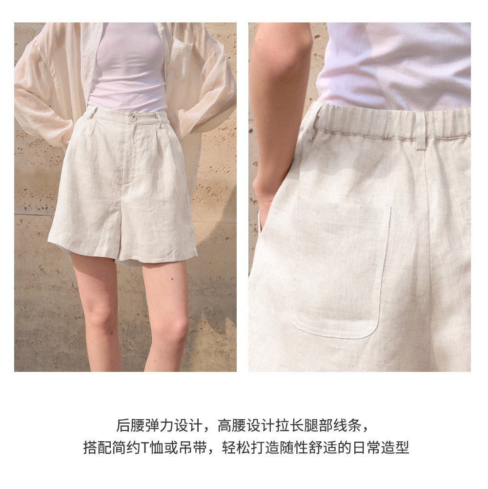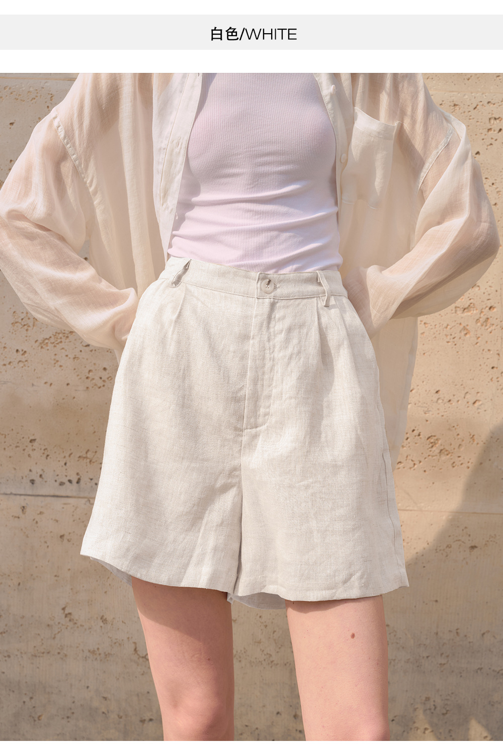 고급스러운 통근용 순면 린넨 하이웨이스트 반바지 화이트 여성용 26 여름 올드 머니 스타일 면마 핫팬츠 루즈핏 캐주얼 팬츠스토어 가기