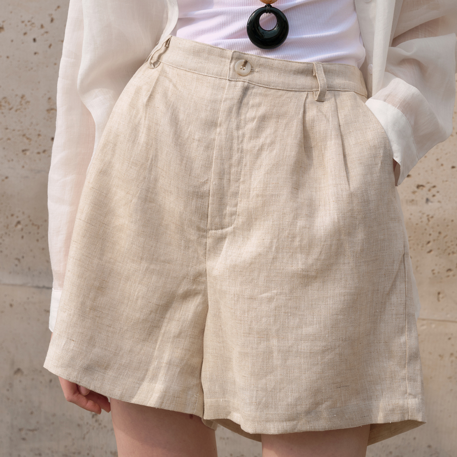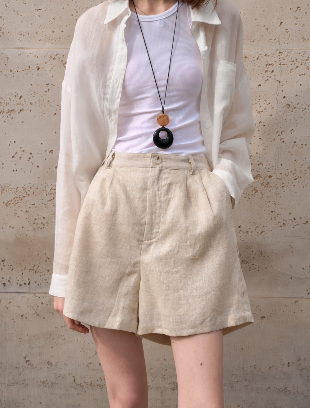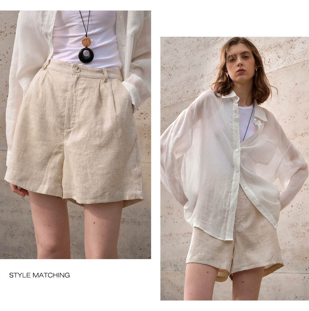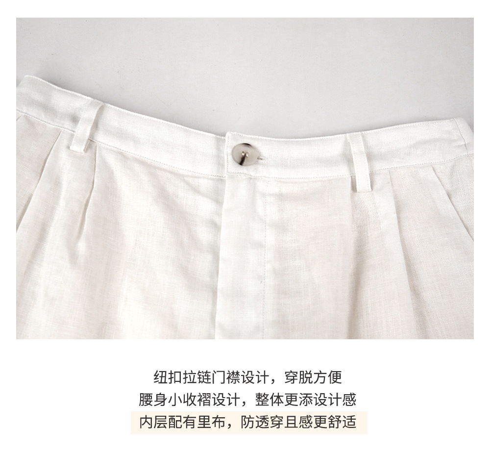 고급스러운 통근용 순면 린넨 하이웨이스트 반바지 화이트 여성용 26 여름 올드 머니 스타일 면마 핫팬츠 루즈핏 캐주얼 팬츠스토어 가기