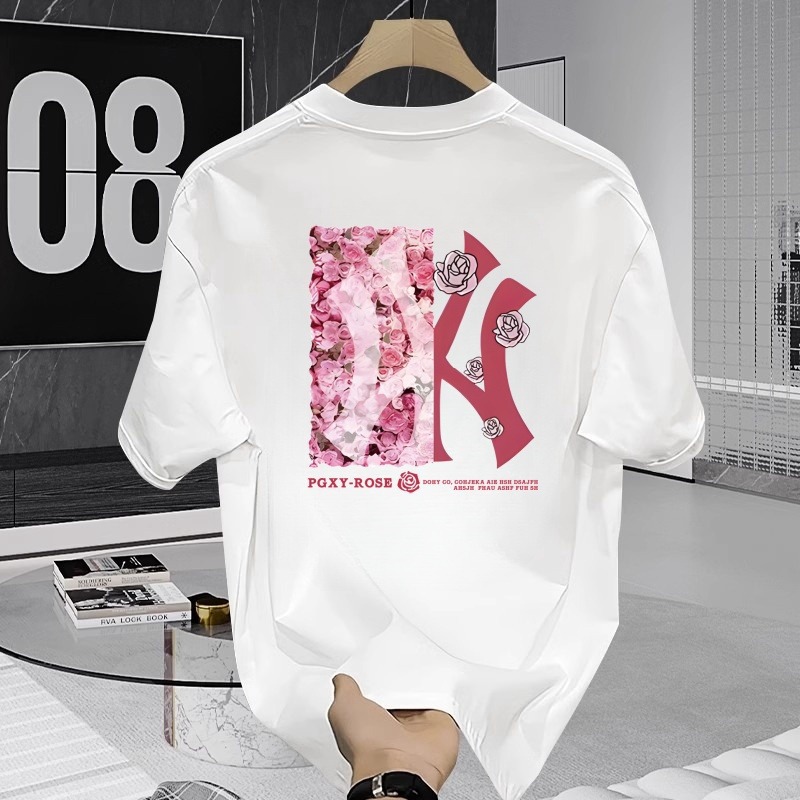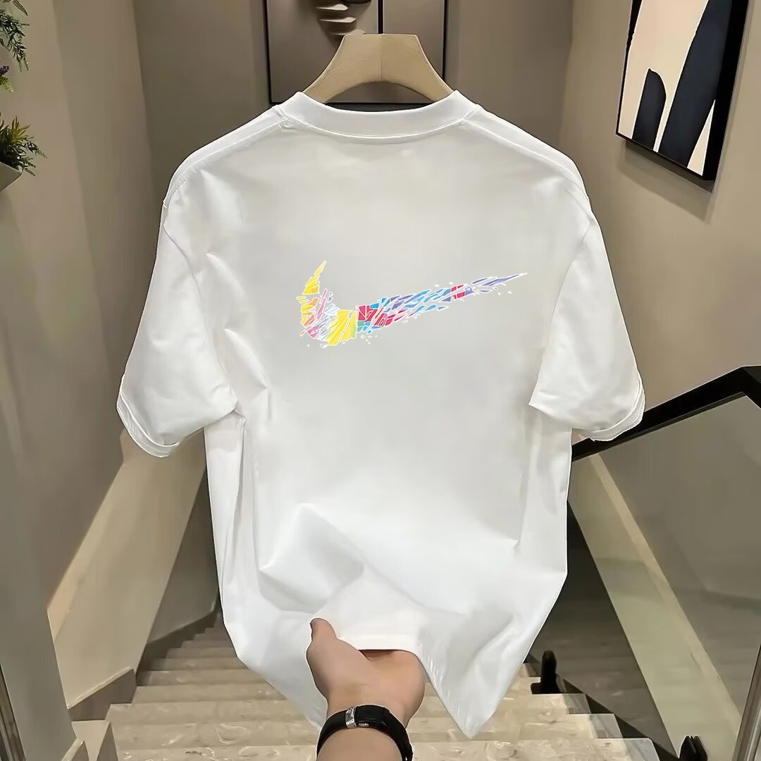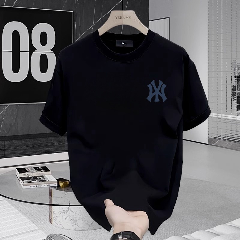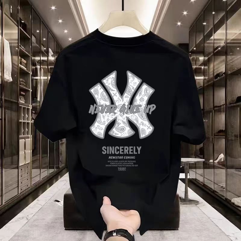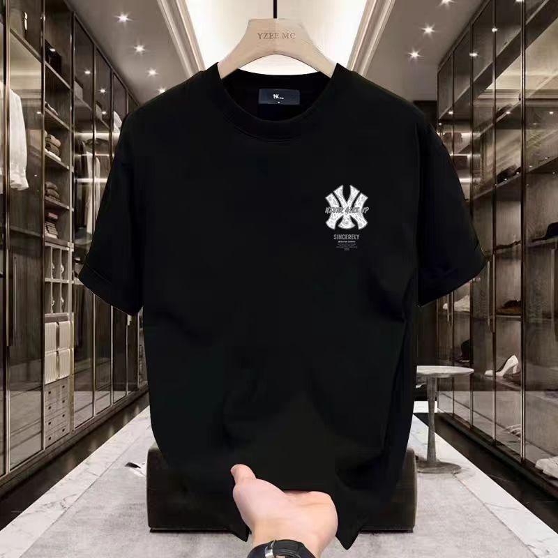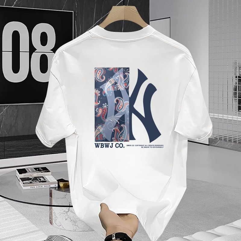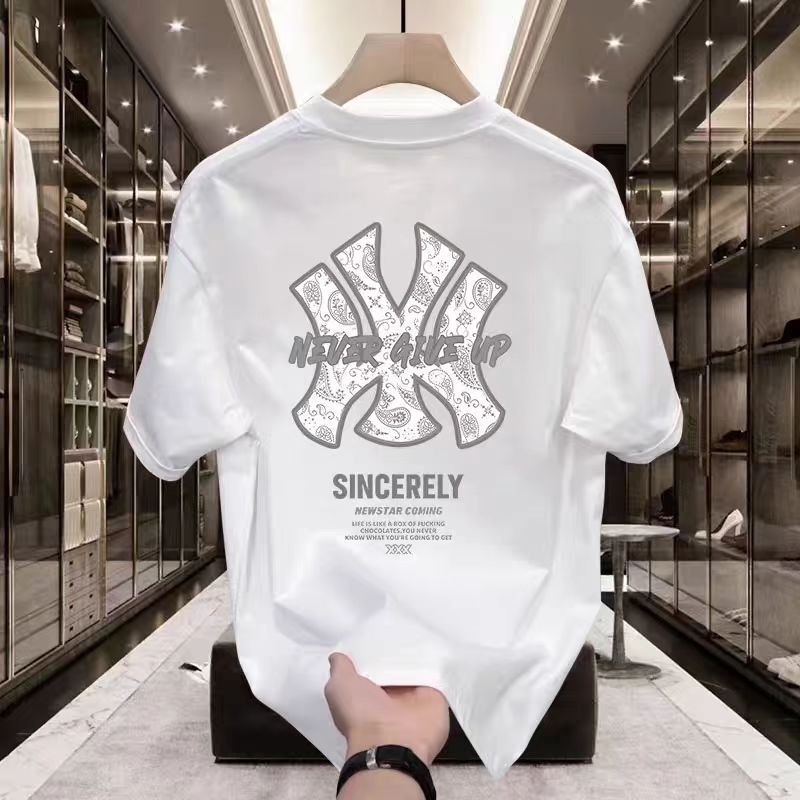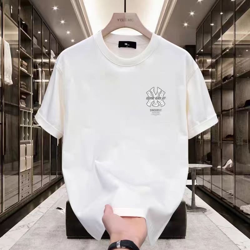 순수 코튼 반팔 티셔츠 남성 여름 유행 남성 의류 2025 트렌디 티셔츠 새로운 소년 반팔 티셔츠스토어 가기