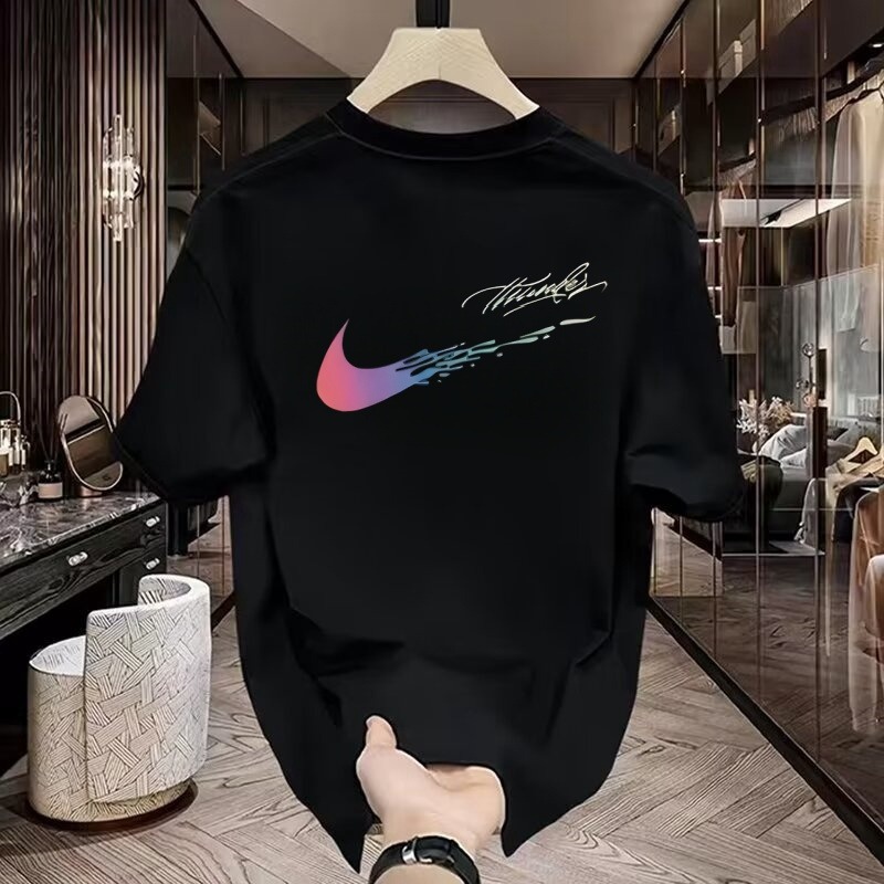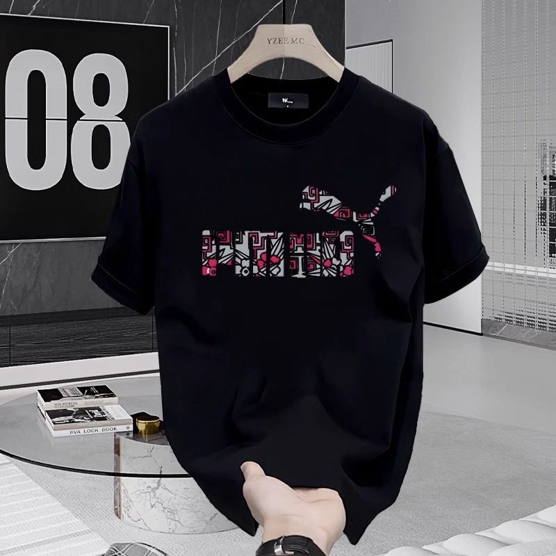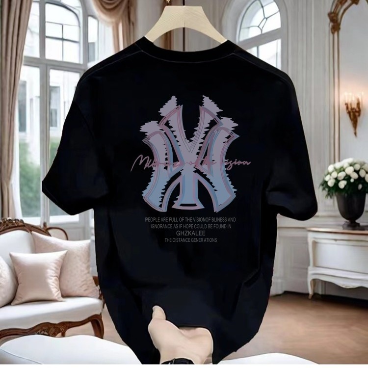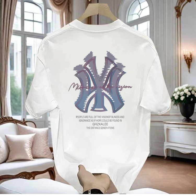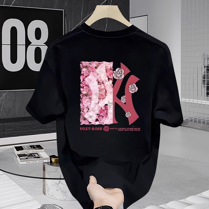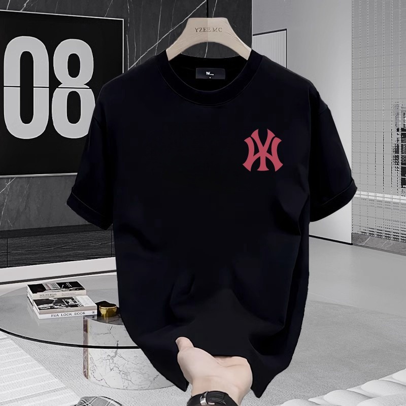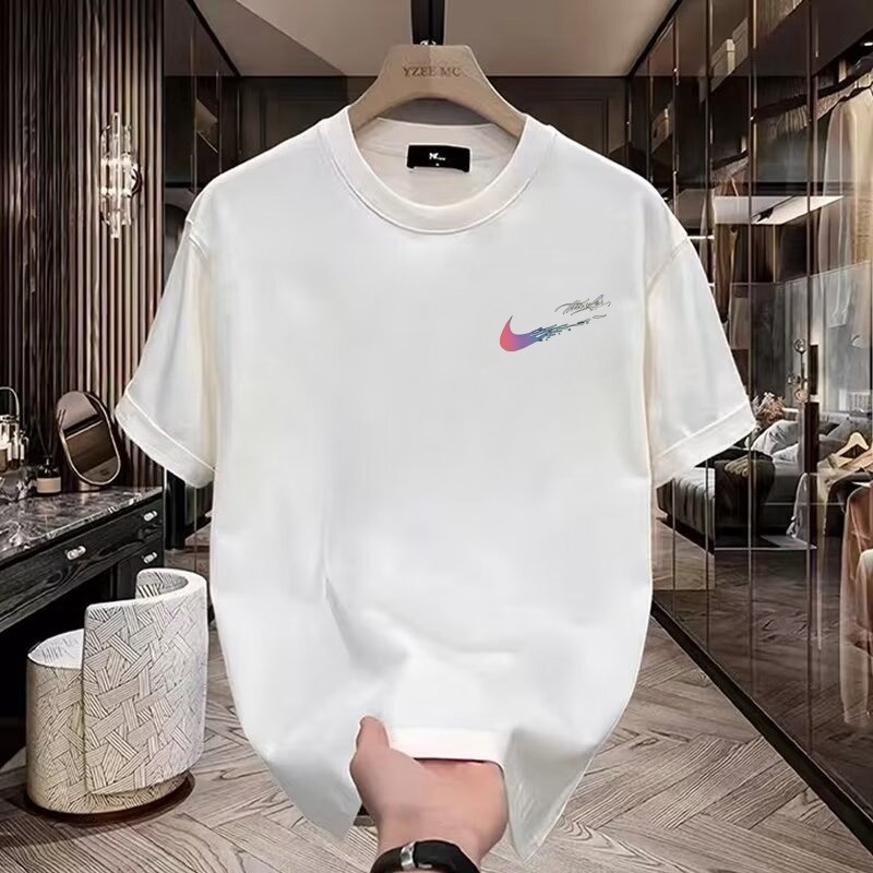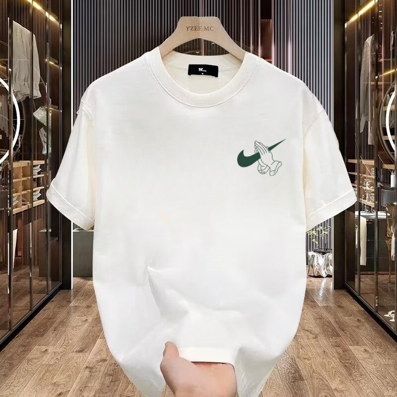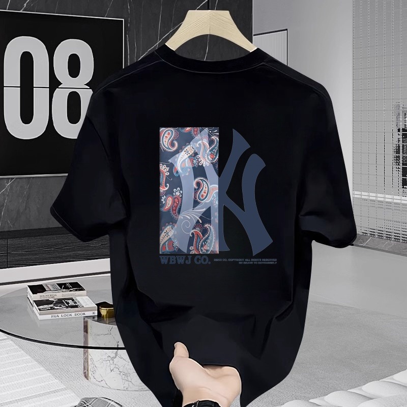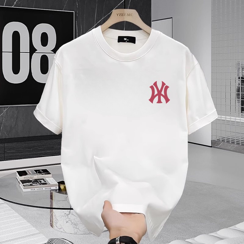 순수 코튼 반팔 티셔츠 남성 여름 유행 남성 의류 2025 트렌디 티셔츠 새로운 소년 반팔 티셔츠스토어 가기