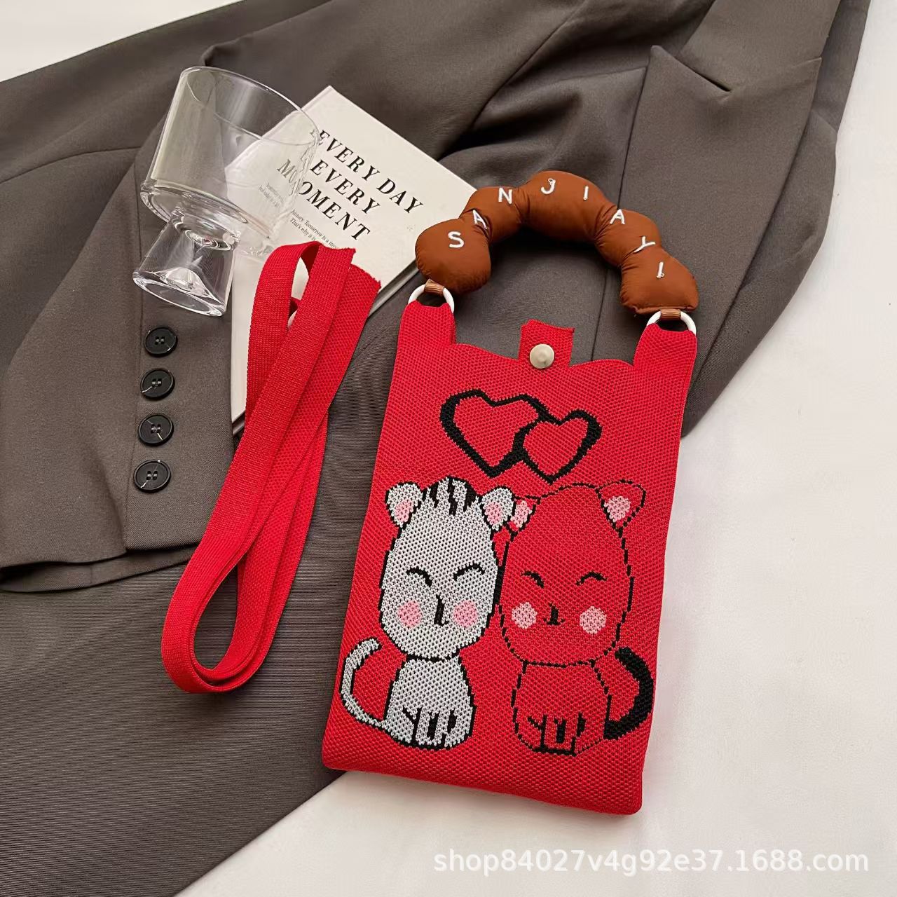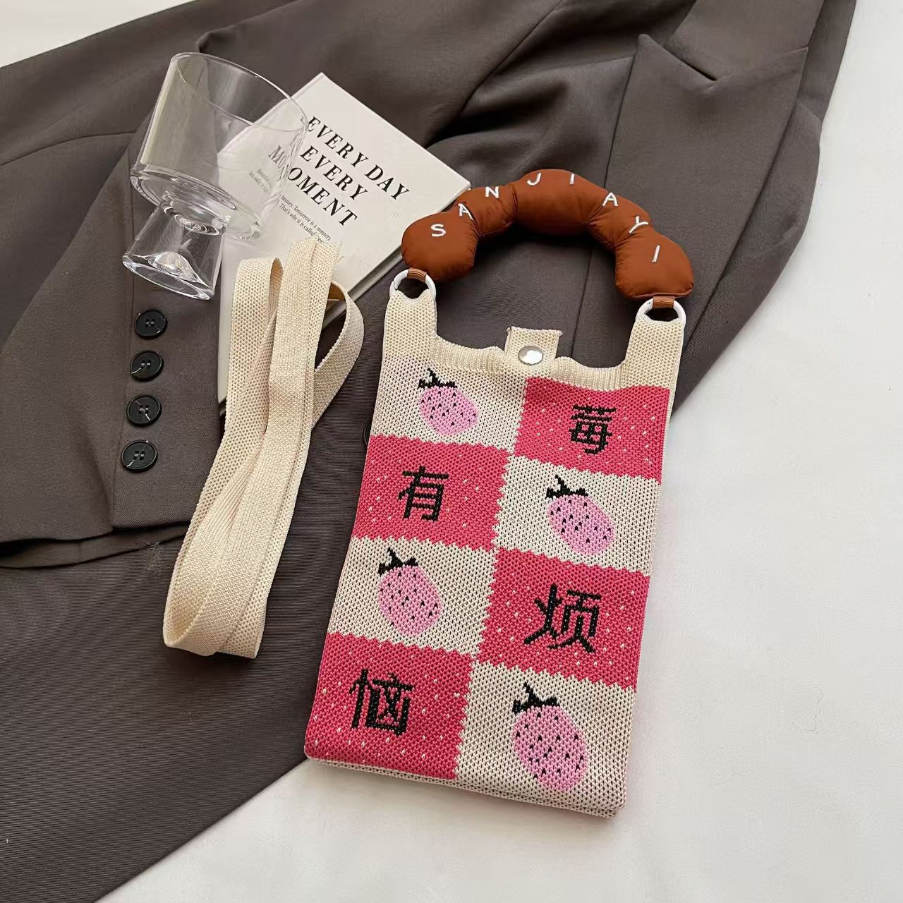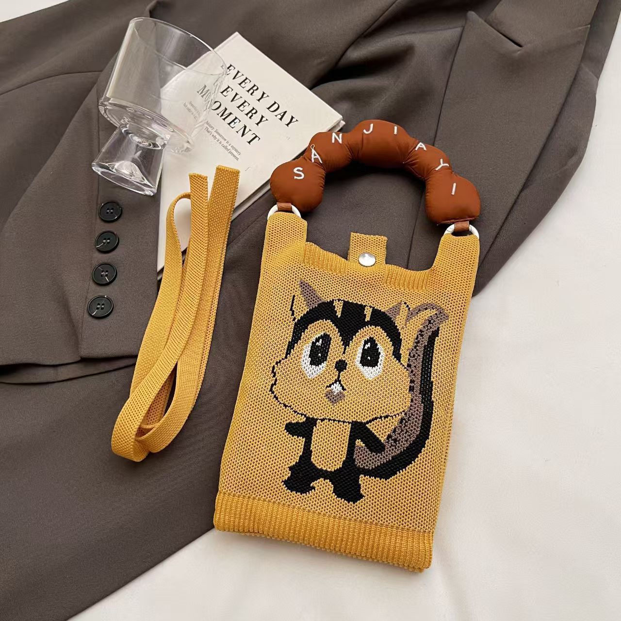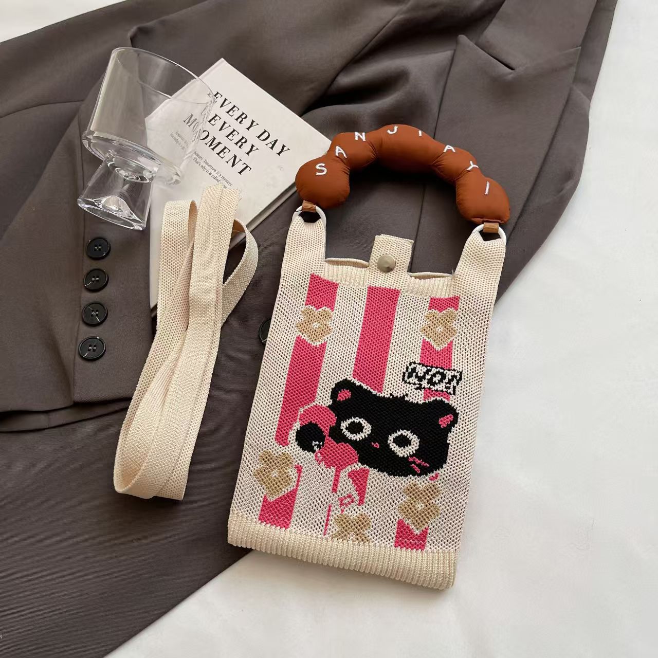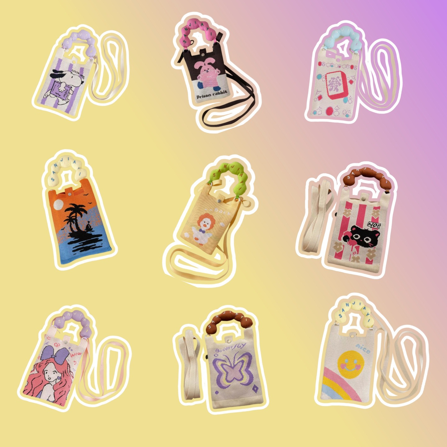 여름 올 매치 패션 휴대 전화 가방 여성의 귀여운 미니 가방 만화 니트 핸드백 어깨 가방 크로스 바디 가방