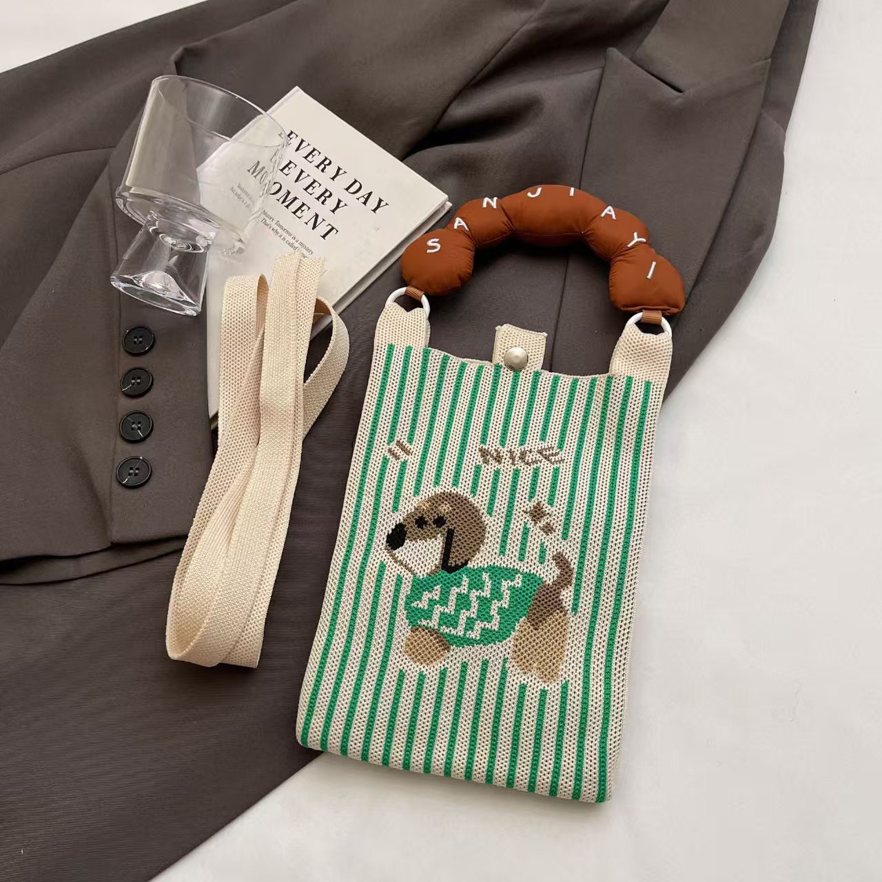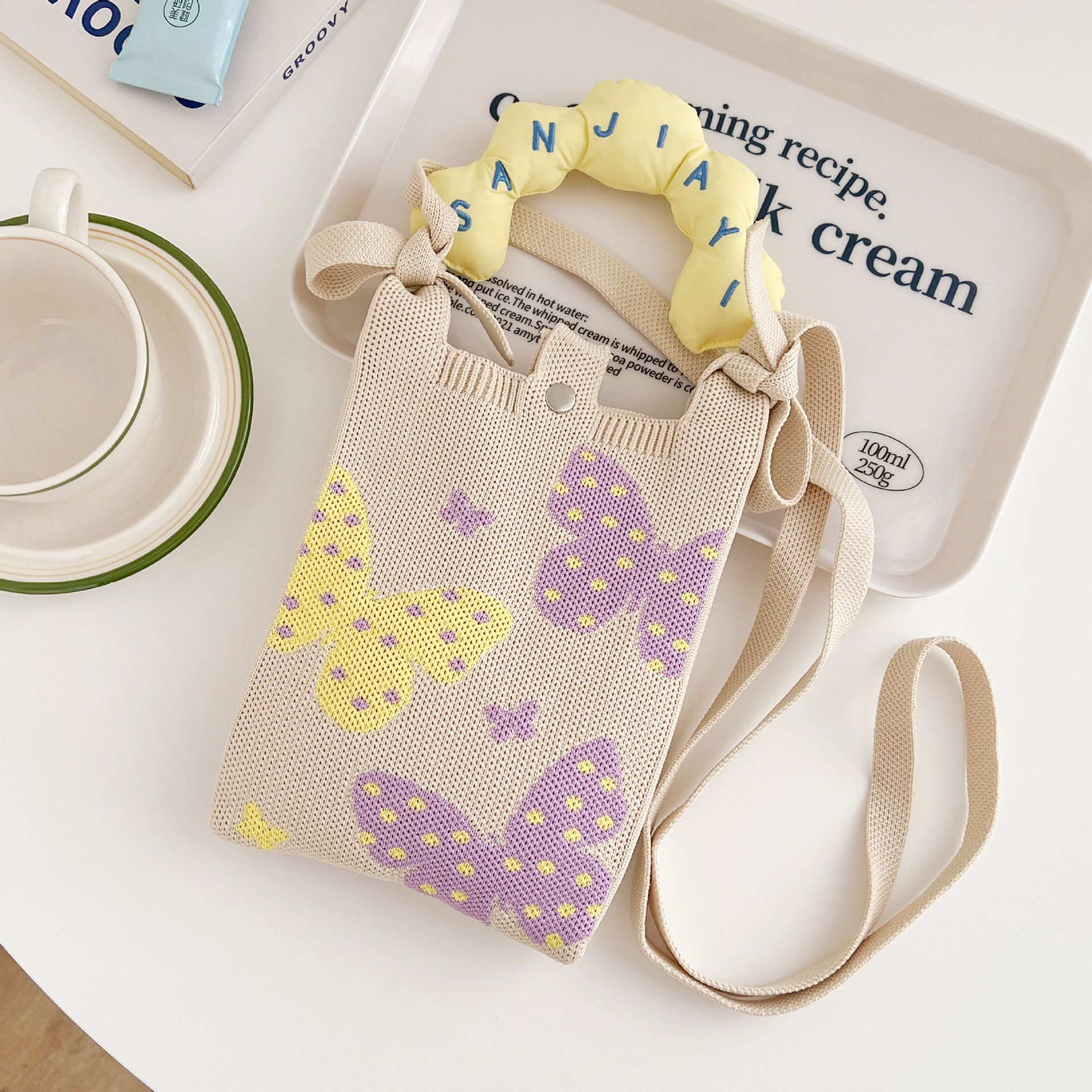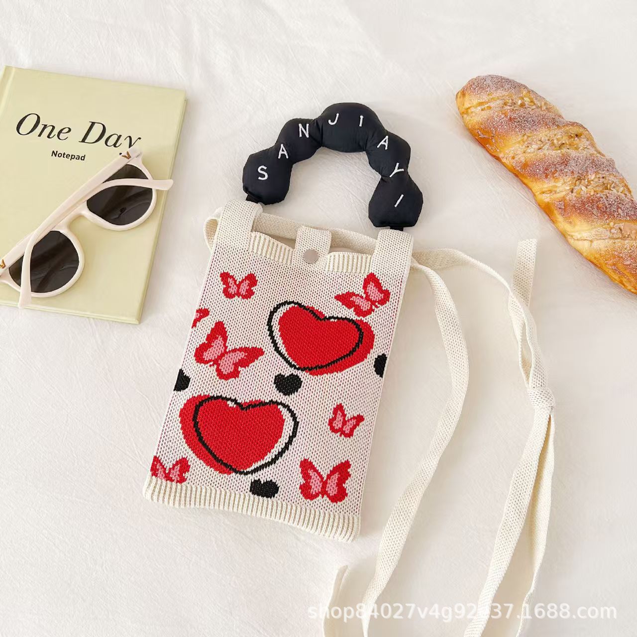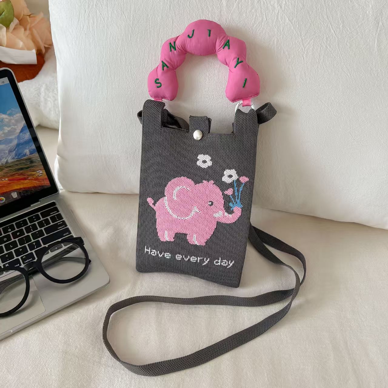여름 올 매치 패션 휴대 전화 가방 여성의 귀여운 미니 가방 만화 니트 핸드백 어깨 가방 크로스 바디 가방