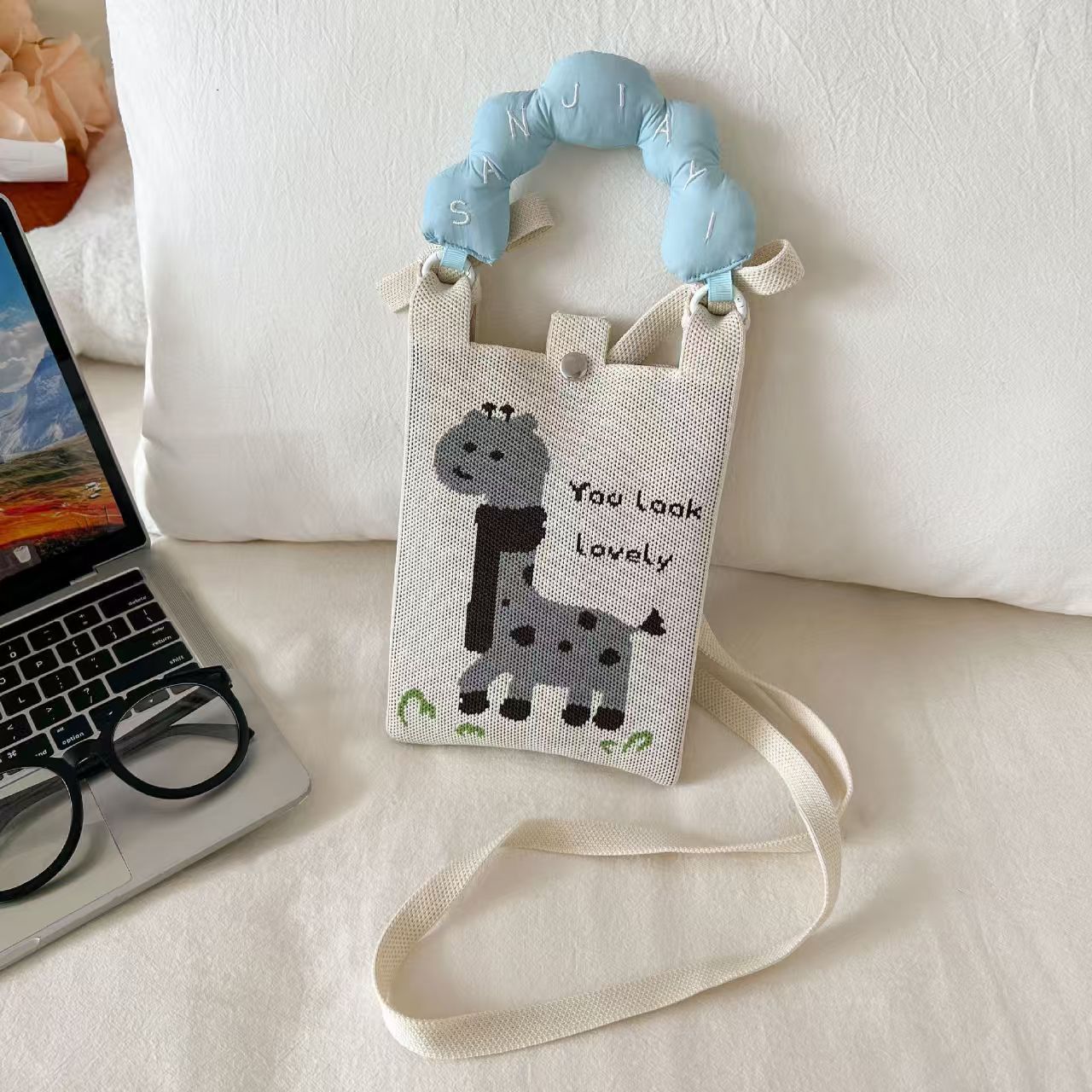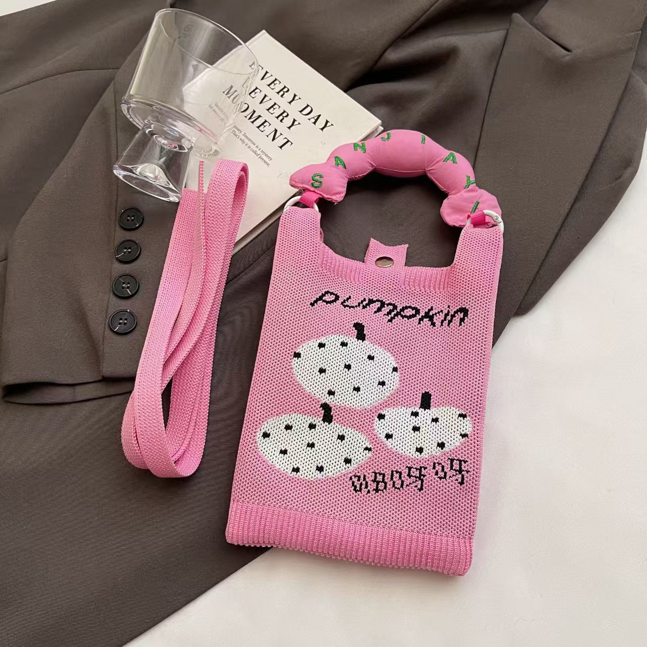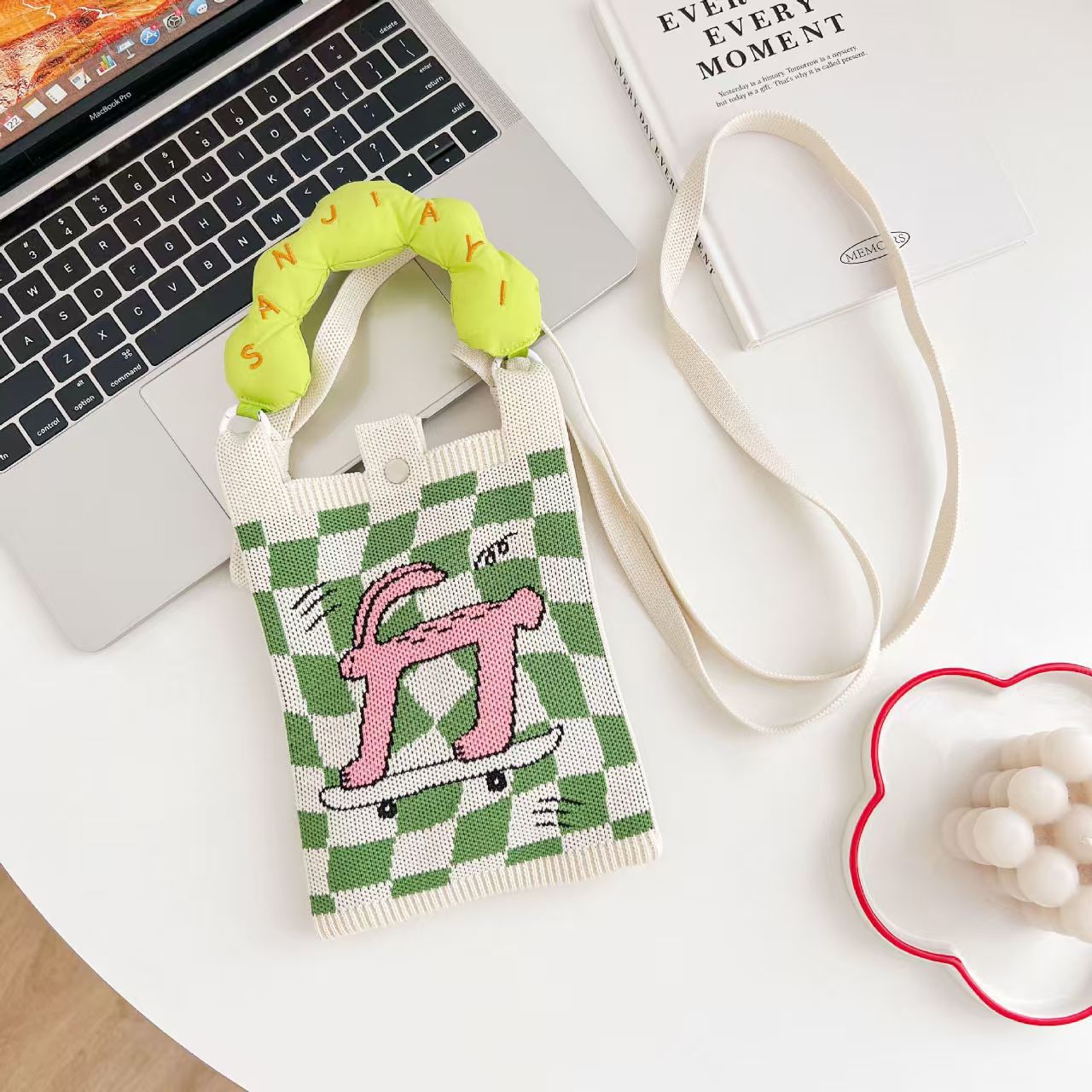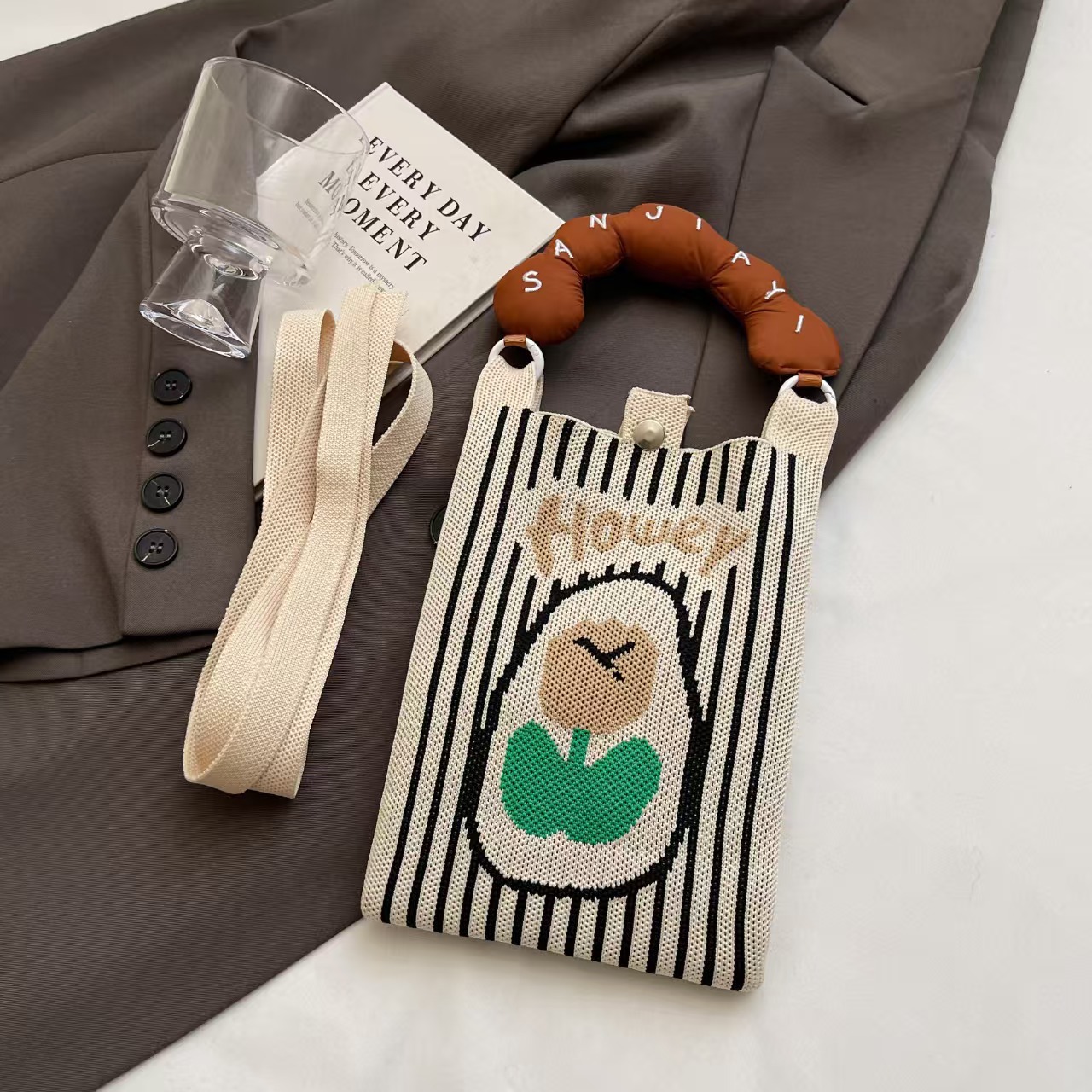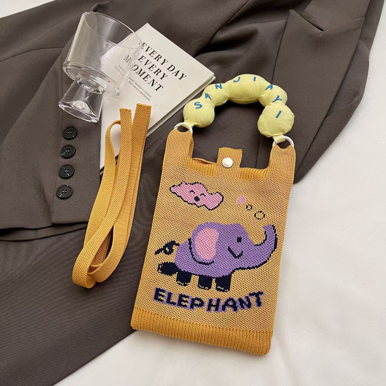 여름 올 매치 패션 휴대 전화 가방 여성의 귀여운 미니 가방 만화 니트 핸드백 어깨 가방 크로스 바디 가방