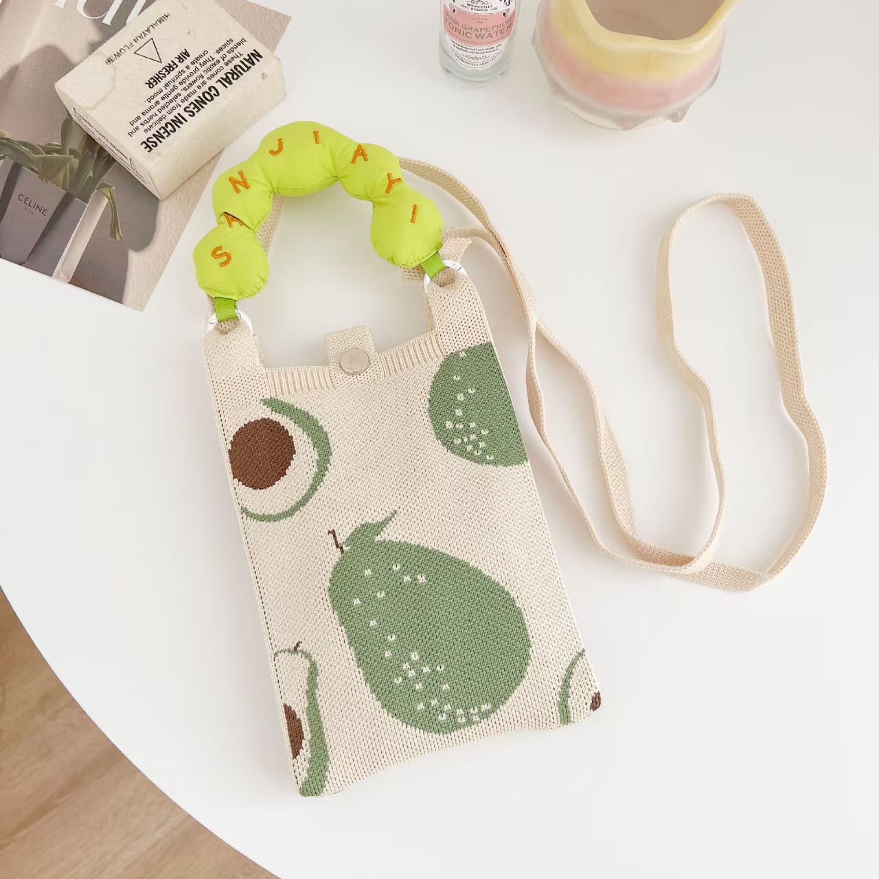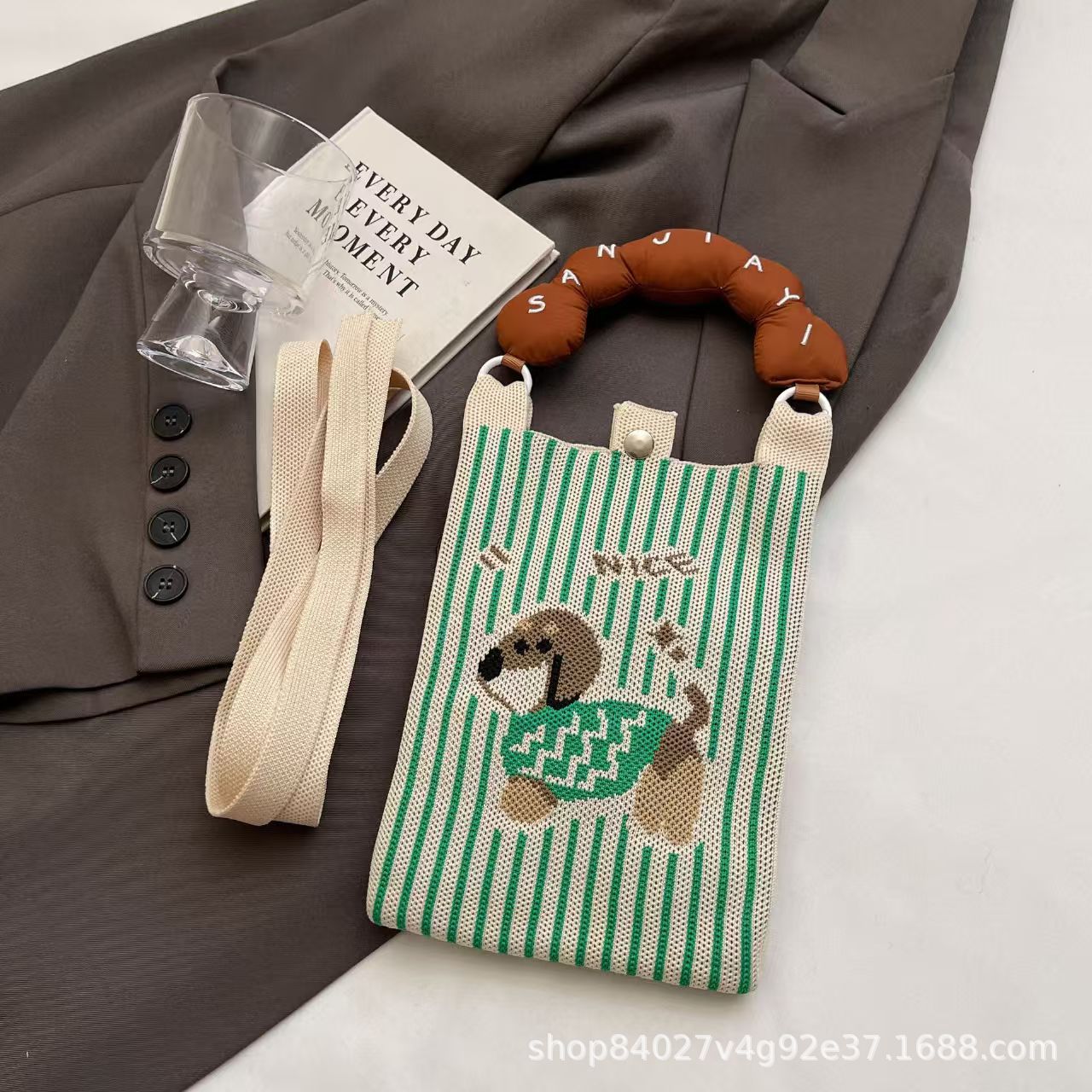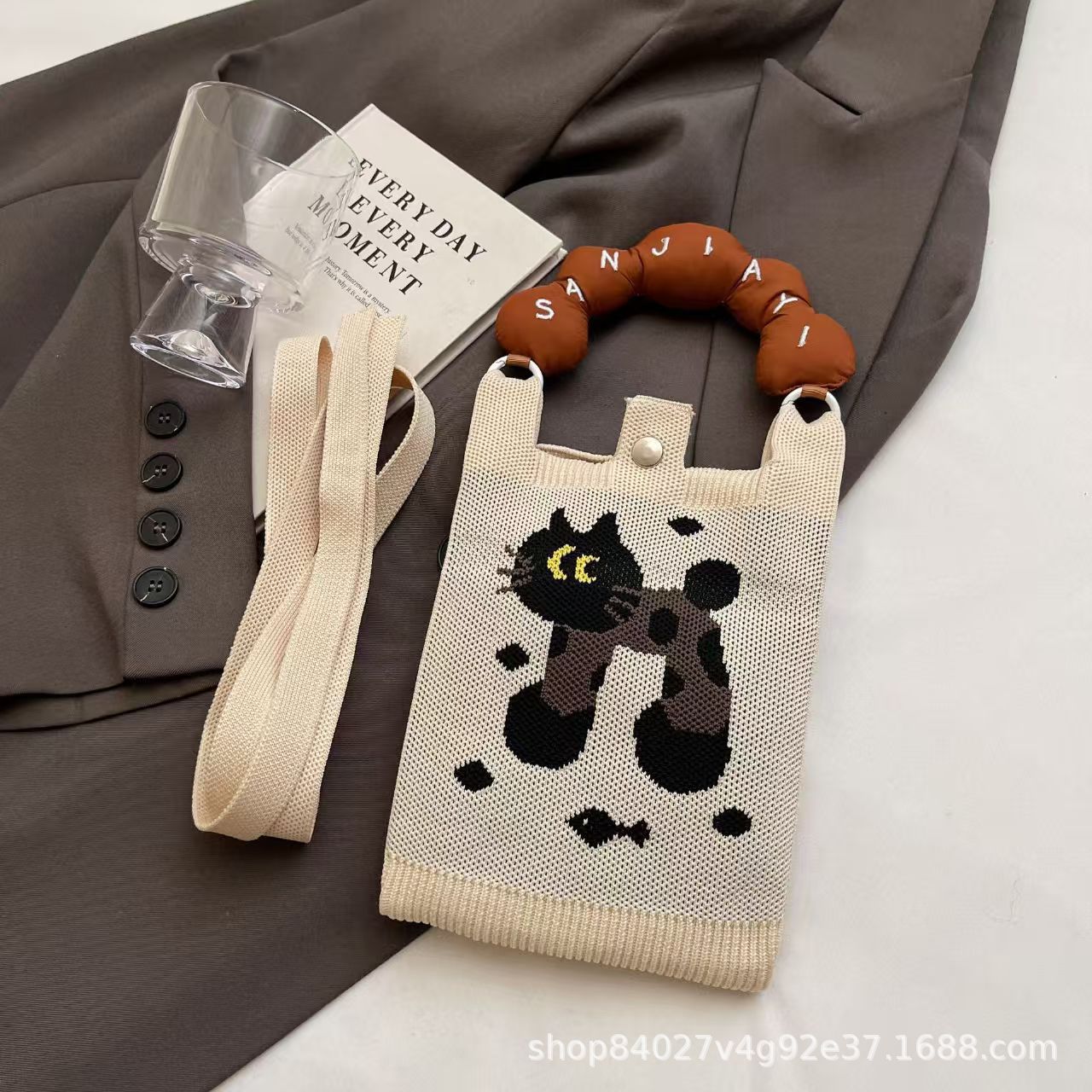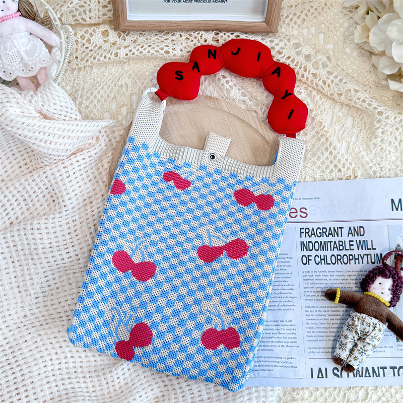 여름 올 매치 패션 휴대 전화 가방 여성의 귀여운 미니 가방 만화 니트 핸드백 어깨 가방 크로스 바디 가방스토어 가기