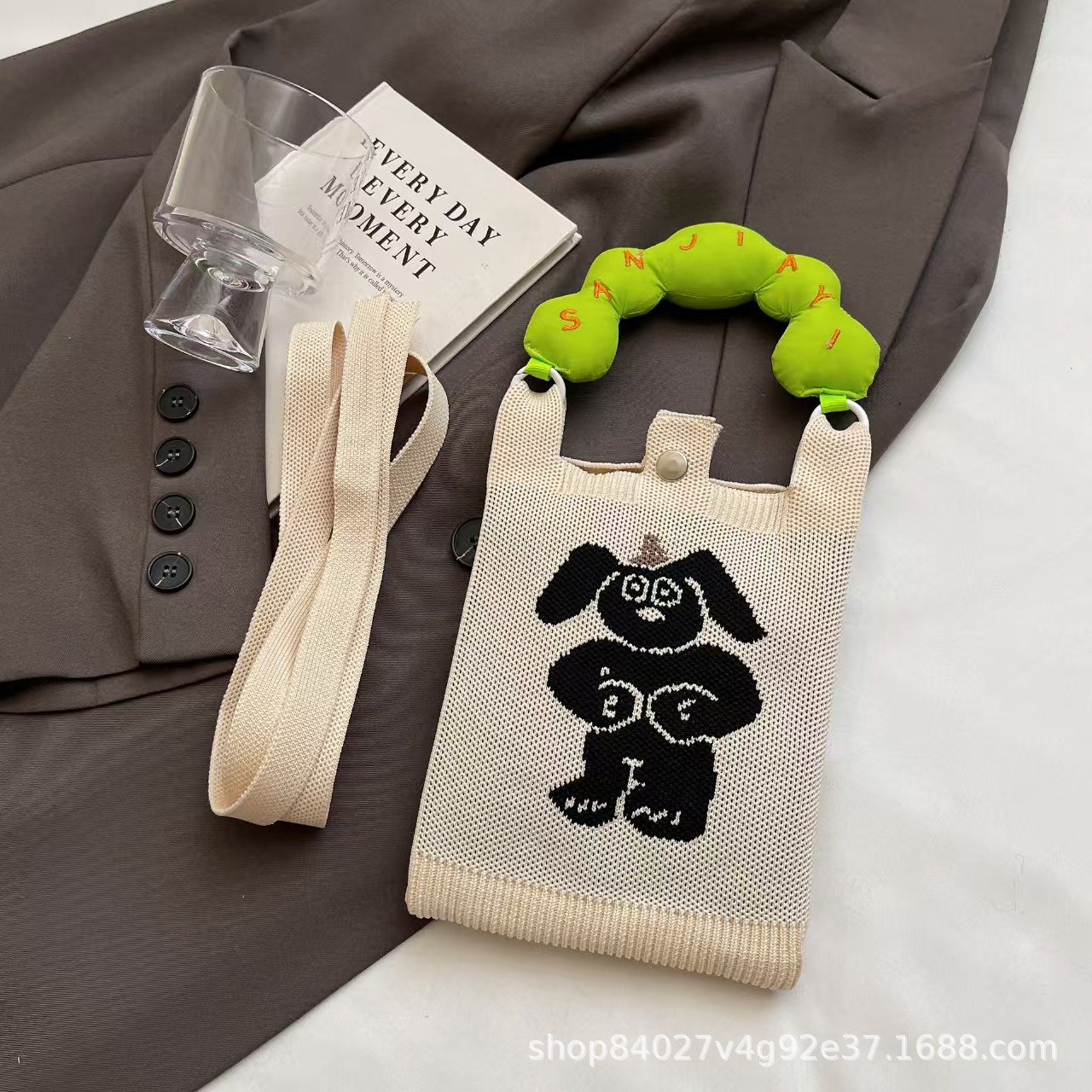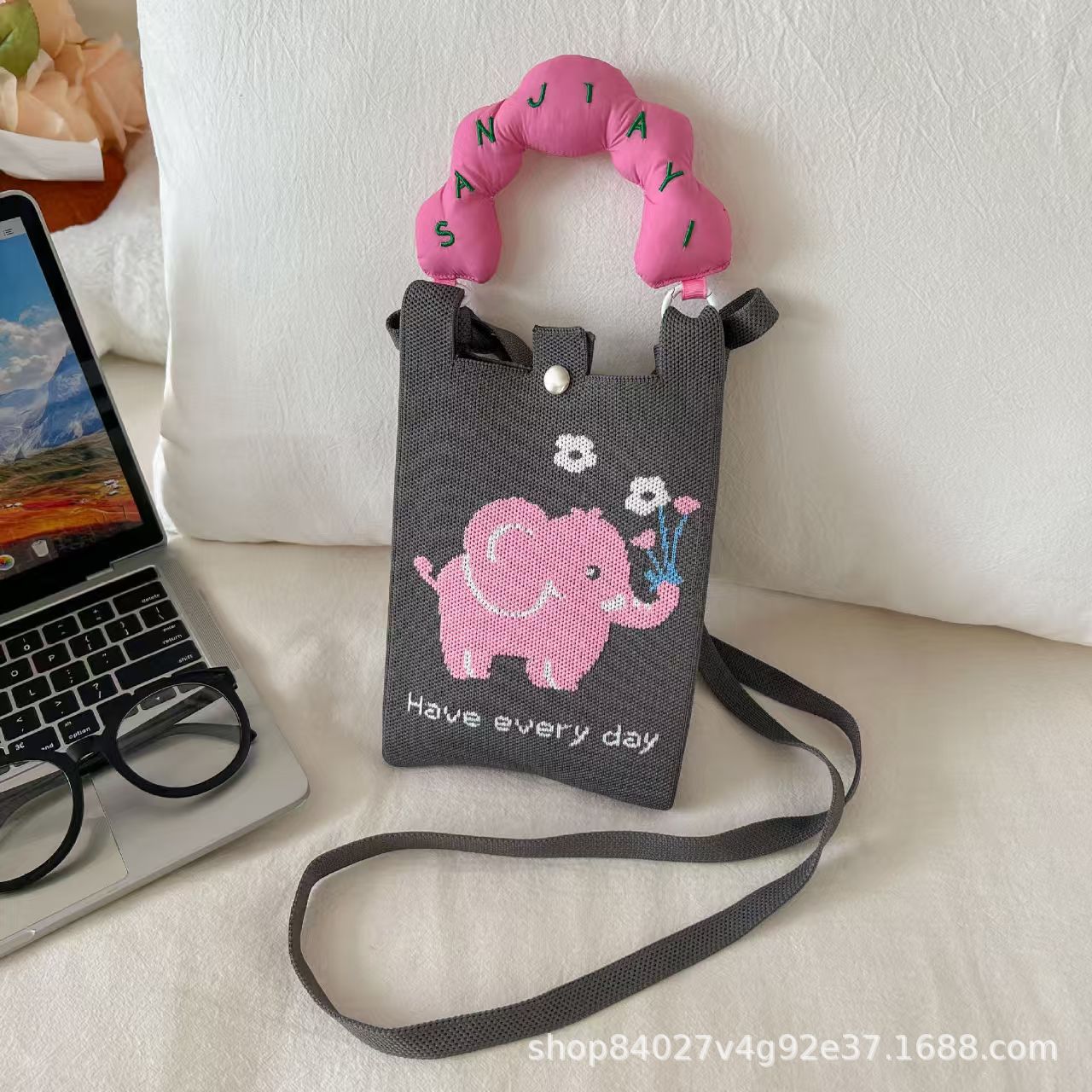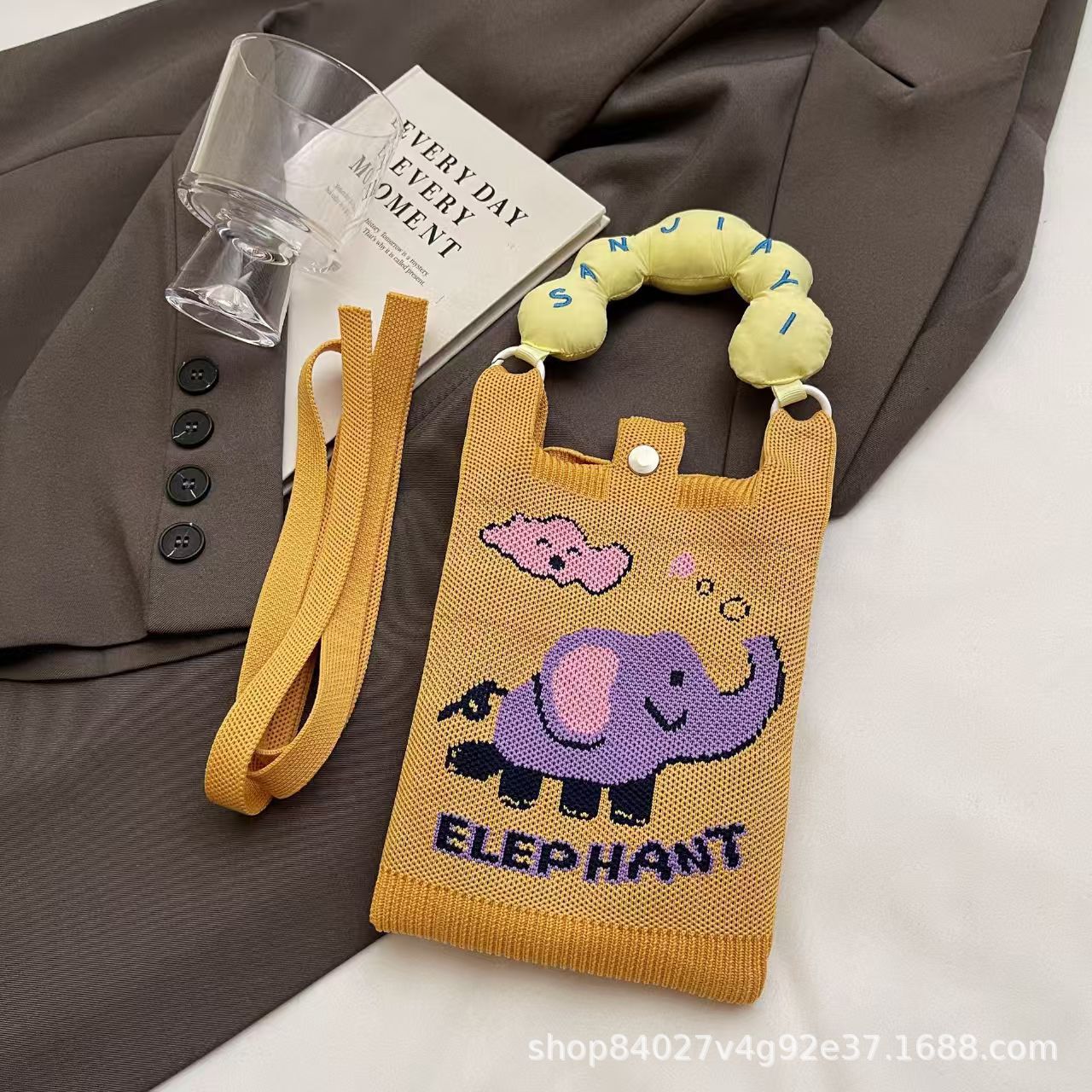 여름 올 매치 패션 휴대 전화 가방 여성의 귀여운 미니 가방 만화 니트 핸드백 어깨 가방 크로스 바디 가방스토어 가기