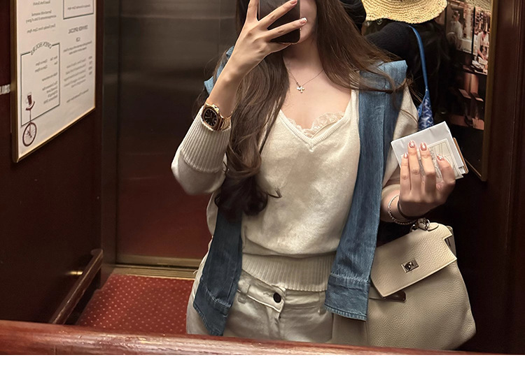 재고 있음【미학적 선호】4가지 색상 실용적이고 가볍고 통기성 좋은 모직 블라우스+2가지 색상의 가슴 패드 슬립