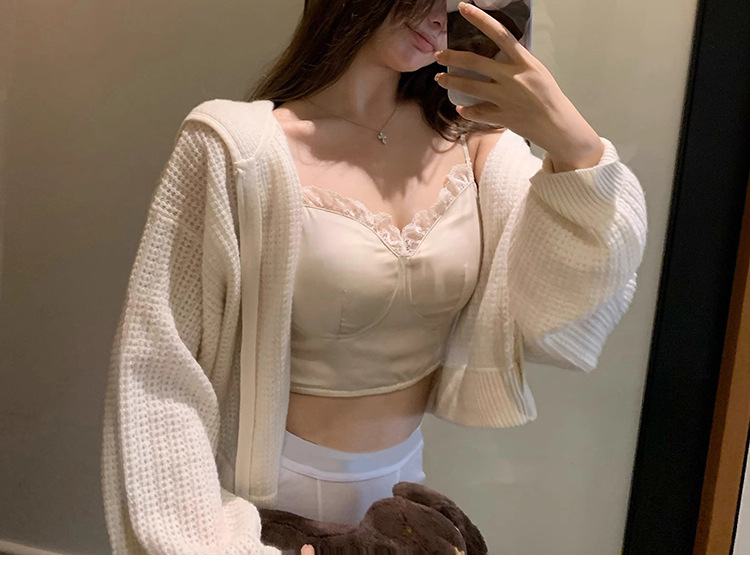 재고 있음【미학적 선호】4가지 색상 실용적이고 가볍고 통기성 좋은 모직 블라우스+2가지 색상의 가슴 패드 슬립스토어 가기