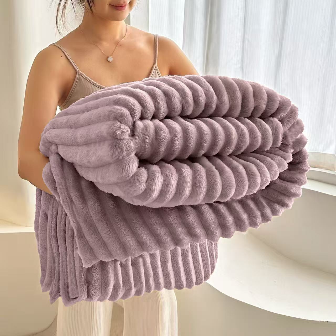 새로운 해외 무역 상품, 크로스보더 상품, 3.3cm 줄무늬 담요, 두꺼운 기숙사 소파 담요, 롤엣지 낮잠 담요, 보온 담요4