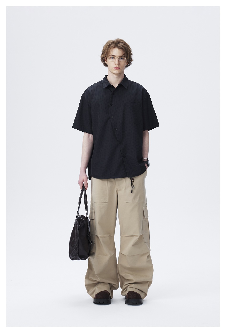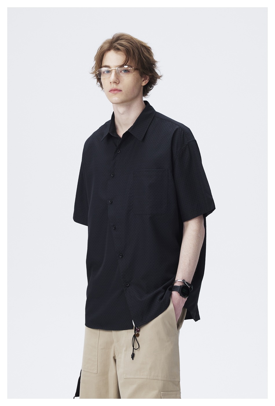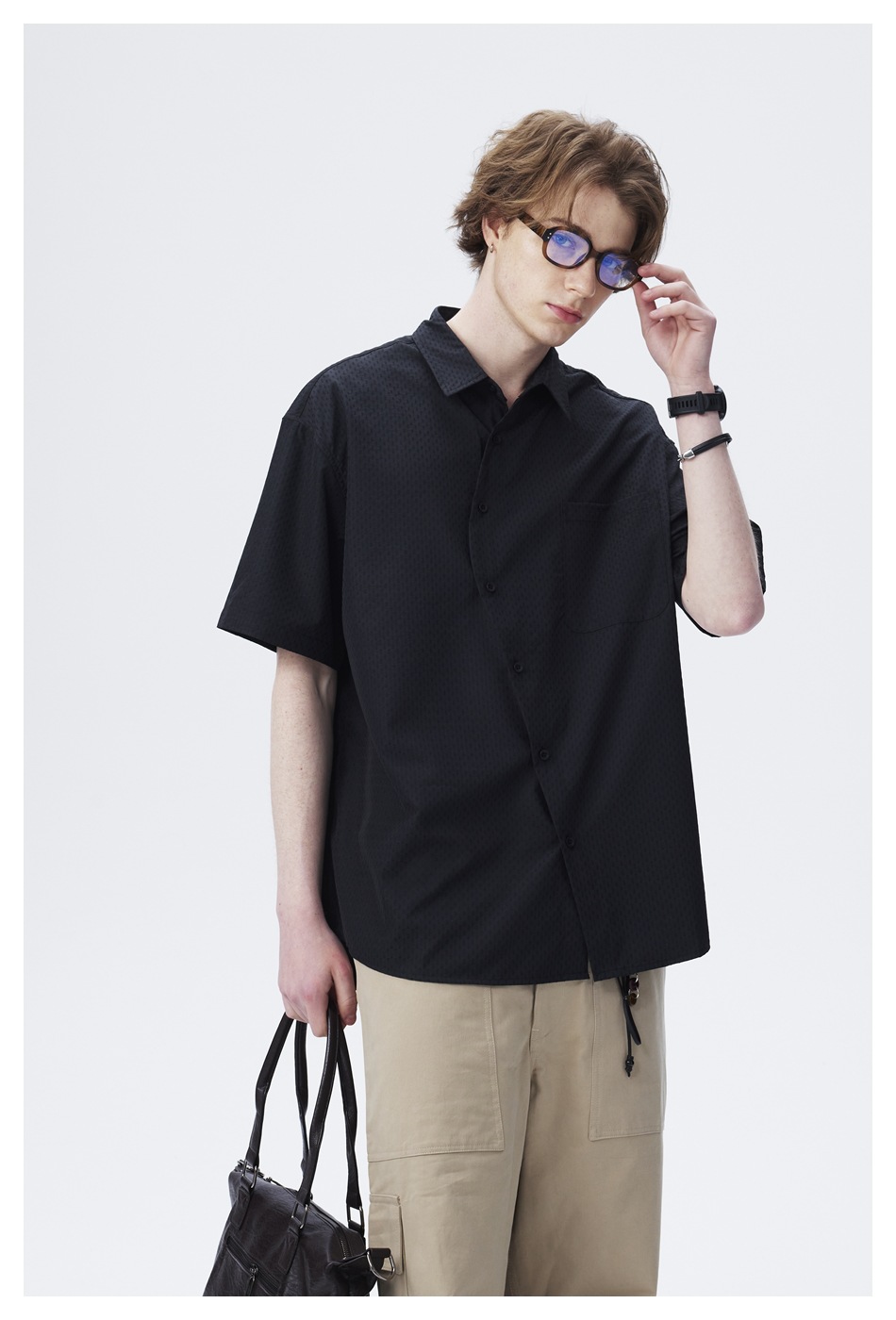 ANSWER ME 틈새 디자이너 트렌디 한 브랜드 비스듬한 플라스크 느슨한 반팔 셔츠 남성용 단색 셔츠 재킷 CS128스토어 가기