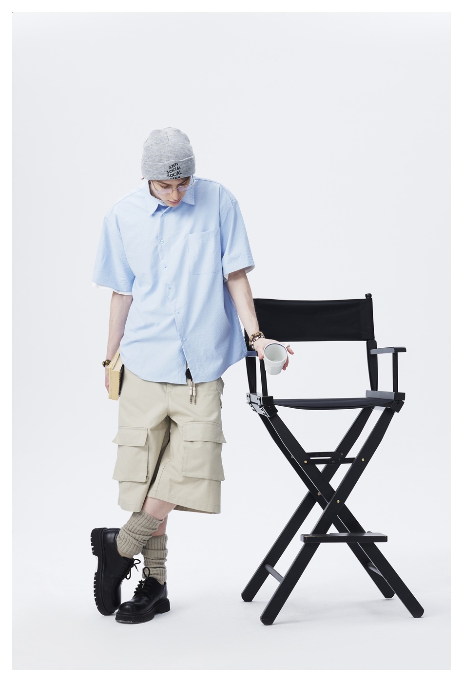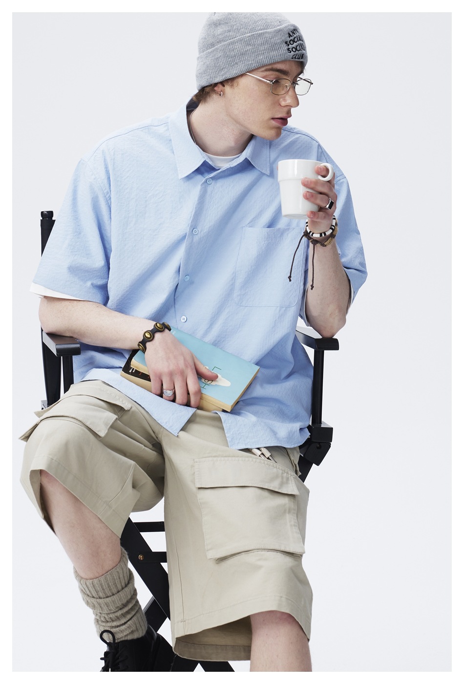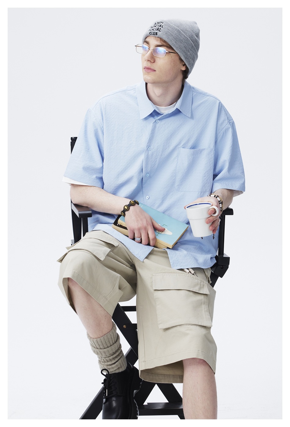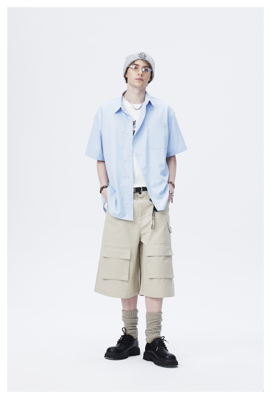 ANSWER ME 틈새 디자이너 트렌디 한 브랜드 비스듬한 플라스크 느슨한 반팔 셔츠 남성용 단색 셔츠 재킷 CS128스토어 가기