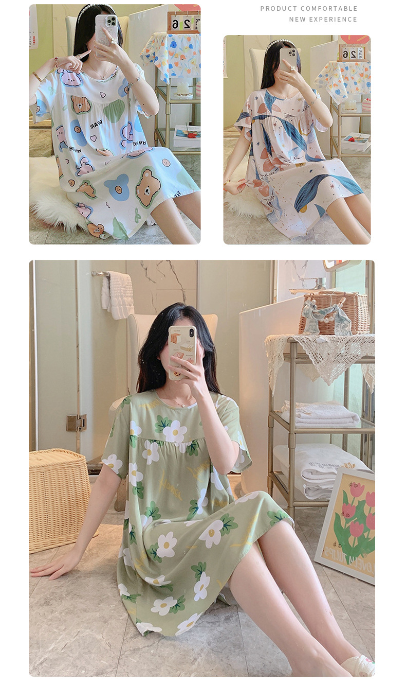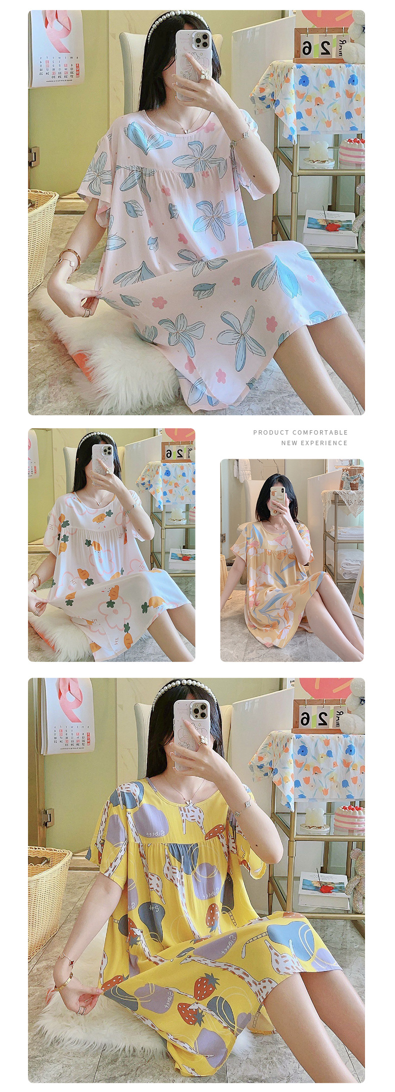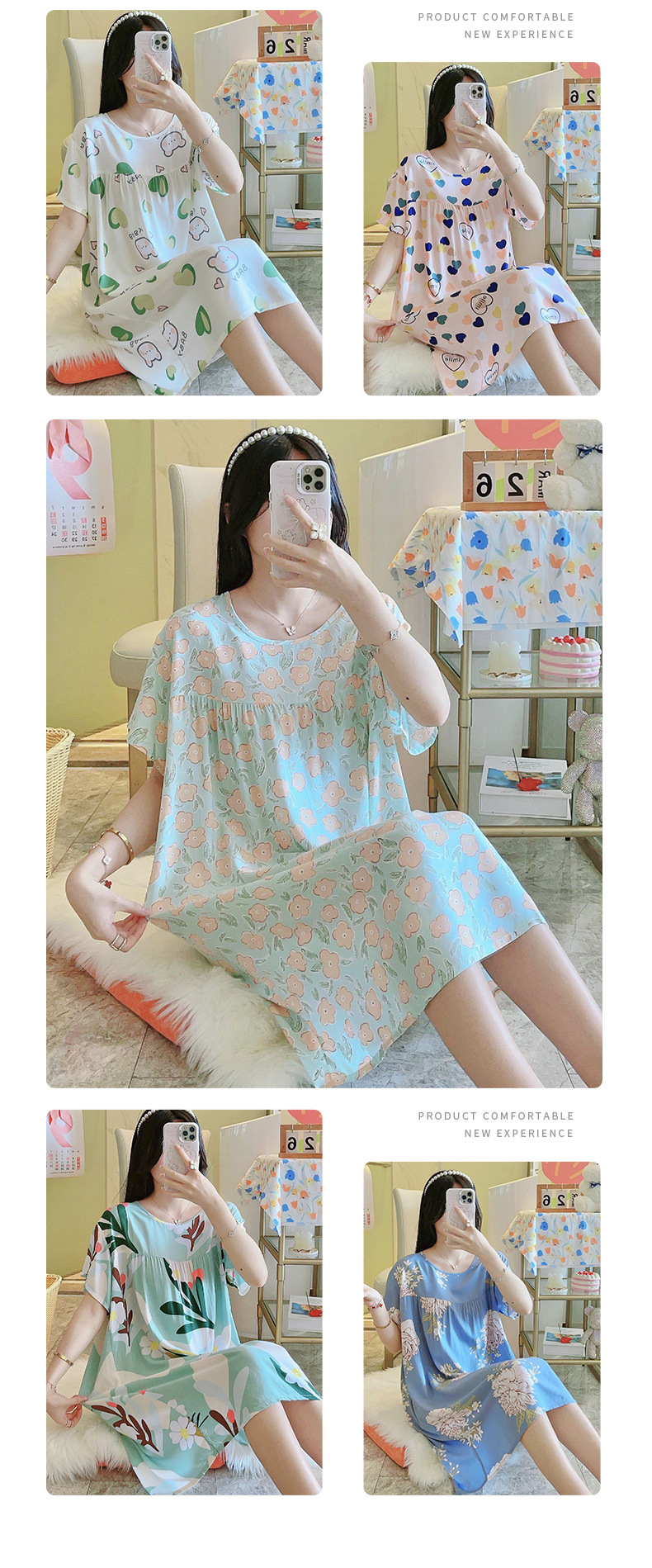 여성용 면 실크 반팔 잠옷, 여름용 큰 사이즈 잠옷, 루즈핏 한국 스타일 홈 드레스, 레이온 인기 홈웨어스토어 가기