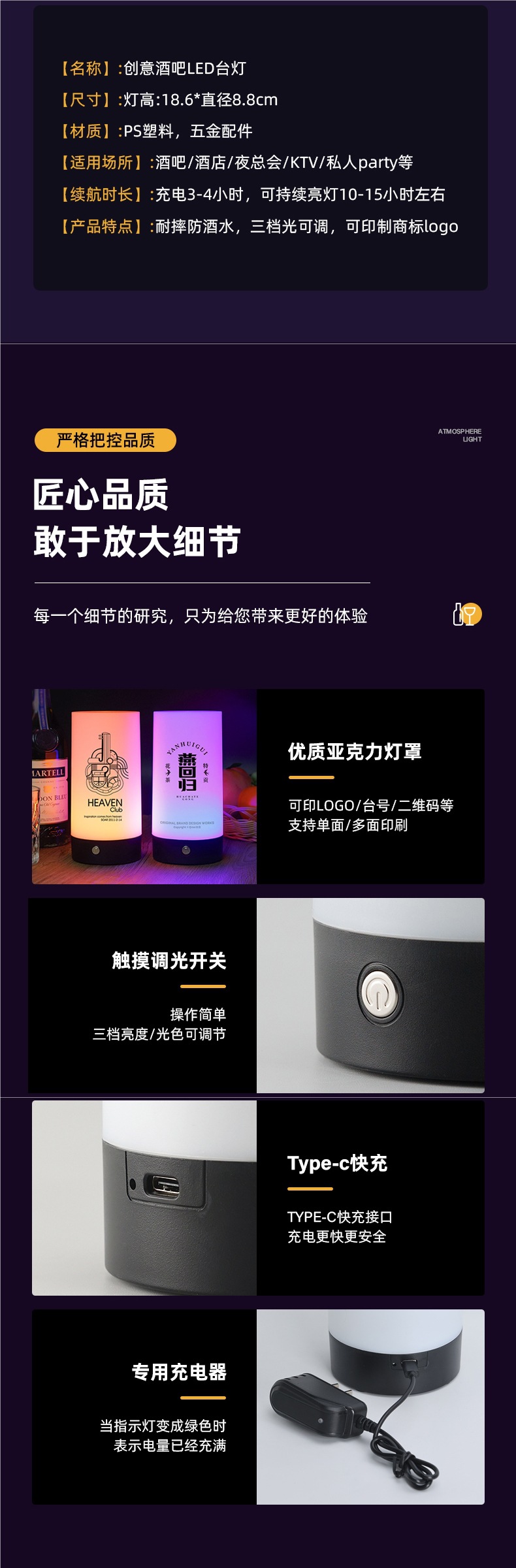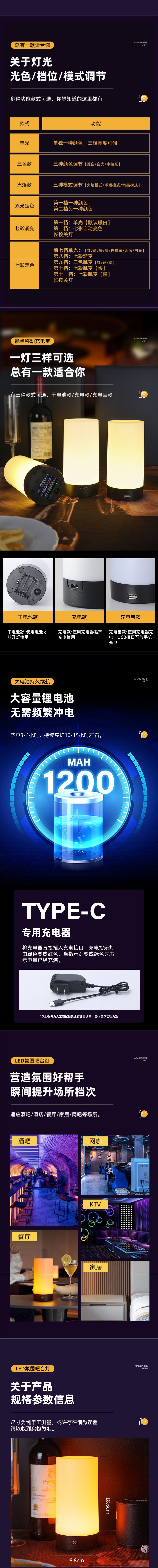 충전식 바 테이블 램프 야외 캠핑 창조적 인 야시장 분위기 램프 나이트 라이트 클리어 바 스톨 테이블 램프 분위기 램프스토어 가기