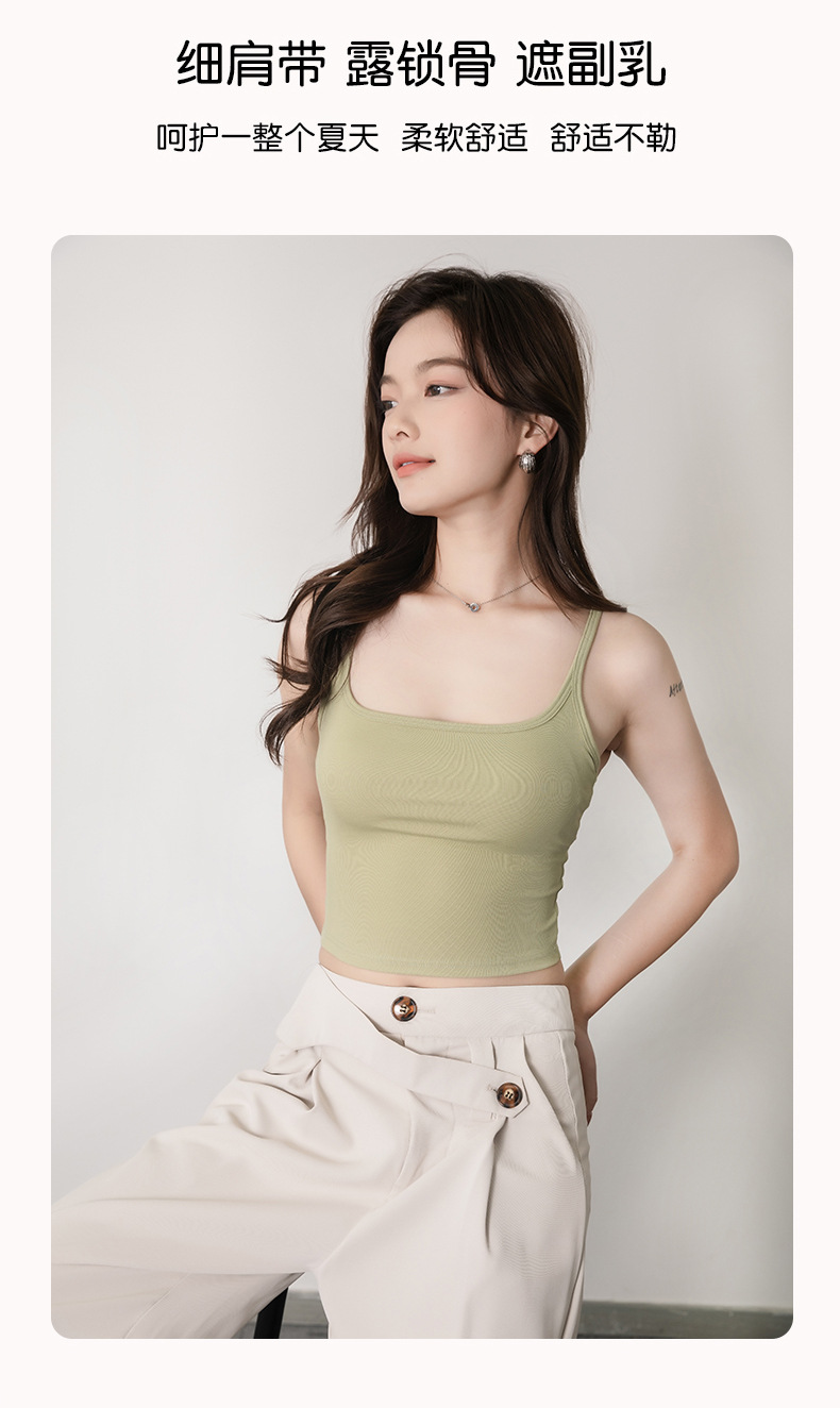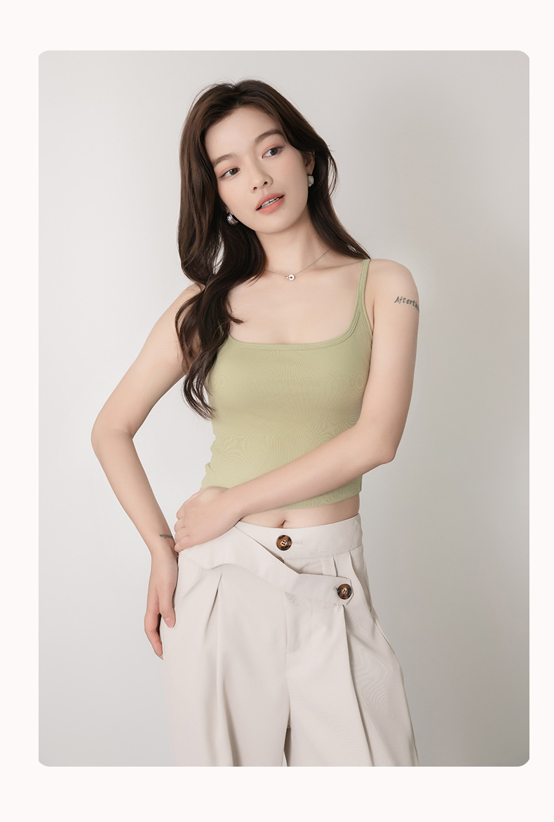 가슴 패드 원피스 스퀘어 넥 아름다운 등 슬링 아우터베이스 니트 립 조끼 와 여자 뉴 브라 컵스토어 가기