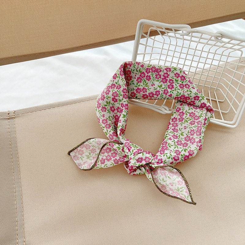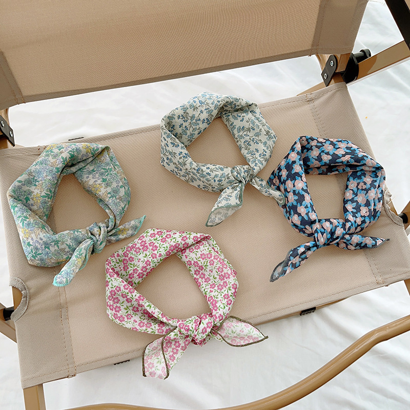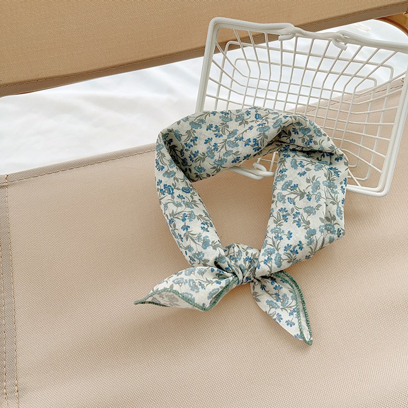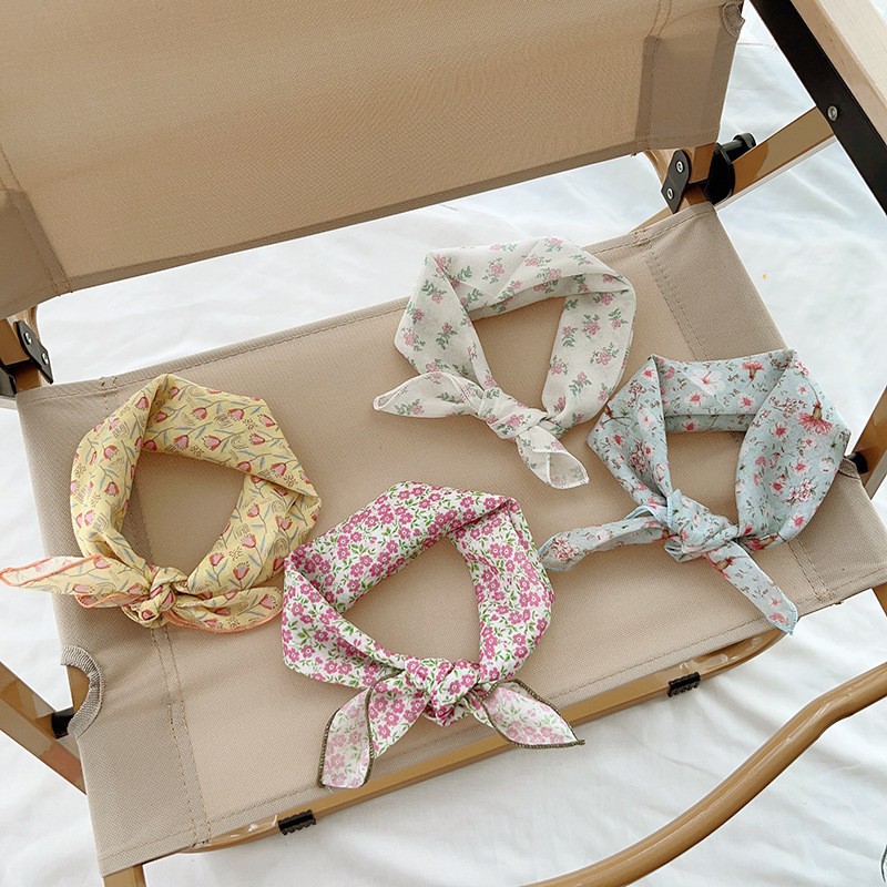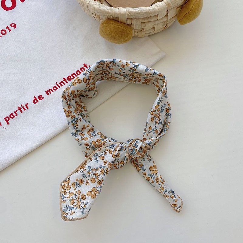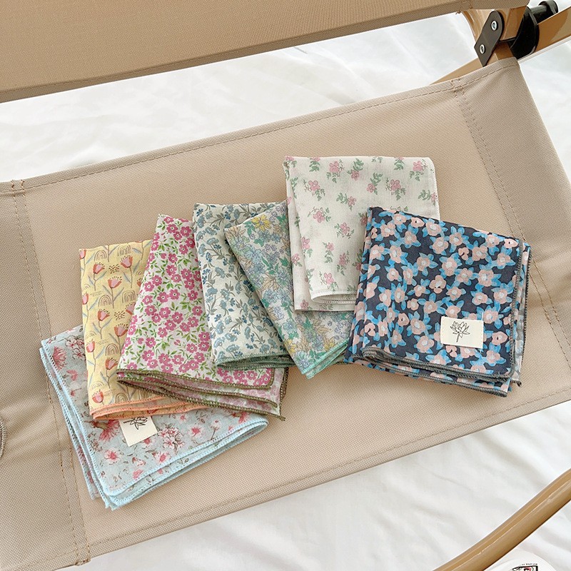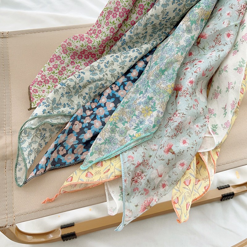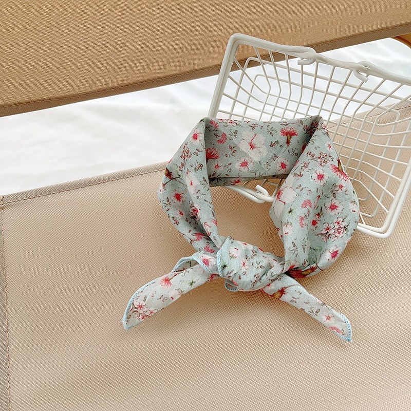 일본식 코튼 앤 리넨 올매치 아티스틱 바오터우 작은 스퀘어 스카프 새로운 스타일 작은 꽃 스카프 어린이 퓨어 코튼 신선한 스타일 세련된 스퀘어 스카프