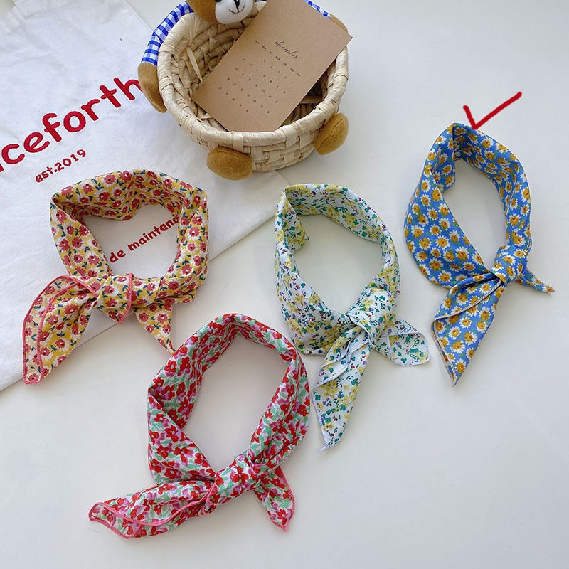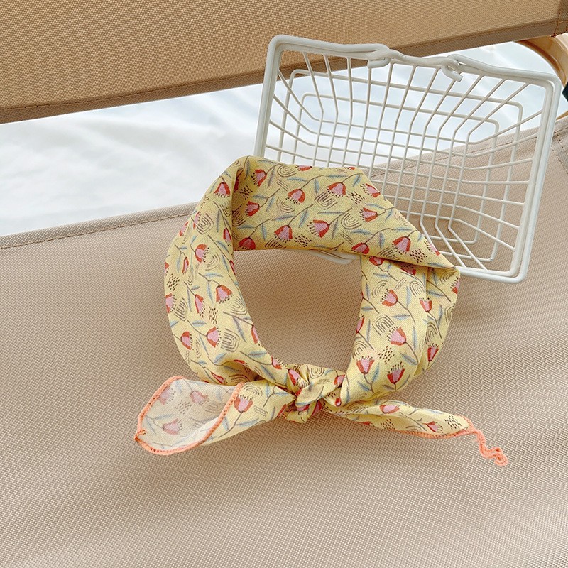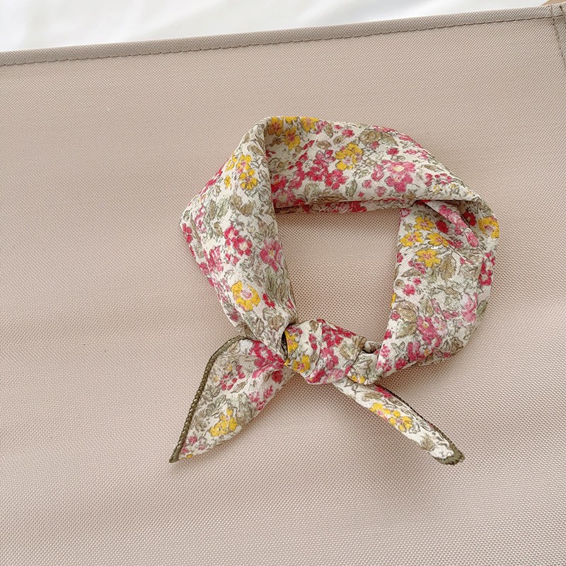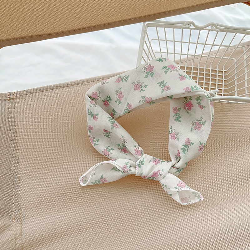 일본식 코튼 앤 리넨 올매치 아티스틱 바오터우 작은 스퀘어 스카프 새로운 스타일 작은 꽃 스카프 어린이 퓨어 코튼 신선한 스타일 세련된 스퀘어 스카프스토어 가기