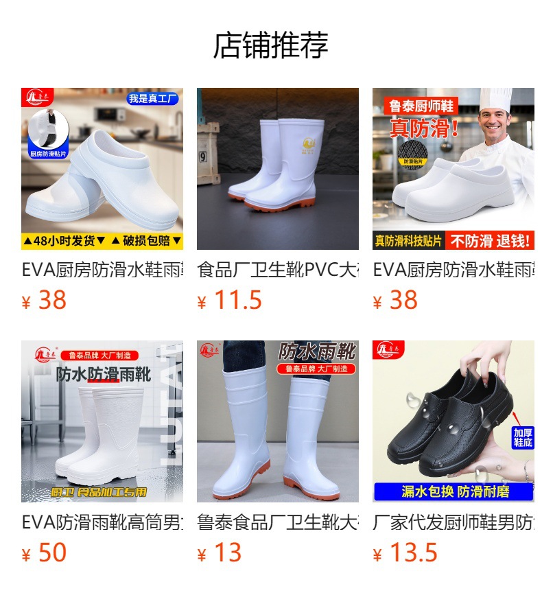 EVA 레인부츠, 식품 등급 방수, 두껍고 내마모성이 뛰어난 하이탑 주방용 신발, 미끄럼 방지 부츠, 루타이 하이탑 미끄럼 방지 레인부츠스토어 가기