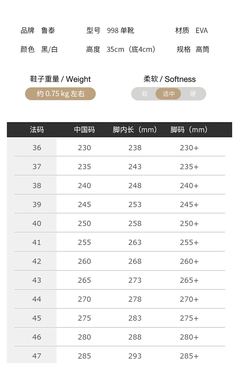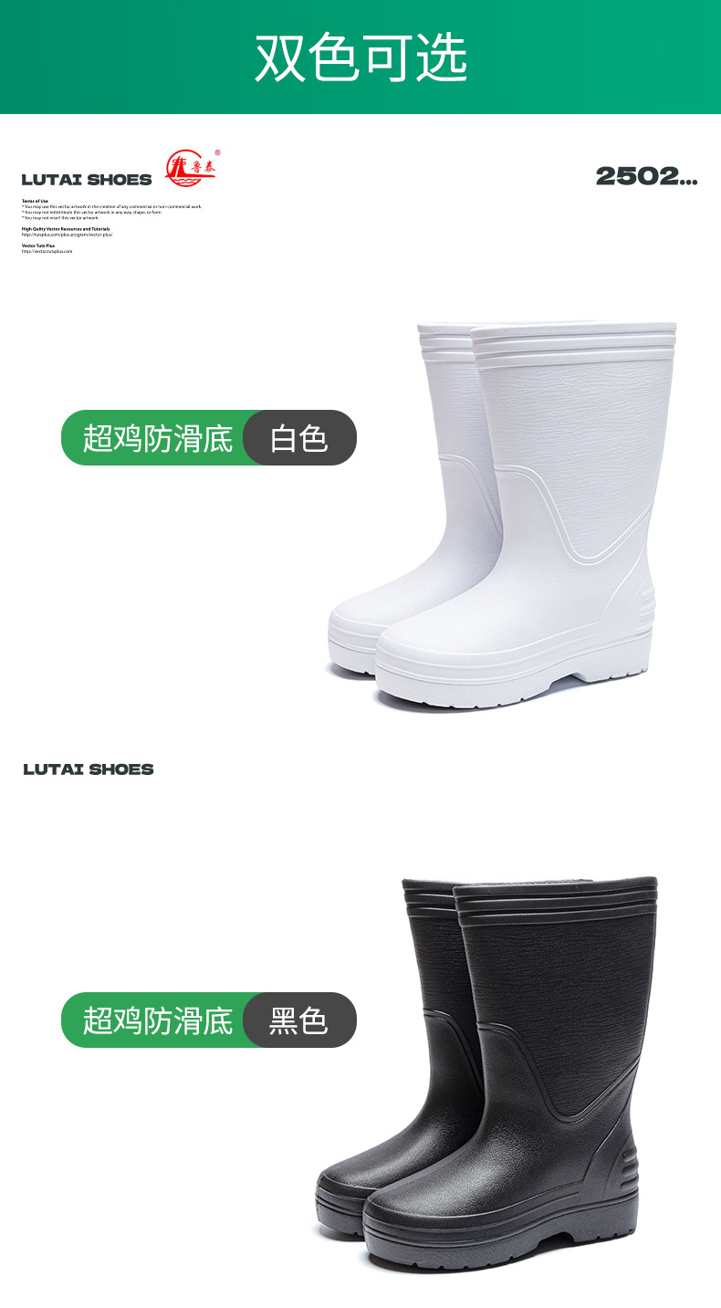 EVA 레인부츠, 식품 등급 방수, 두껍고 내마모성이 뛰어난 하이탑 주방용 신발, 미끄럼 방지 부츠, 루타이 하이탑 미끄럼 방지 레인부츠