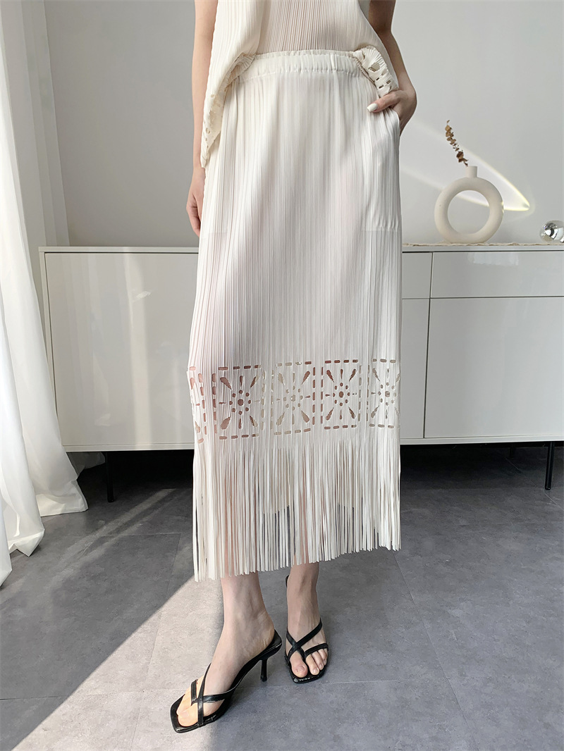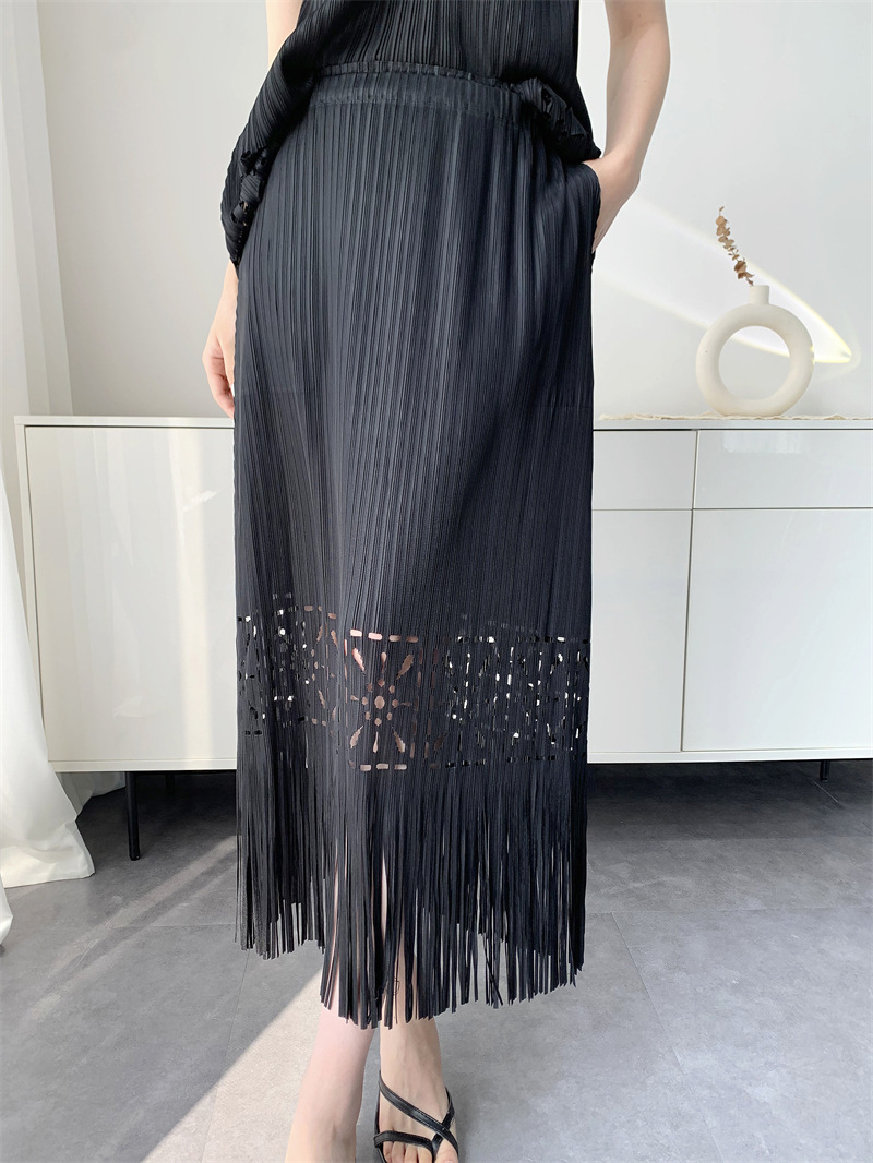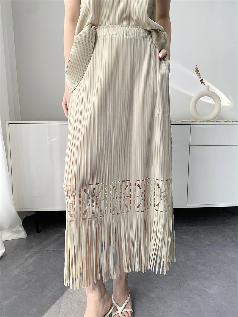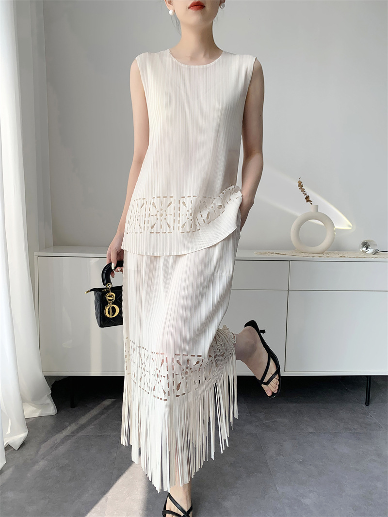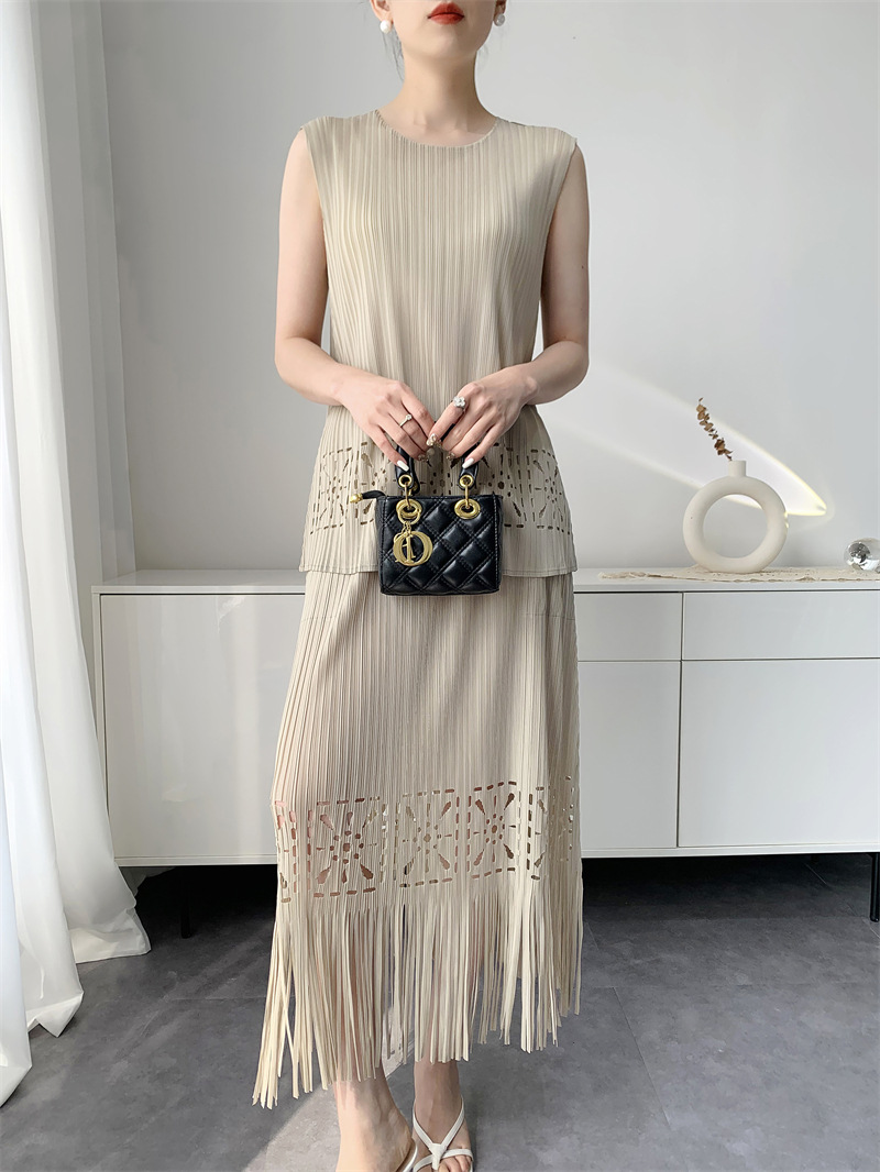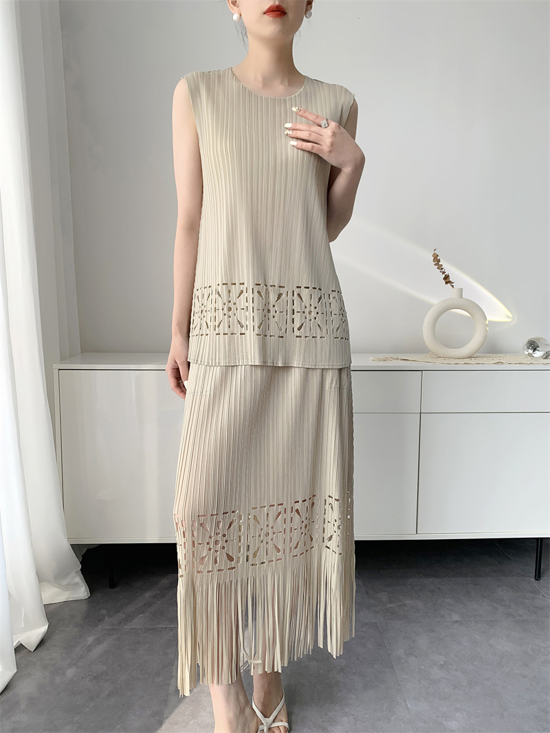 미야케 스타일의 고급 주름 술은 여성의 2025 년 여름 정상 오버 스커트 기질 연령을 세트 편안한 여가를 줄입니다.