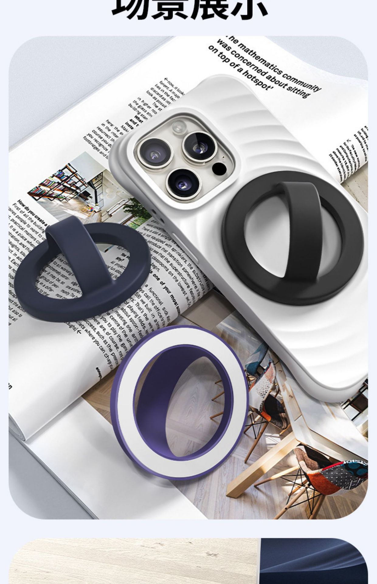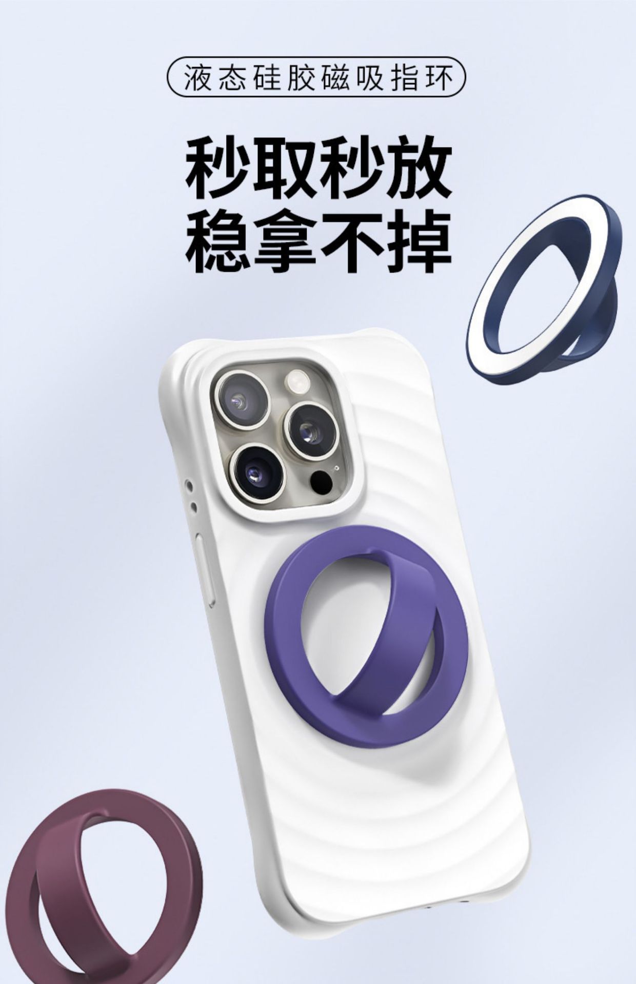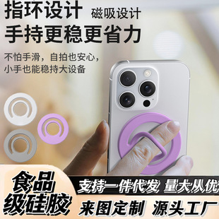 新款创意硅胶磁吸支架适用iphone手机背贴支架磁吸指环扣防摔防滑