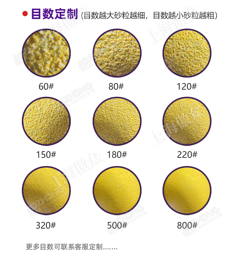 • 粒度:可选多种目数(60目、80目、100目、120目、150目、180目、220目、240目、320目、400目、600目、800目等)