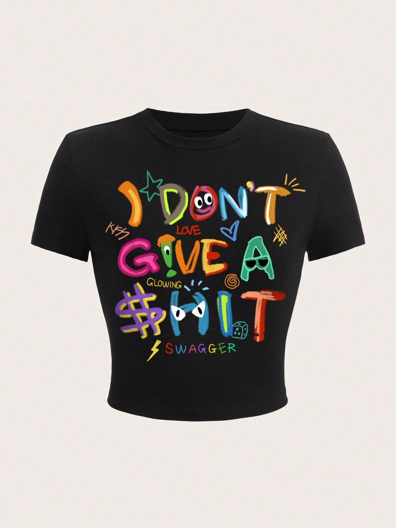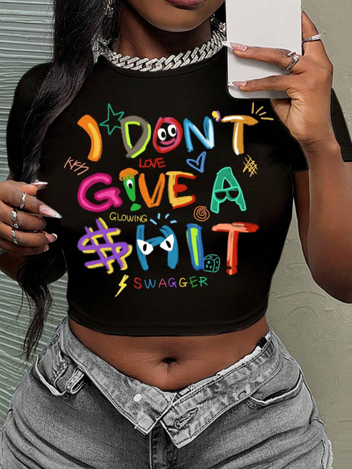 2025 년 여름 아마존 유럽과 미국의 거리 스타일 여성 편지 인쇄 짧은 슬림 티셔츠 탑