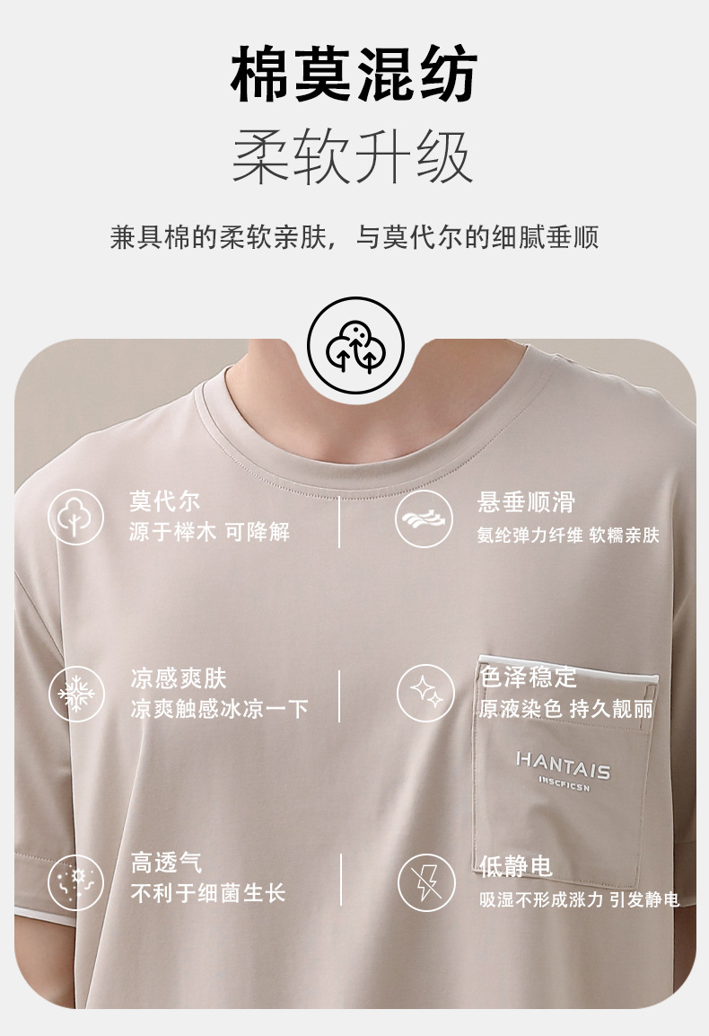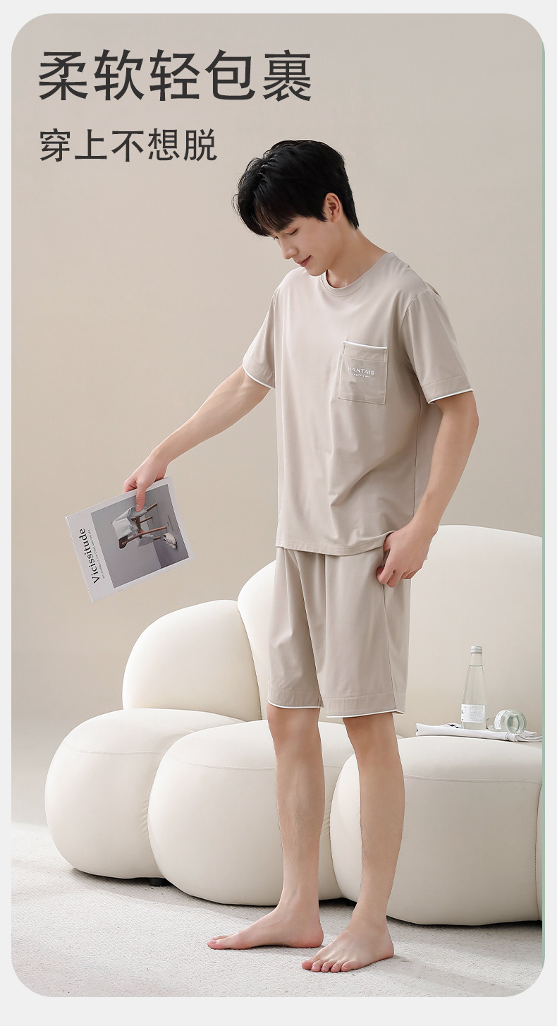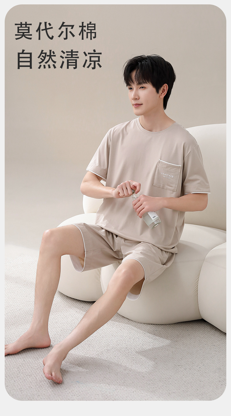 2025 년 여름 새 남자 잠옷 모달 반팔 반바지 캐주얼 하이 엔드 착용 의상 남성 홈웨어스토어 가기
