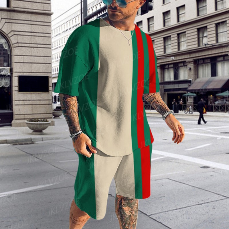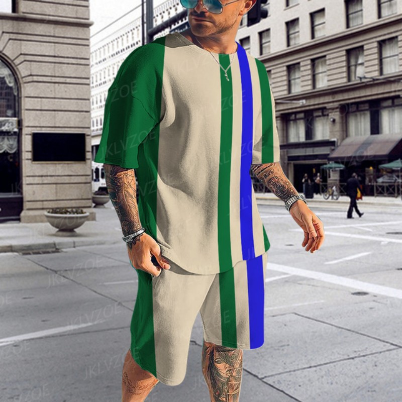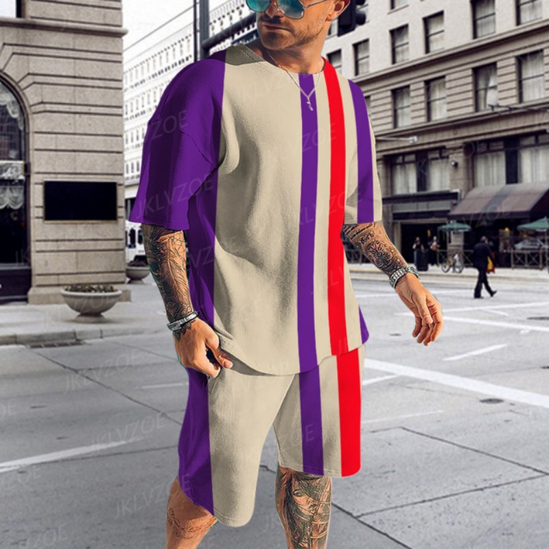 여름 새로운 남성 반팔 반바지 투피스 세트 3D 인쇄 스포츠 캐주얼 빠른 건조 의류 스포츠 세트