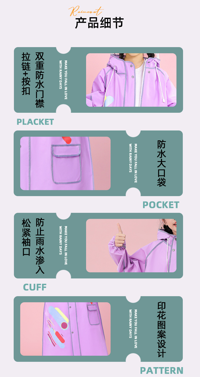 학생 소년 소녀를위한 어린이 비옷 방수 전신 2023 중학교 및 큰 어린이를위한 학교 가방을 가진 새로운 스타일 소년스토어 가기