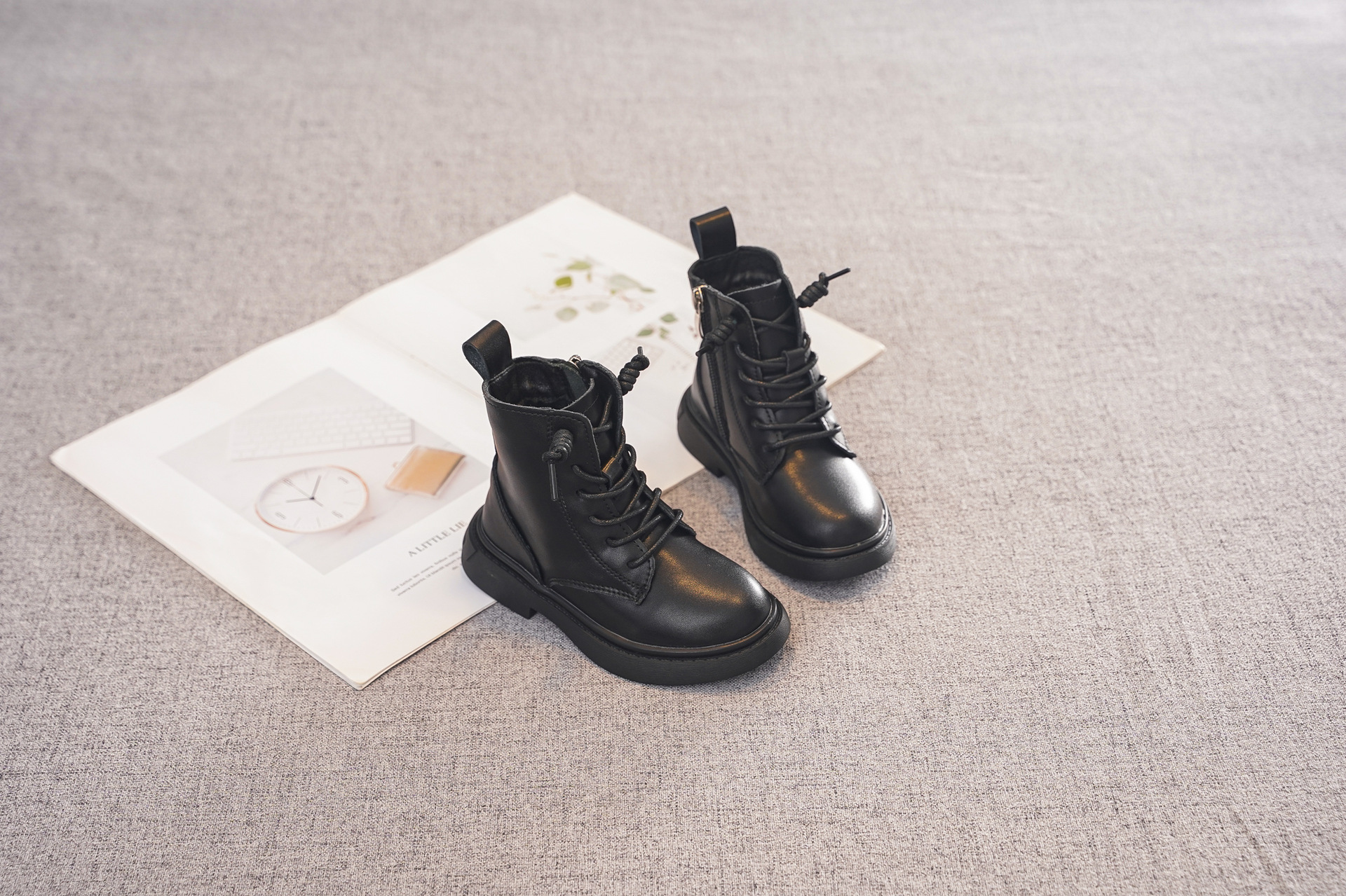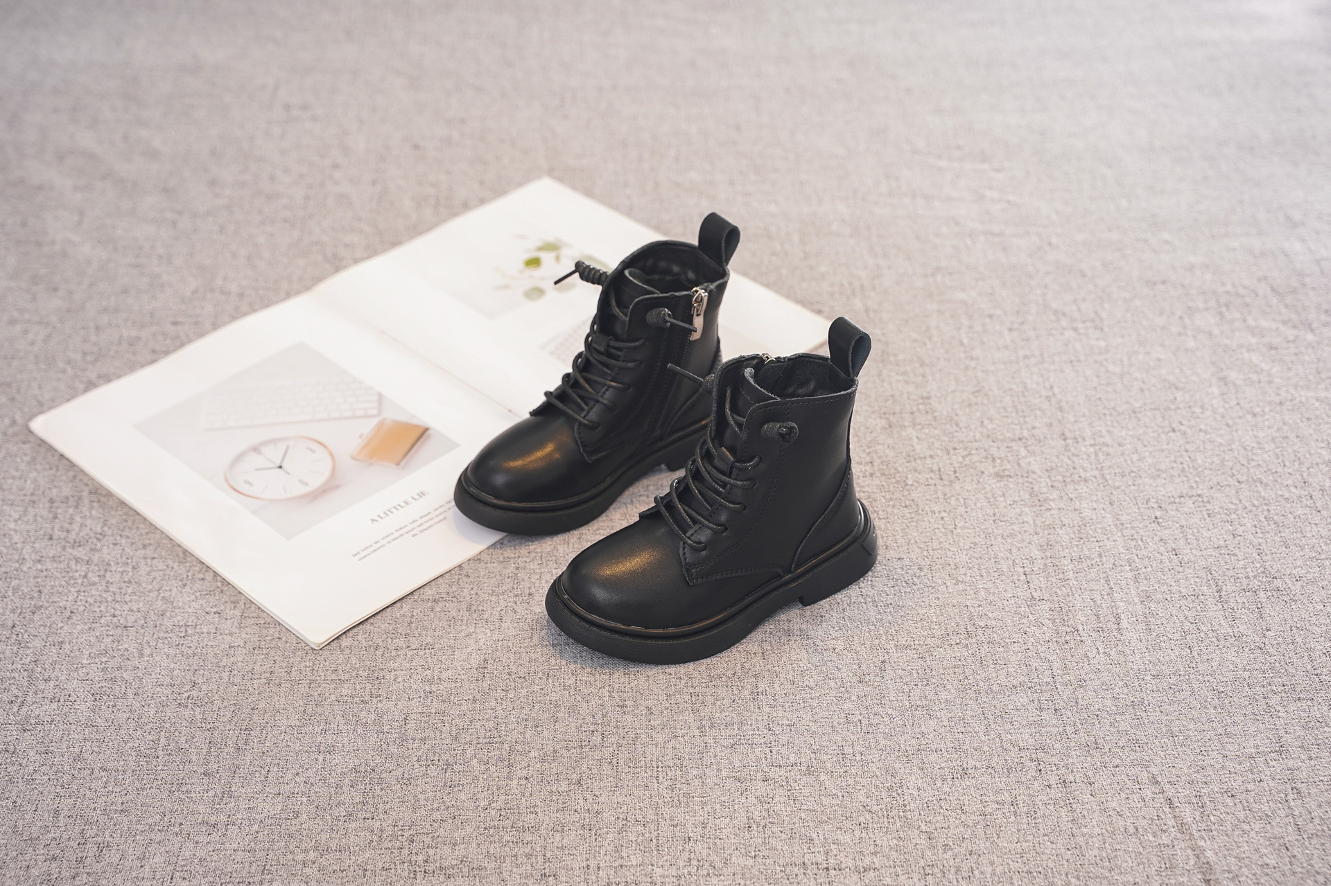여자 마틴 부츠 정품 가죽 어린이 발목 부츠 가을 겨울 싱글 신발 2025 새로운 영국 스타일 소녀 블랙 코튼 부츠스토어 가기