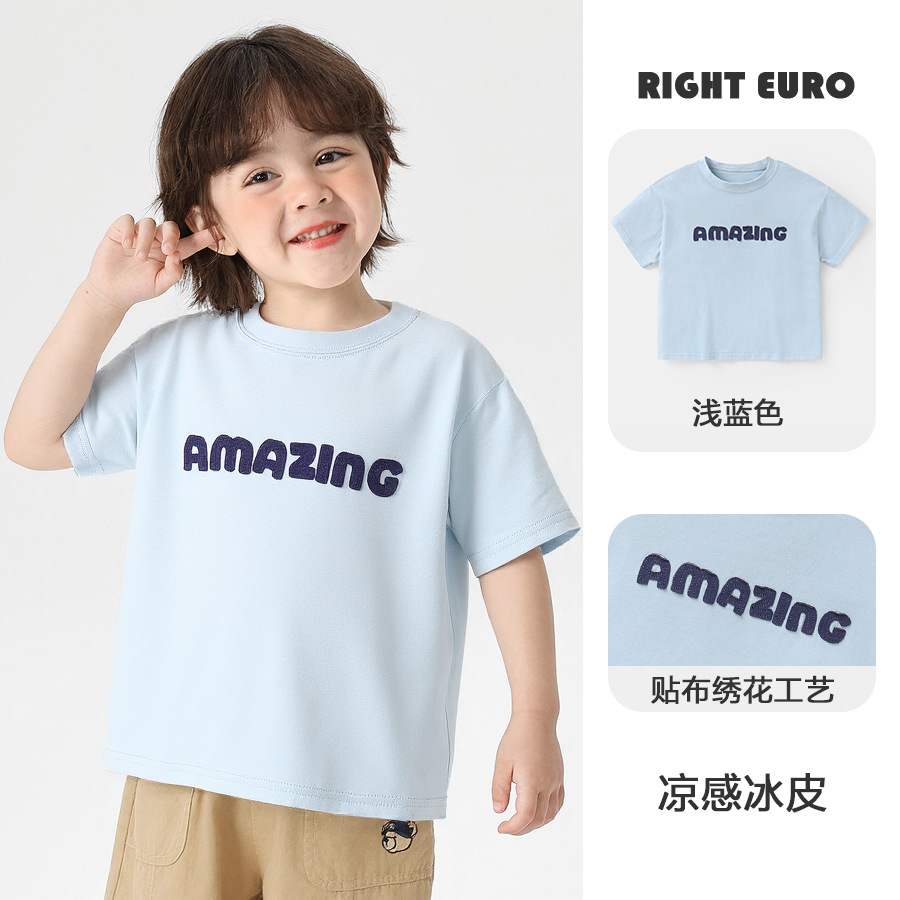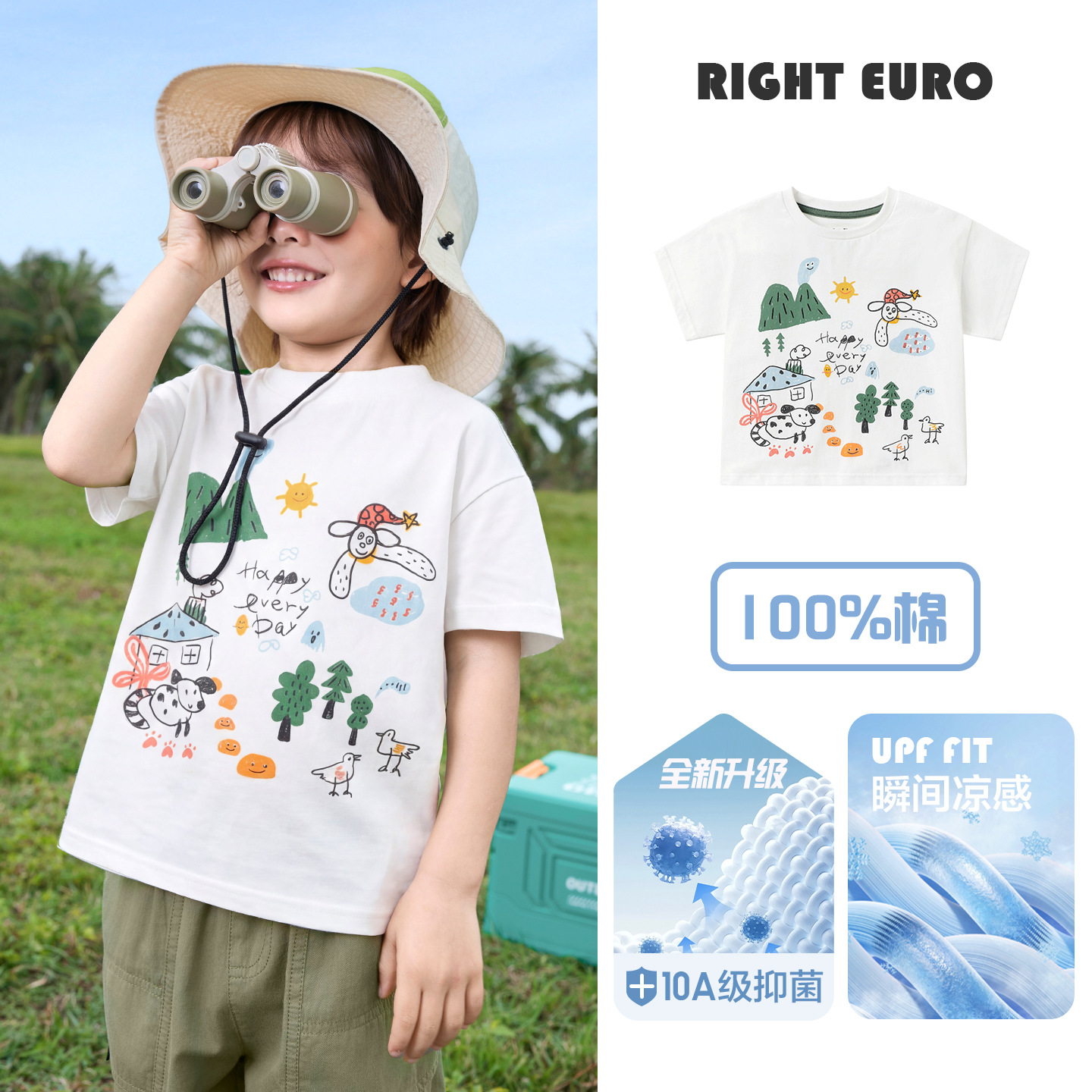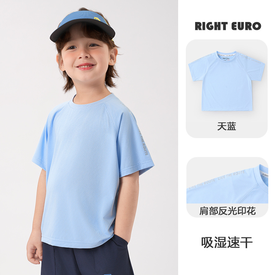 오른쪽 유럽 소년 항균 빠른 건조 반팔 티셔츠 여름 의류 어린이 의류 어린이 아기 재킷 반소매 여름 옷