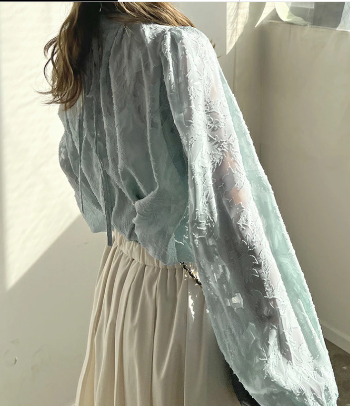 재고 외국 단일 일본 한국 유럽 역 대외 무역 한국 풀오버 시폰 셔츠 레이스 탑 선스크린 셔츠 에어컨 셔츠스토어 가기