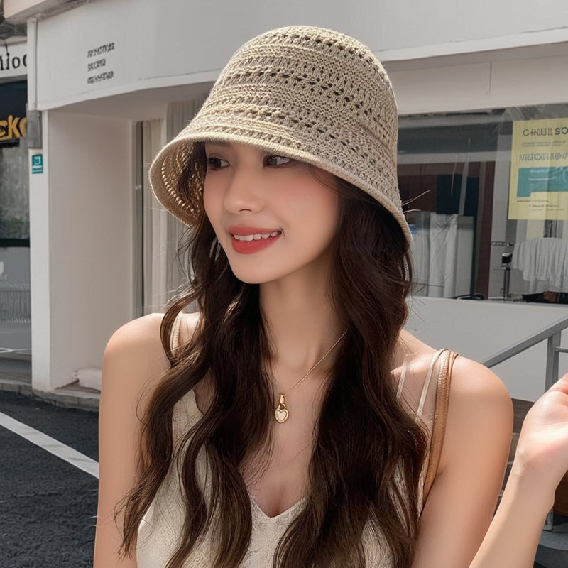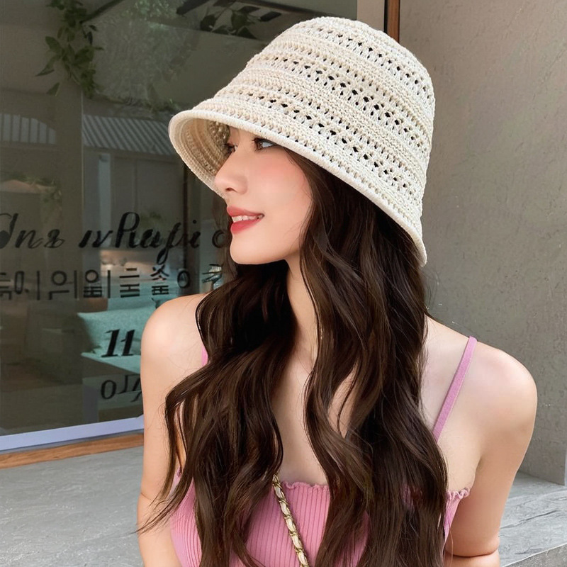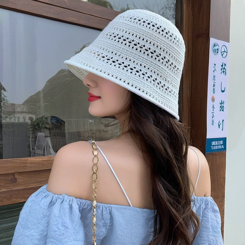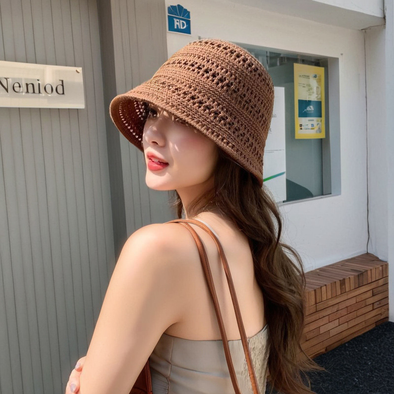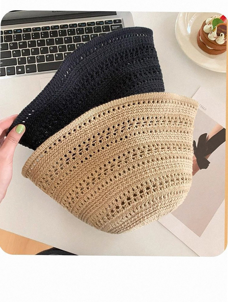 2026년 고품질 일본식 신상품 속이 빈 밀짚모자 통기성 니트 어부 모자 여성 여름 야외 자외선 차단 모자