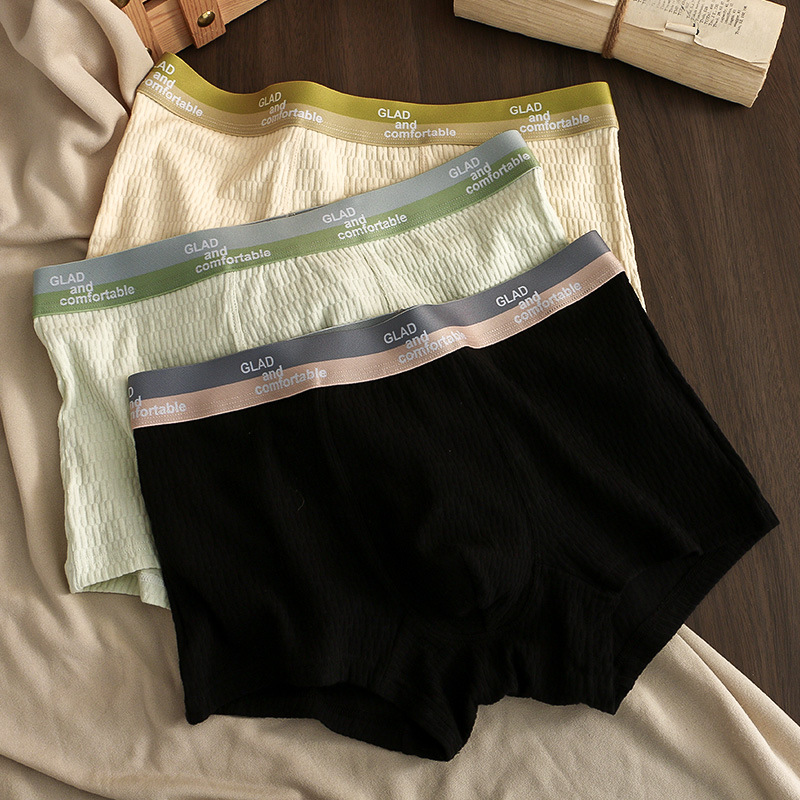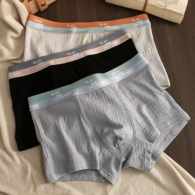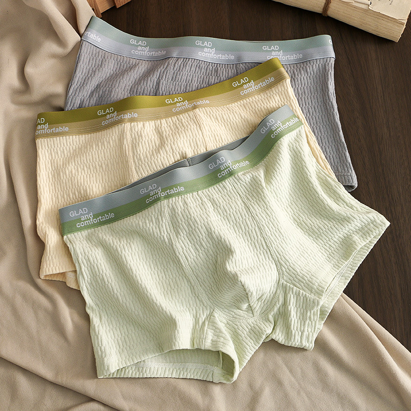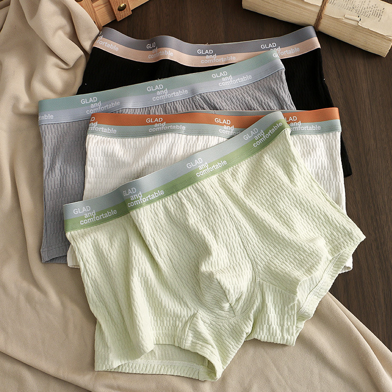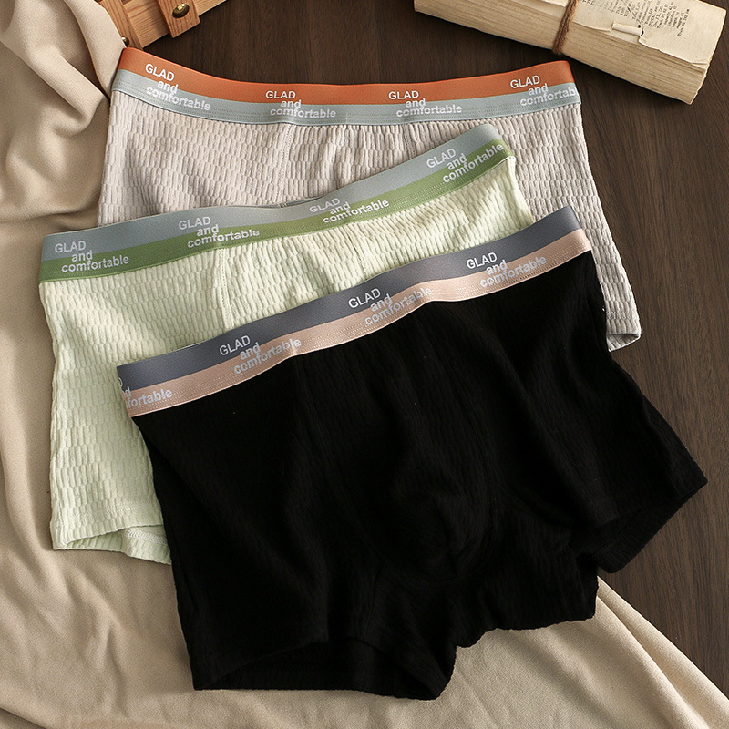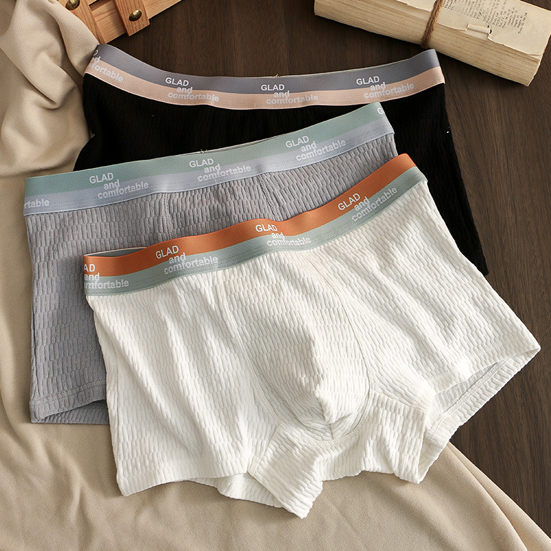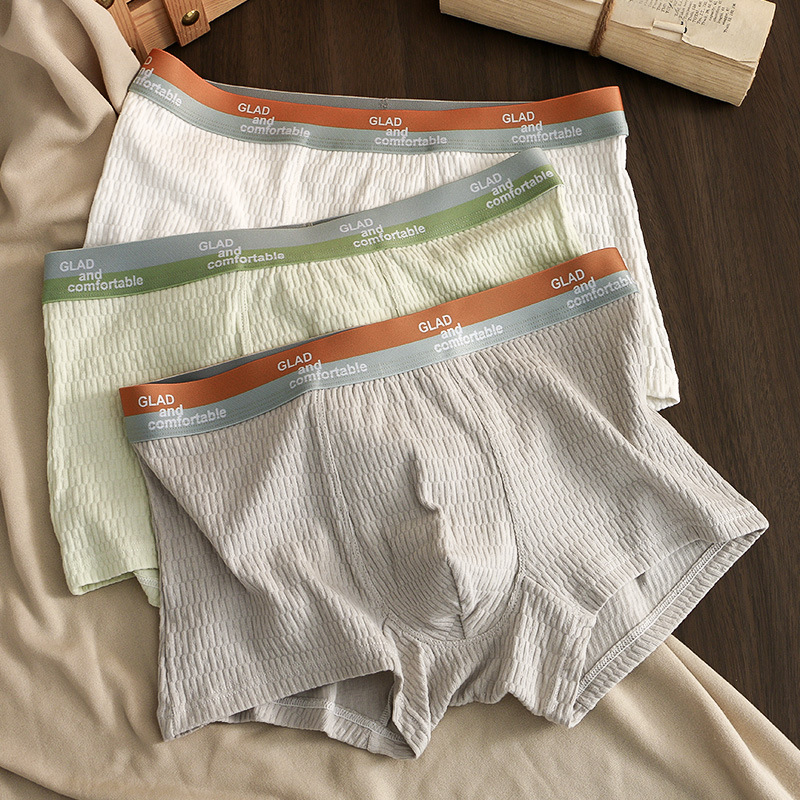 남성용 아이스 실크 복서 터치 부드럽고 섬세한 반바지 중간 허리 디자인 유행 통기성 편안한 속옷스토어 가기