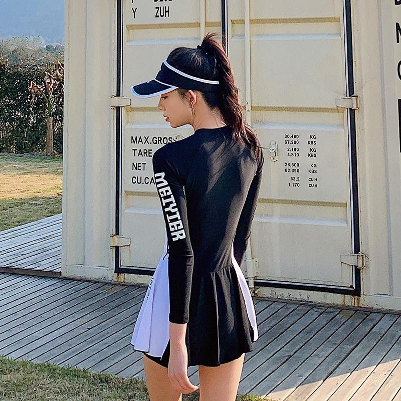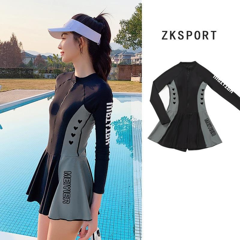 한국 긴팔 수영복 여성 원피스 스커트 스포츠 서핑 플러스 학생들을위한 뚱뚱한 플러스 사이즈 플랫 앵글 슬리밍 온천 수영복스토어 가기