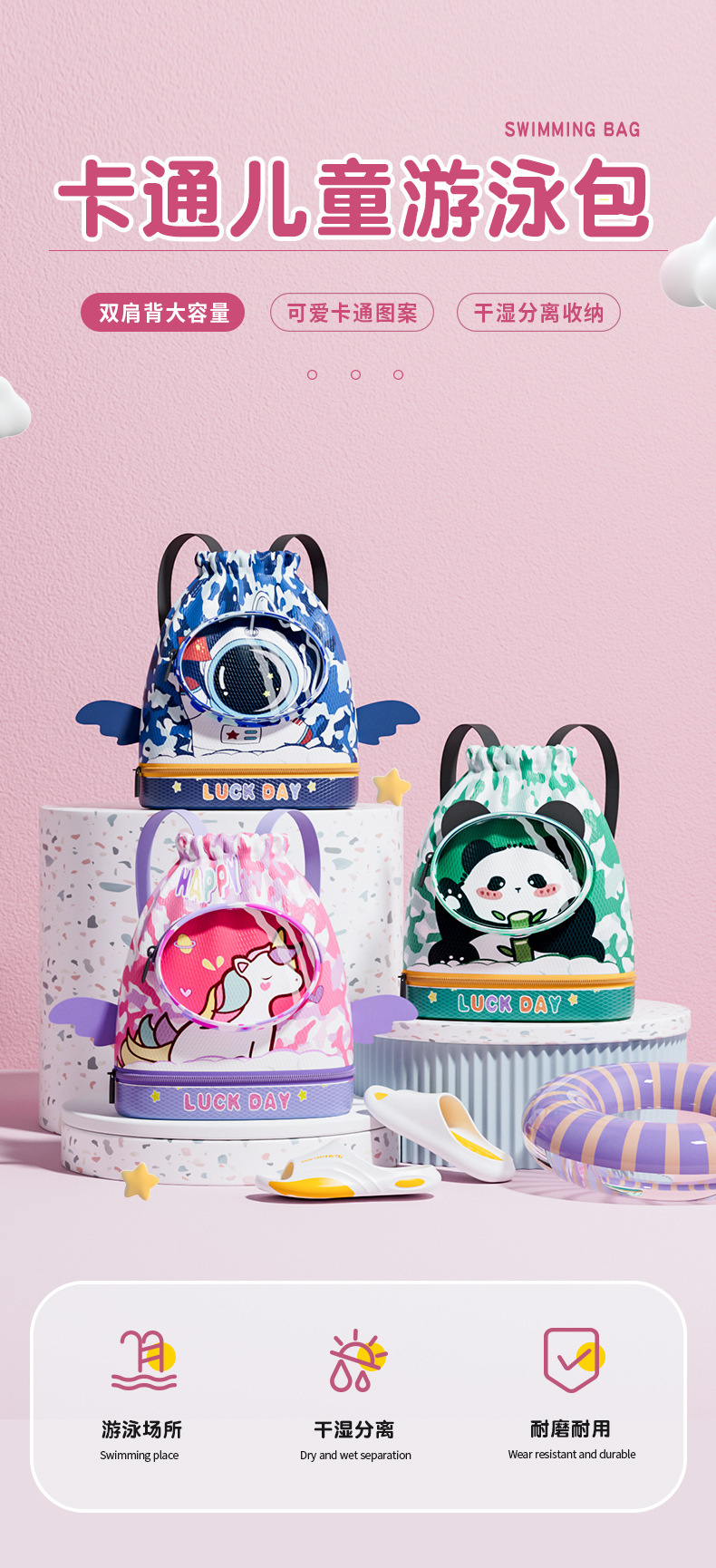 만화 수영 가방 어린이 젖고 건조한 분리 된 목욕 보관 가방 해변 방수 보관 가방 여행 귀여운 배낭