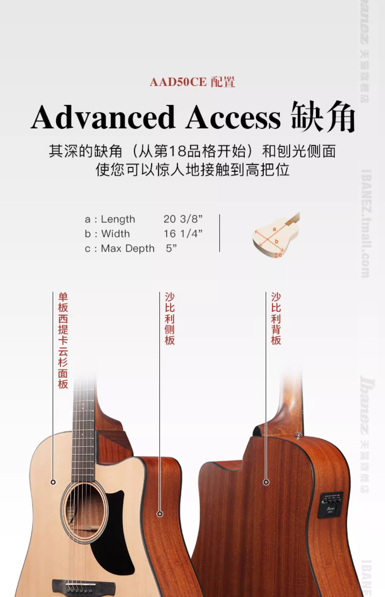 Ibanez 공식 플래그십 스토어 Ibana AAD50 시리즈 Ack 기타 어쿠스틱 기타 고급 연습 목록스토어 가기