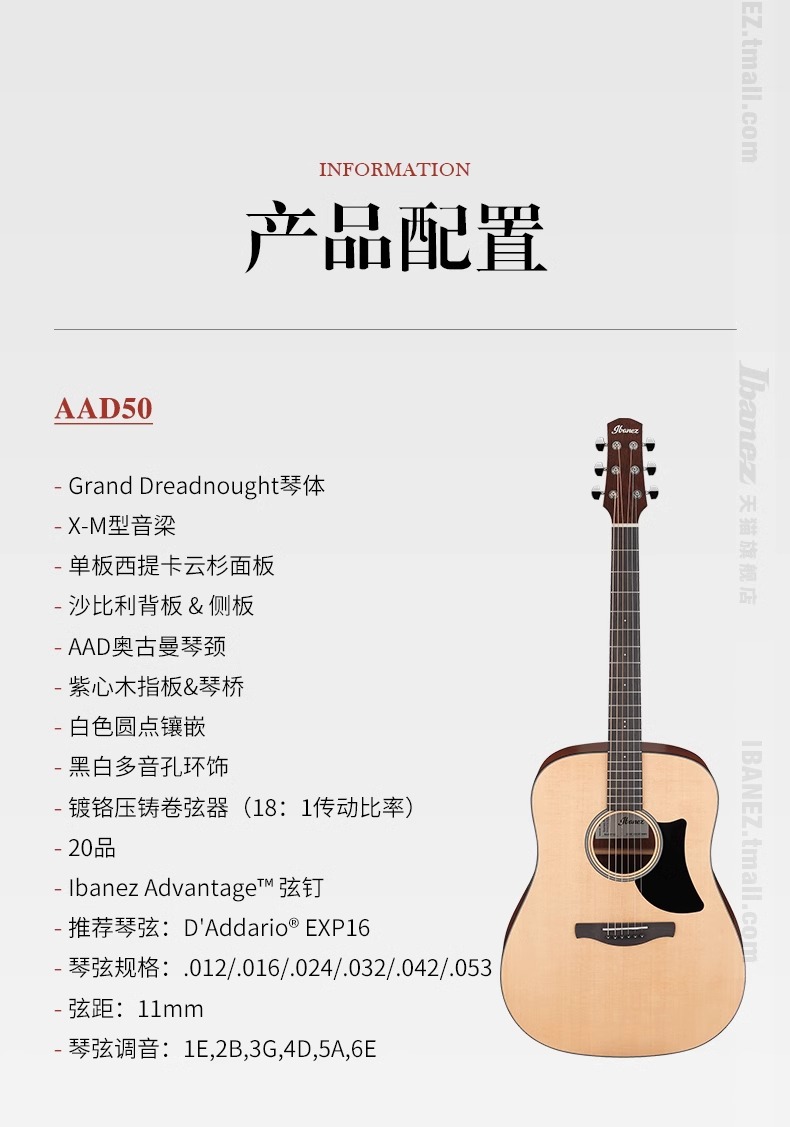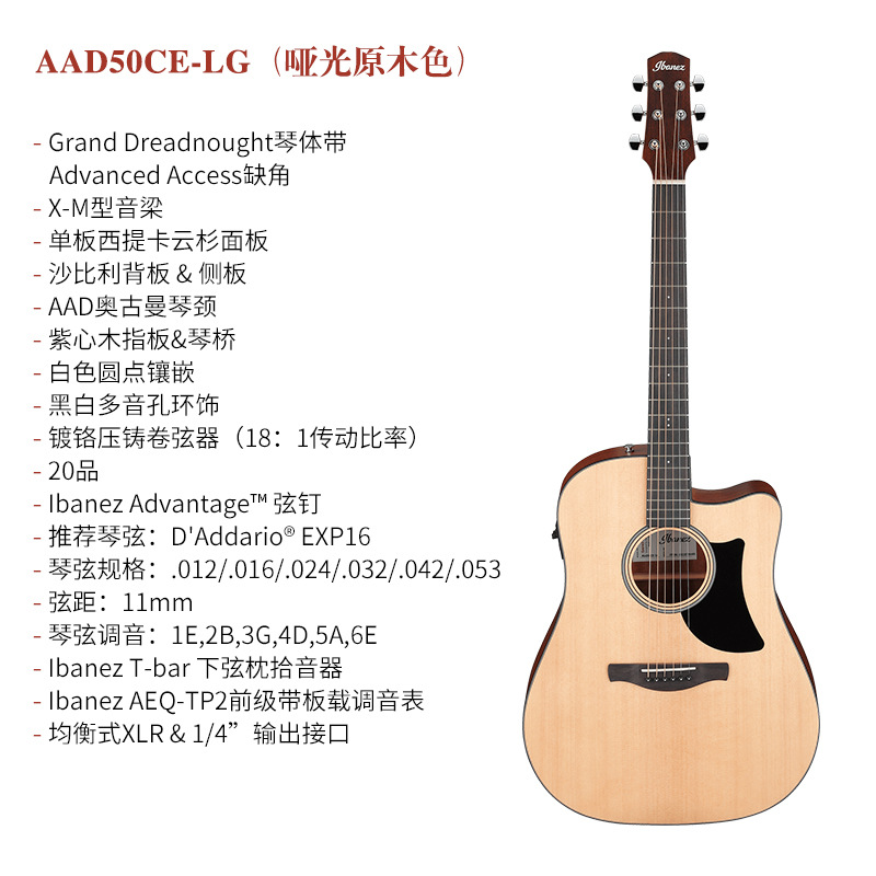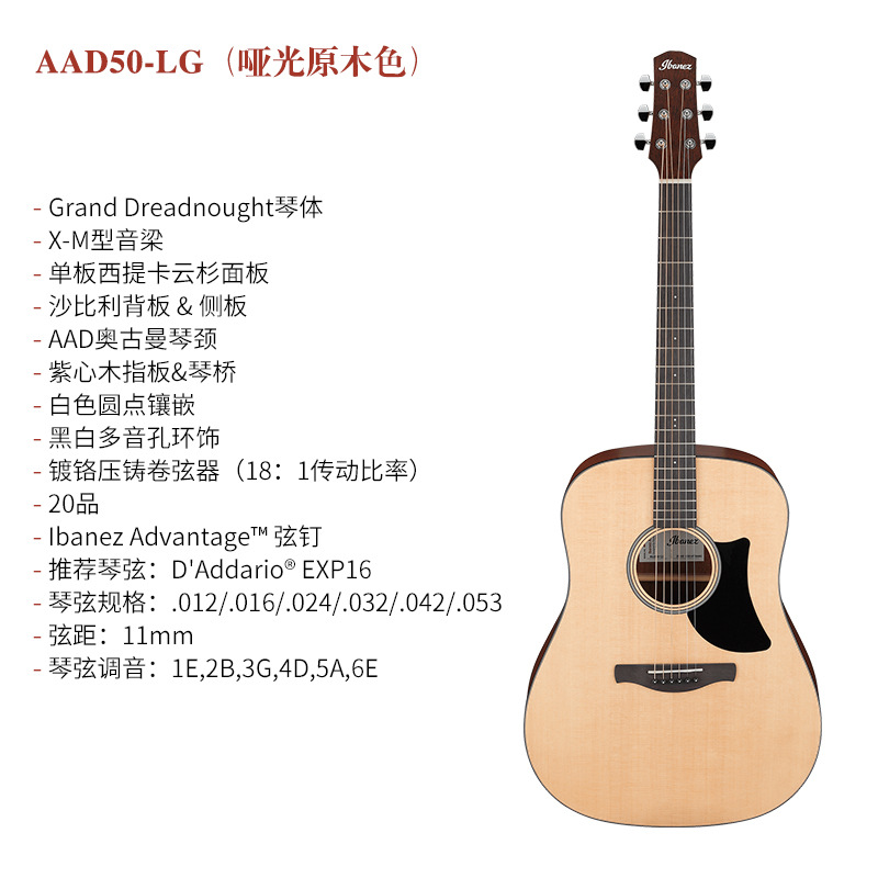Ibanez 공식 플래그십 스토어 Ibana AAD50 시리즈 Ack 기타 어쿠스틱 기타 고급 연습 목록