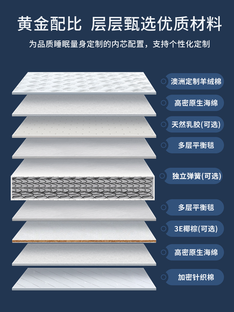 • Yunduo 캐시미어 원단 + 독립 압축 스프링, 약 12cm, 적당히 부드럽고 단단함