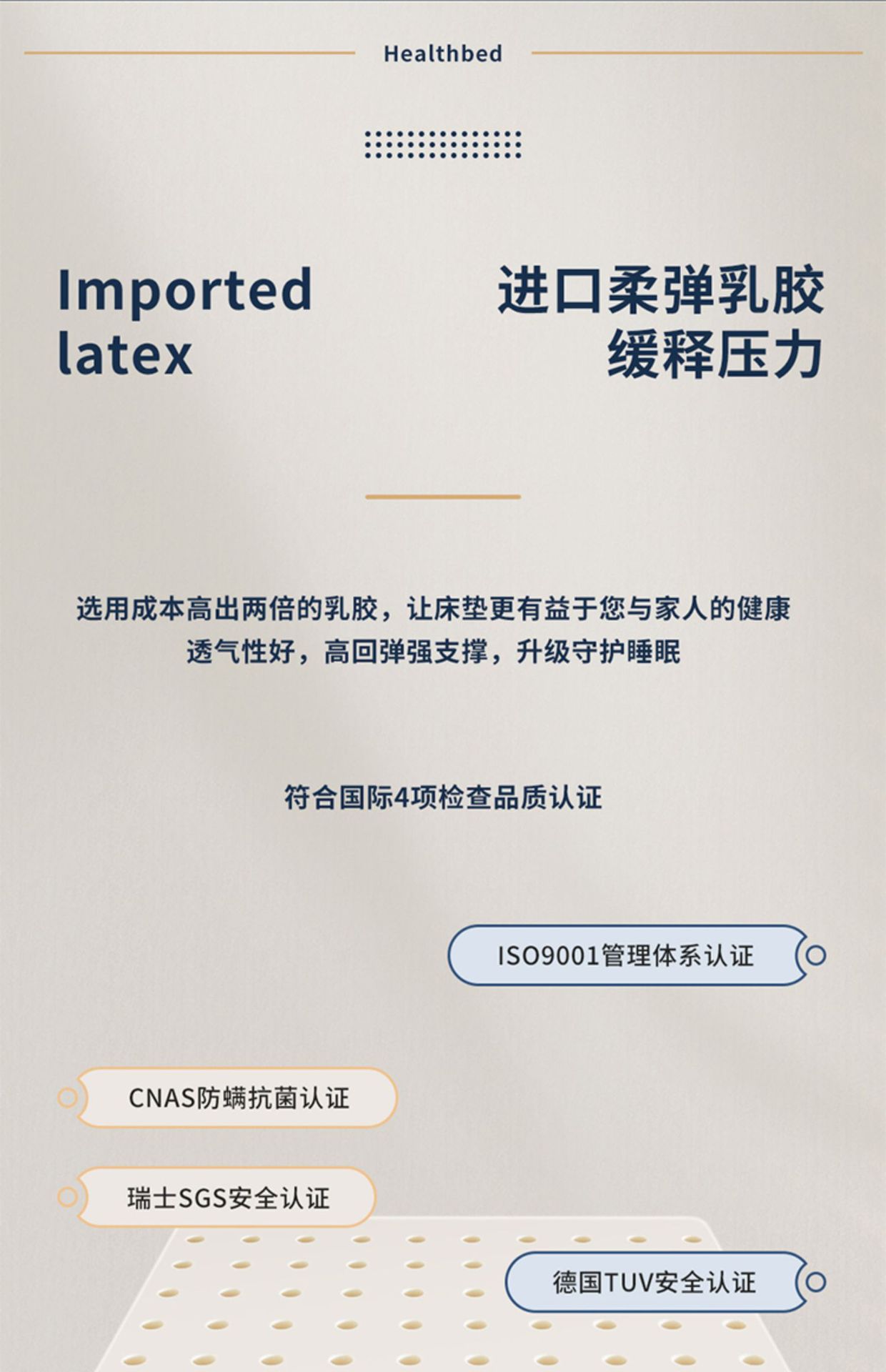• 클라우드 캐시미어 원단 + 스테인레스 스틸 스프링 + 천연 라텍스, 약 22cm, 부드러움