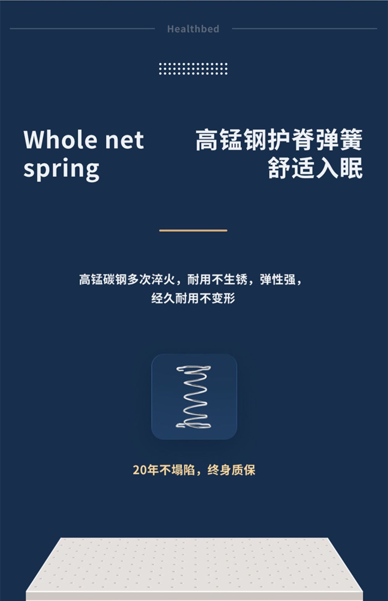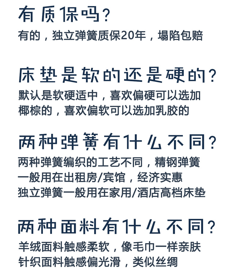 • 클라우드 캐시미어 원단 + 독립 스프링, 약 20cm, 적당한 부드러움과 경도