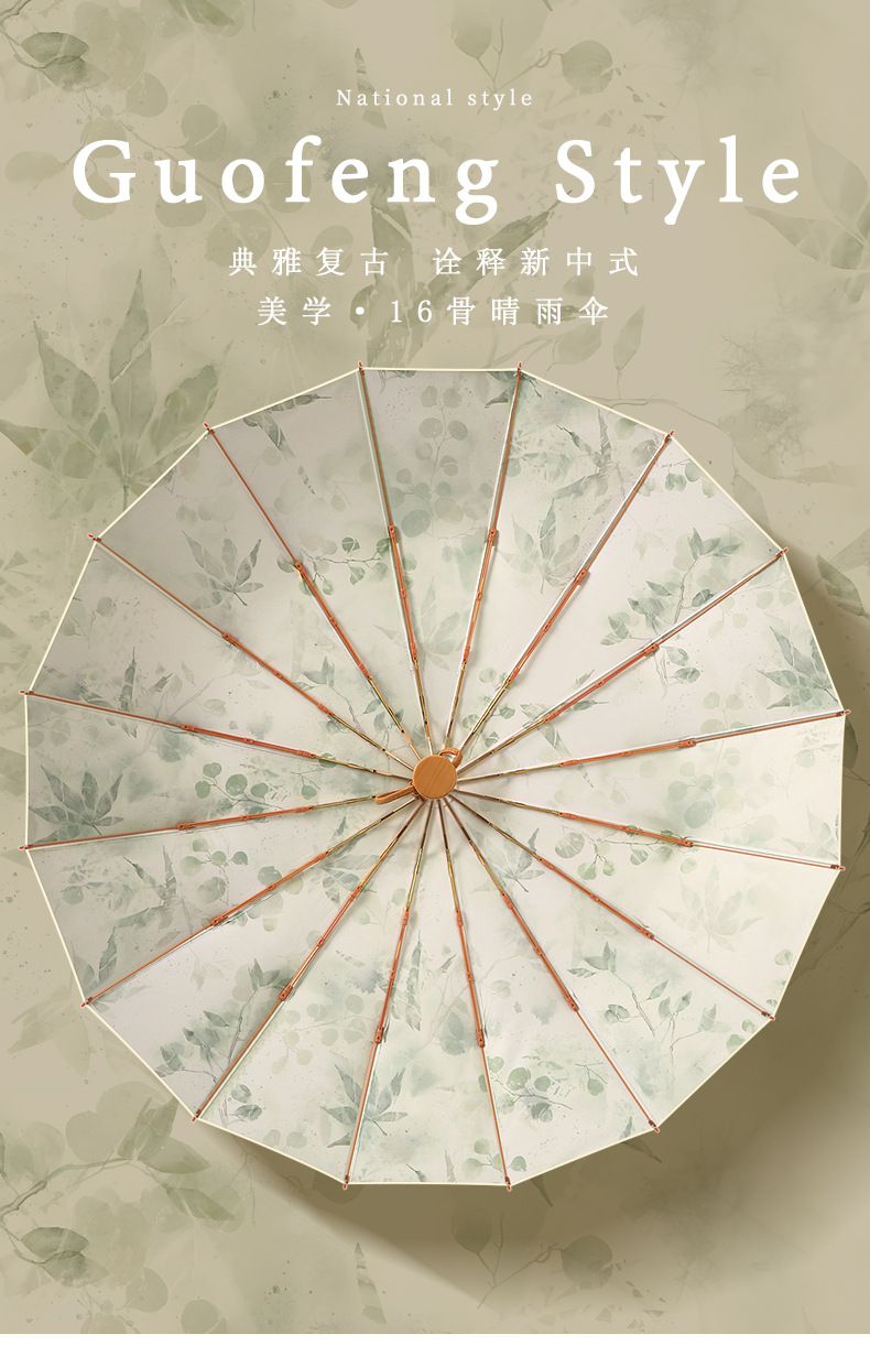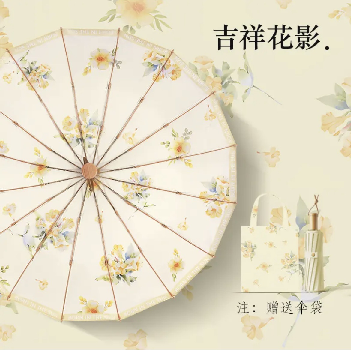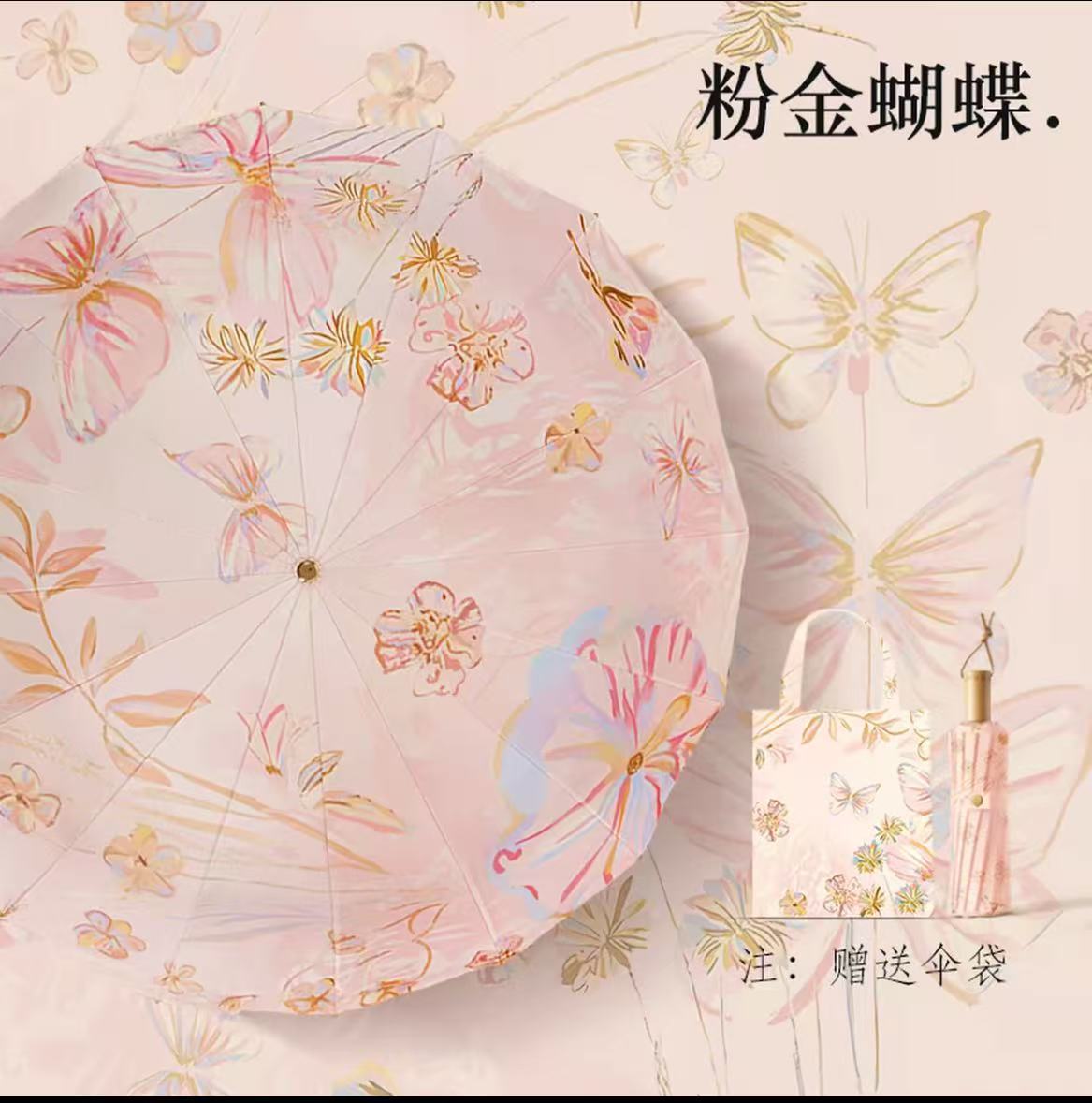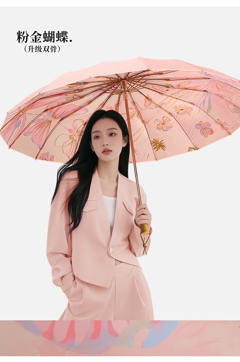 16 뼈 초대형 골드 컬러 접착제 선스크린 우산 슈퍼 안티 자외선 햇빛 우산 이중 목적 여성의 새로운 중국 스타일 Guofeng 시리즈