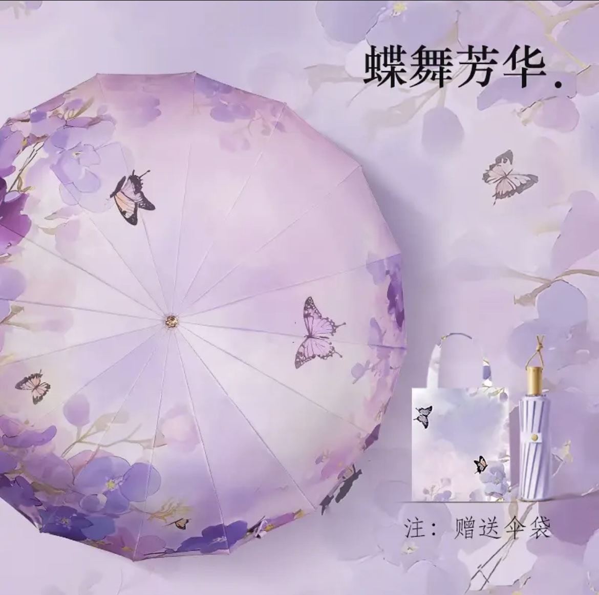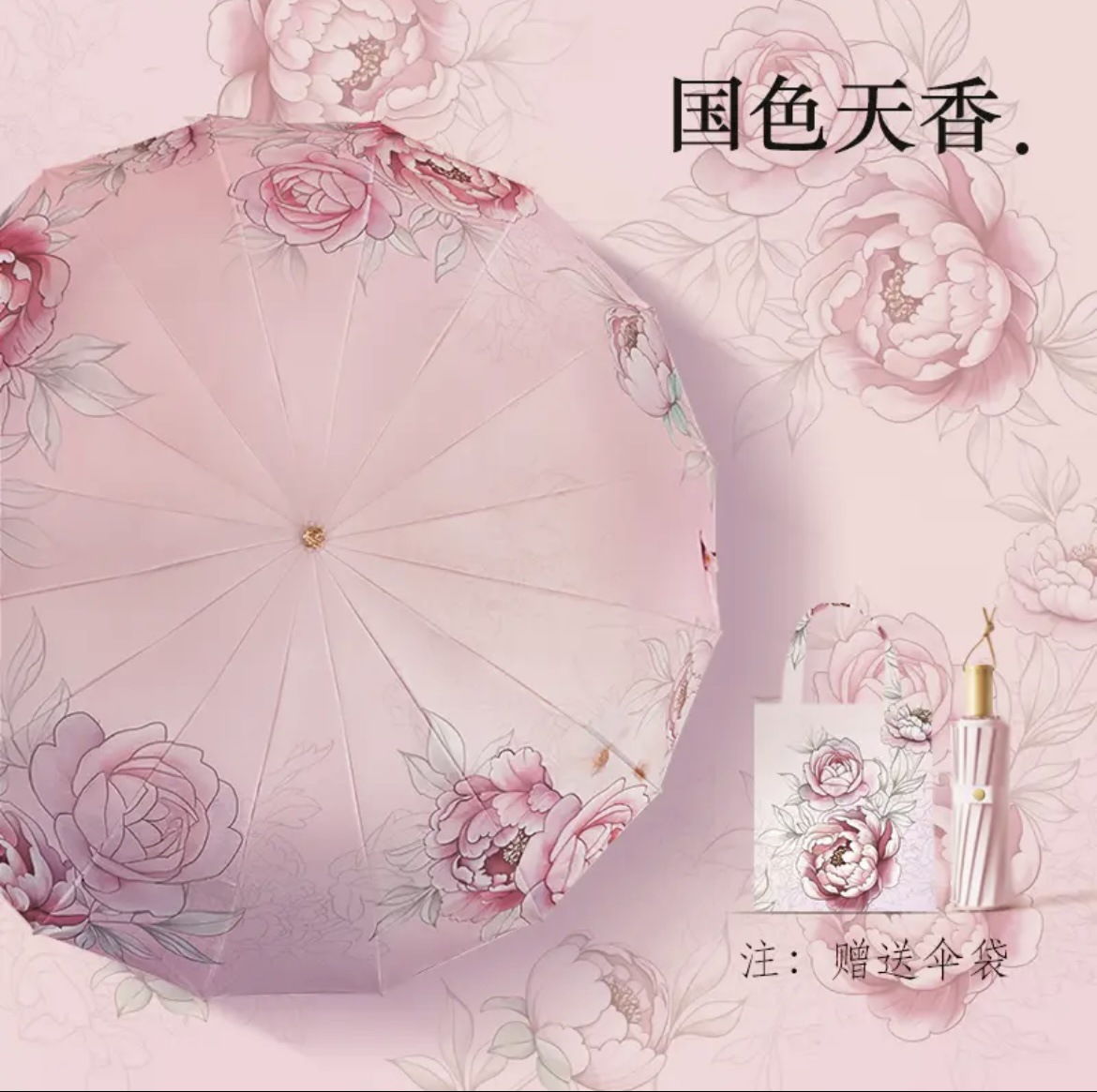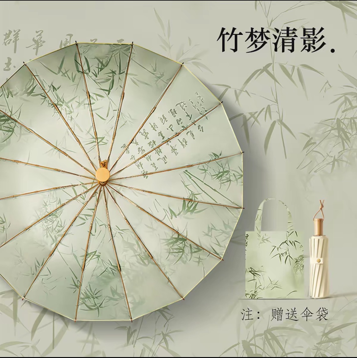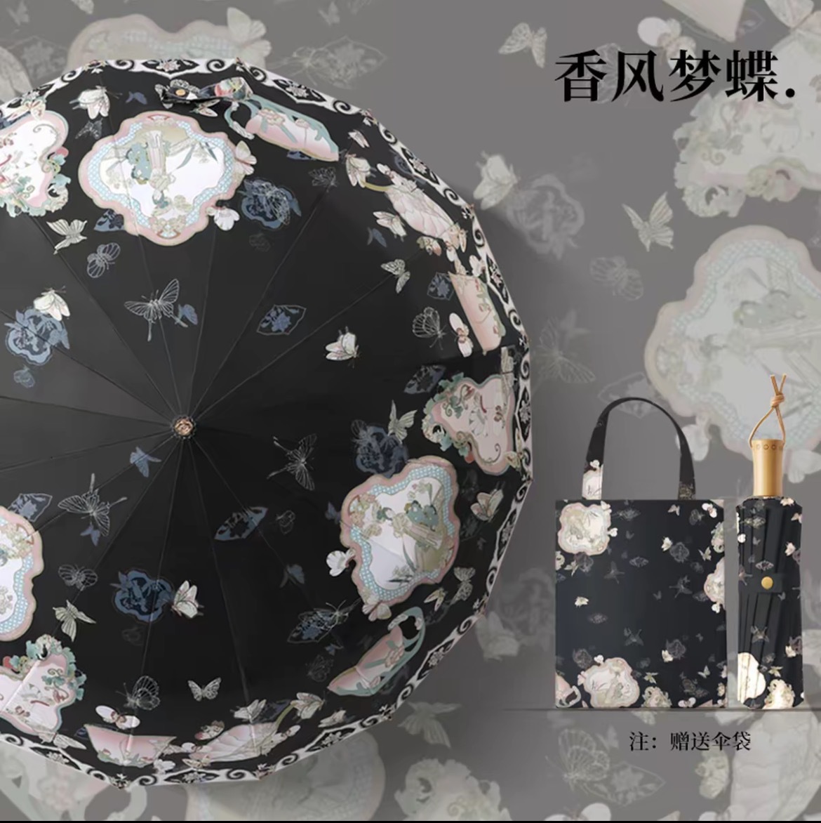 16 뼈 초대형 골드 컬러 접착제 선스크린 우산 슈퍼 안티 자외선 햇빛 우산 이중 목적 여성의 새로운 중국 스타일 Guofeng 시리즈