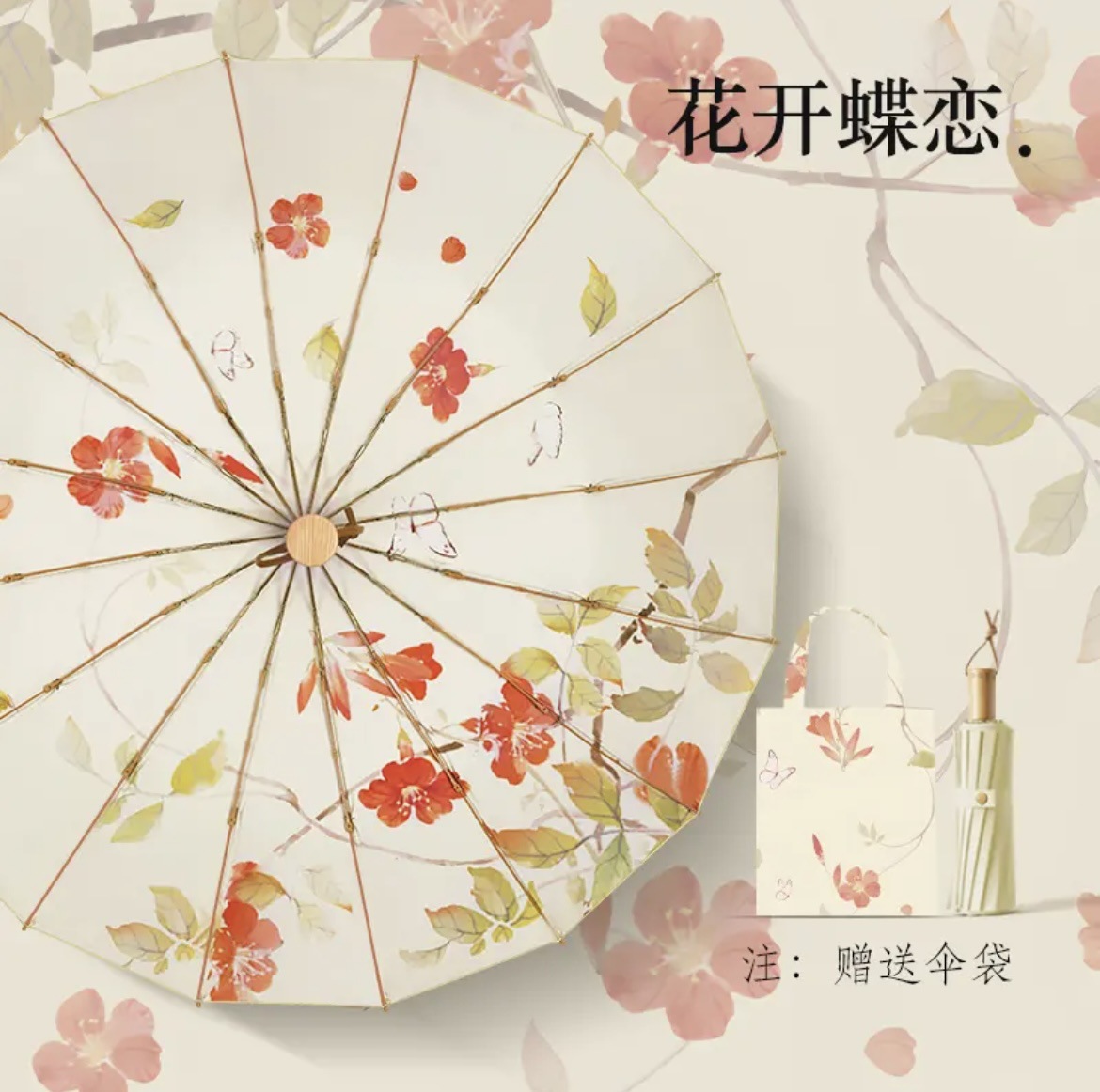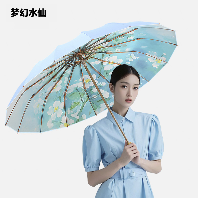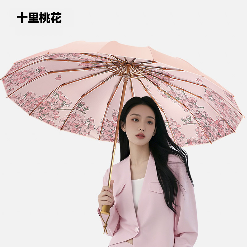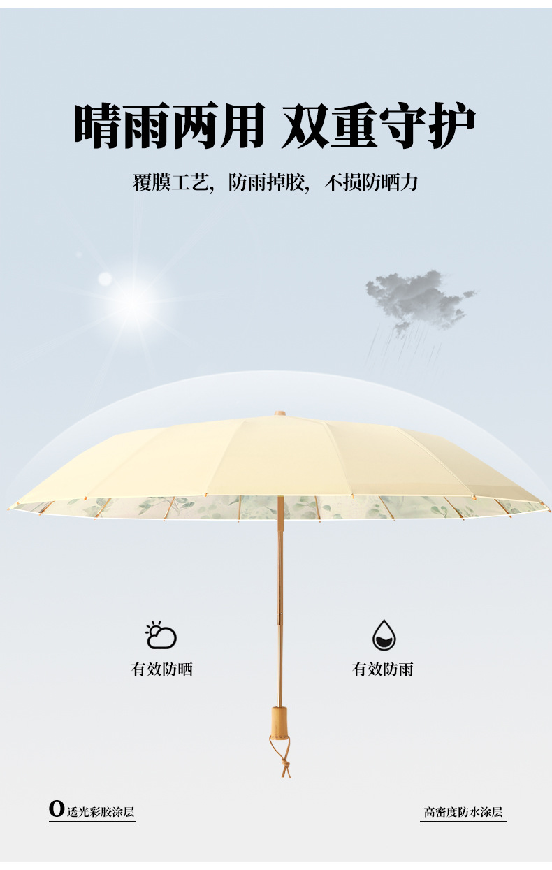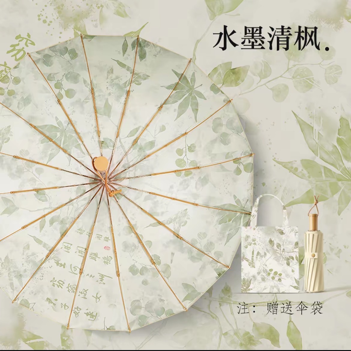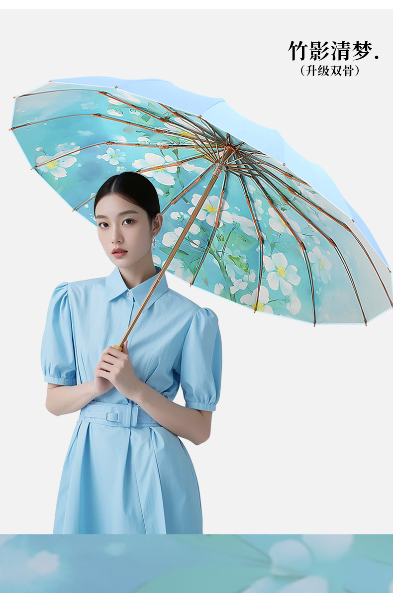 16 뼈 초대형 골드 컬러 접착제 선스크린 우산 슈퍼 안티 자외선 햇빛 우산 이중 목적 여성의 새로운 중국 스타일 Guofeng 시리즈