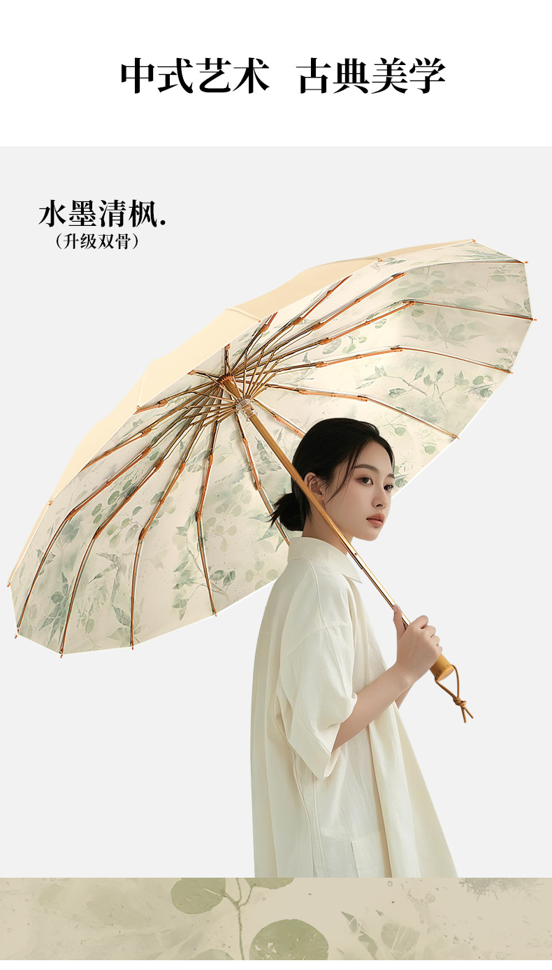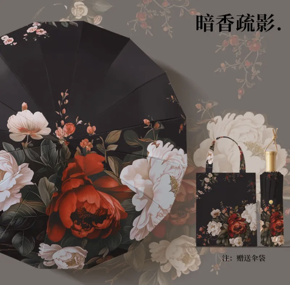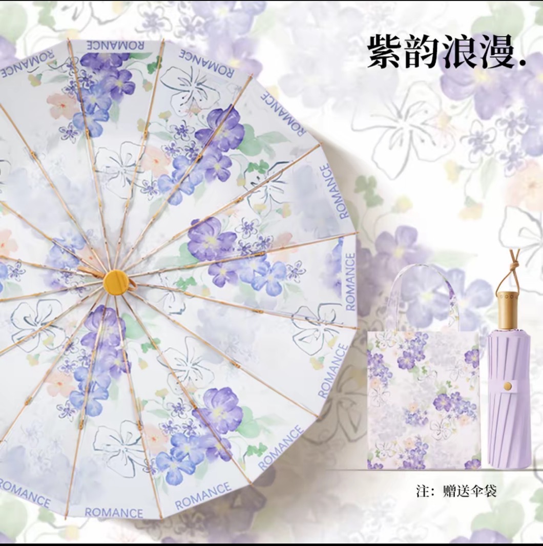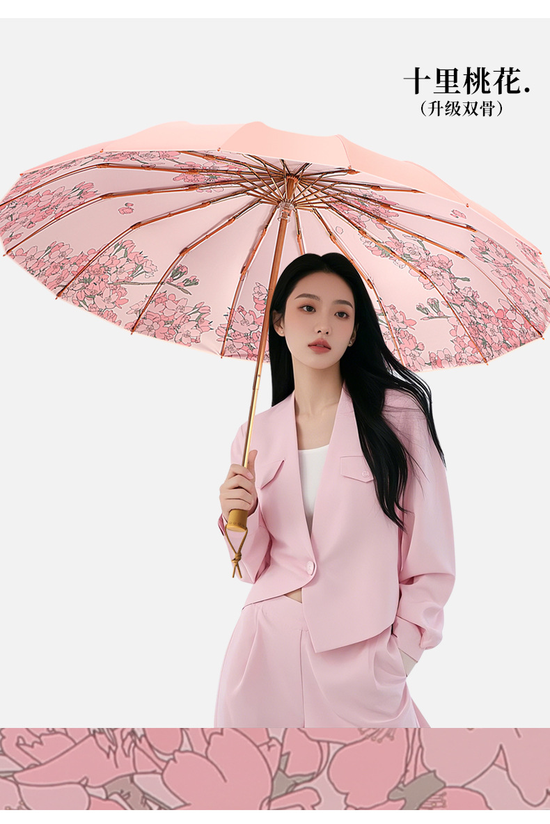 16 뼈 초대형 골드 컬러 접착제 선스크린 우산 슈퍼 안티 자외선 햇빛 우산 이중 목적 여성의 새로운 중국 스타일 Guofeng 시리즈