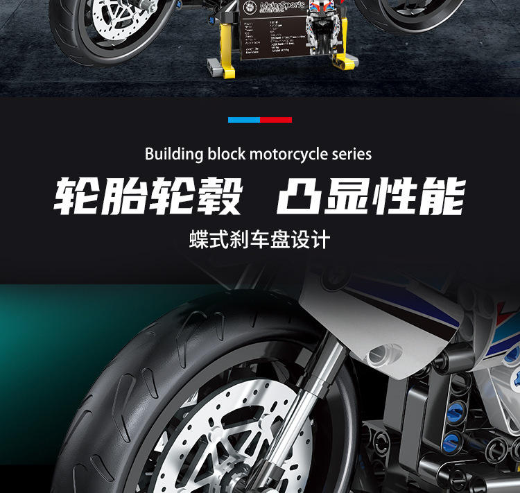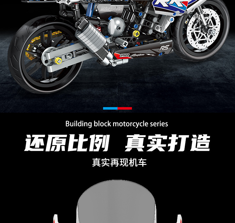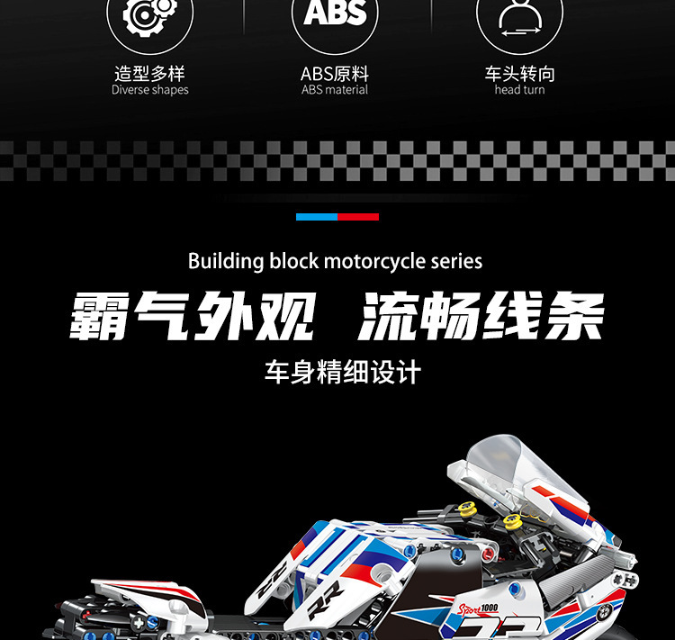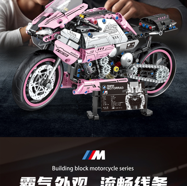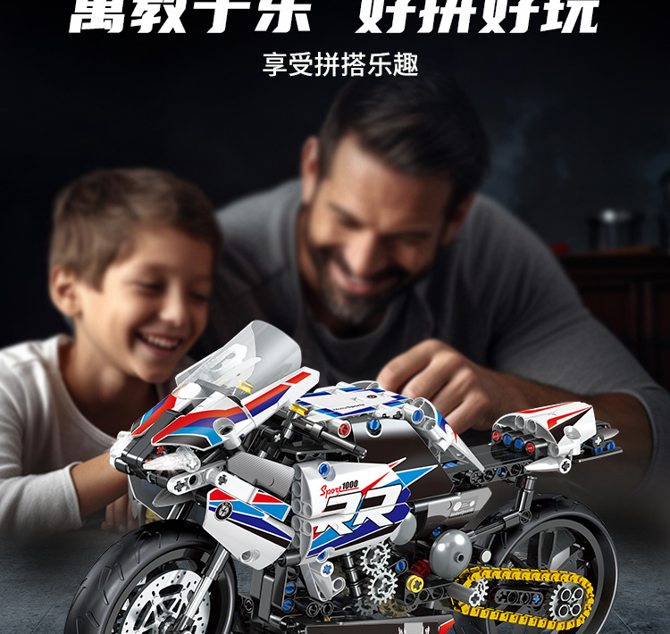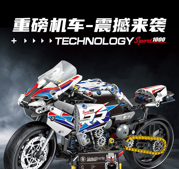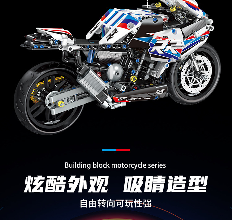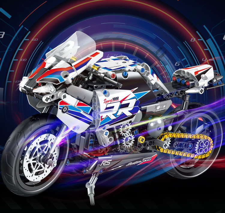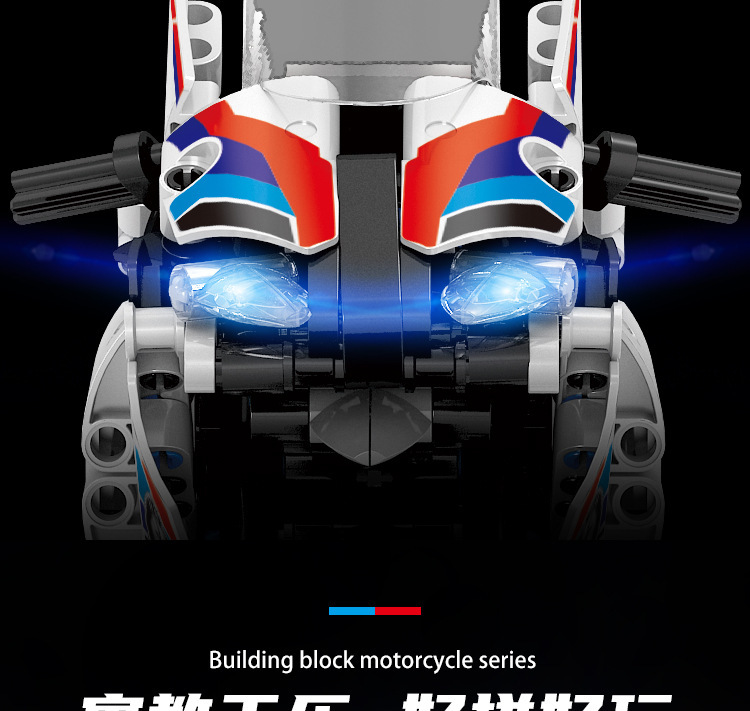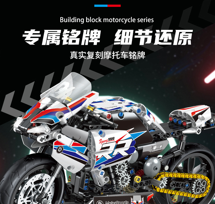 국경 호환 레고 벽돌 BMW 더블 R 오토바이 벽돌 직교 자동차 모델 기계 세트 퍼즐 소년