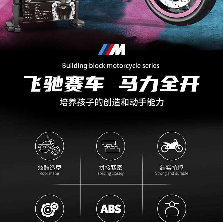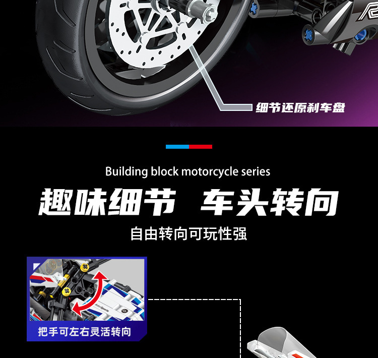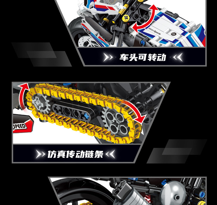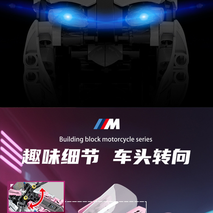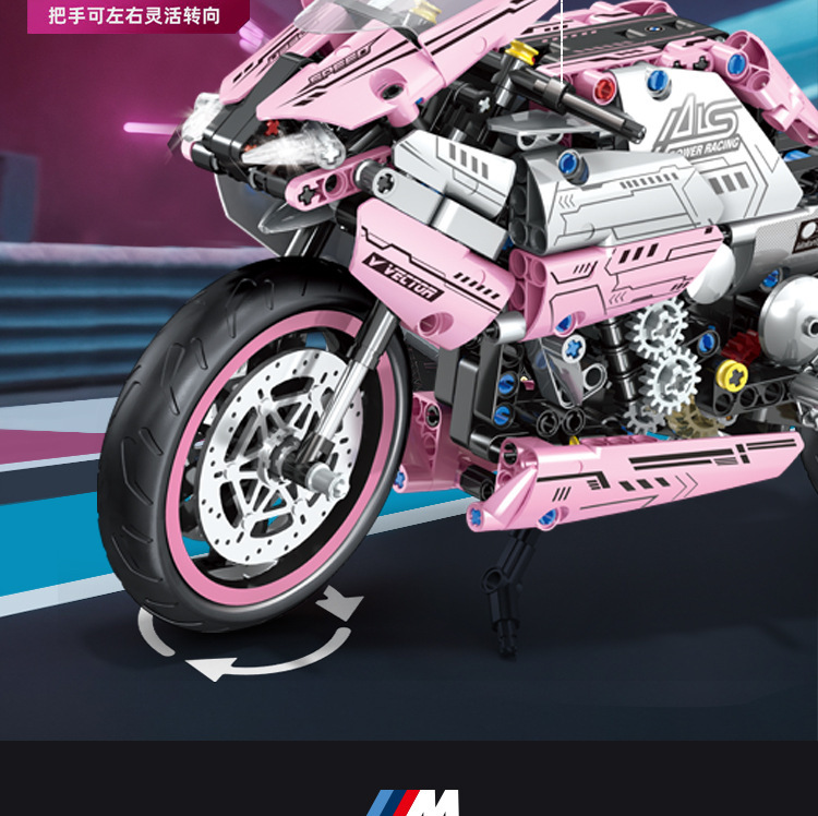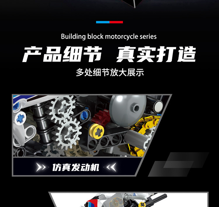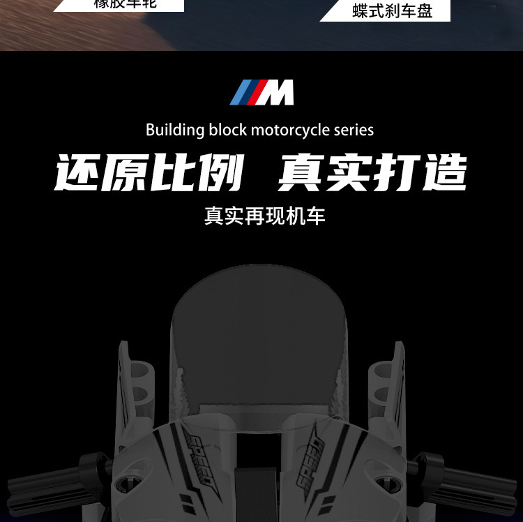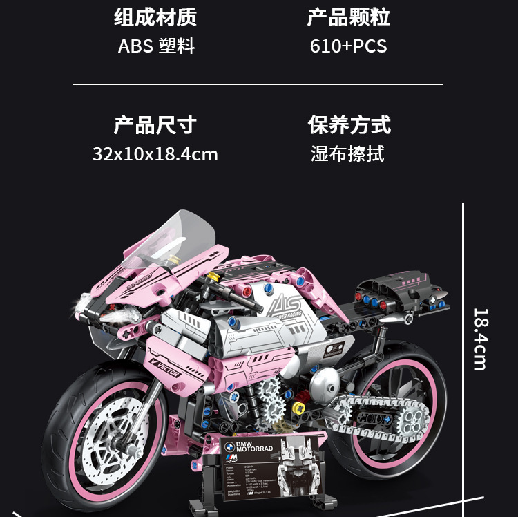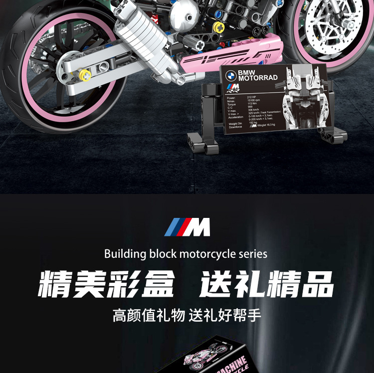국경 호환 레고 벽돌 BMW 더블 R 오토바이 벽돌 직교 자동차 모델 기계 세트 퍼즐 소년
