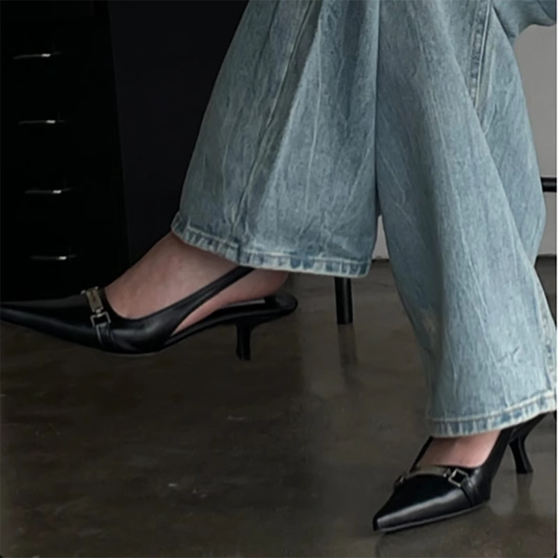 캣힐 포인티드토 하이힐 슬림힐 토캡 슈즈 2026년 신상 니치 디자인 센스있는 얕은 입구 미들힐 샌들 여성용
