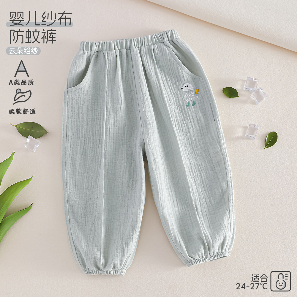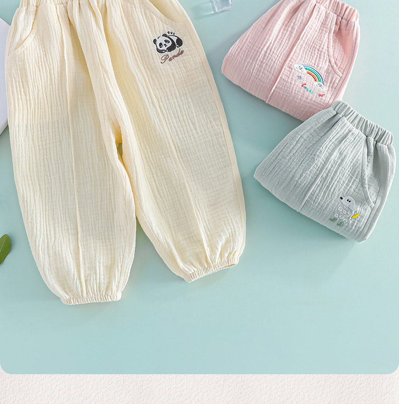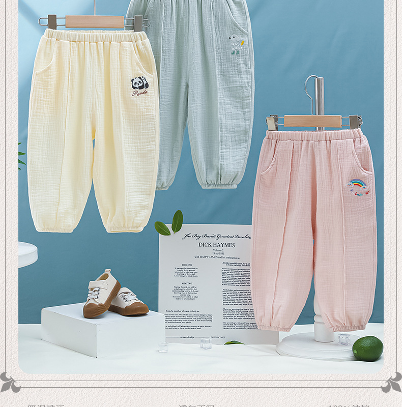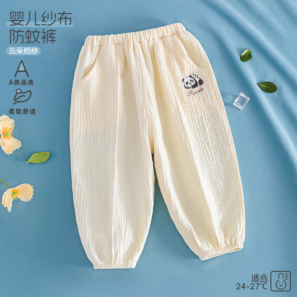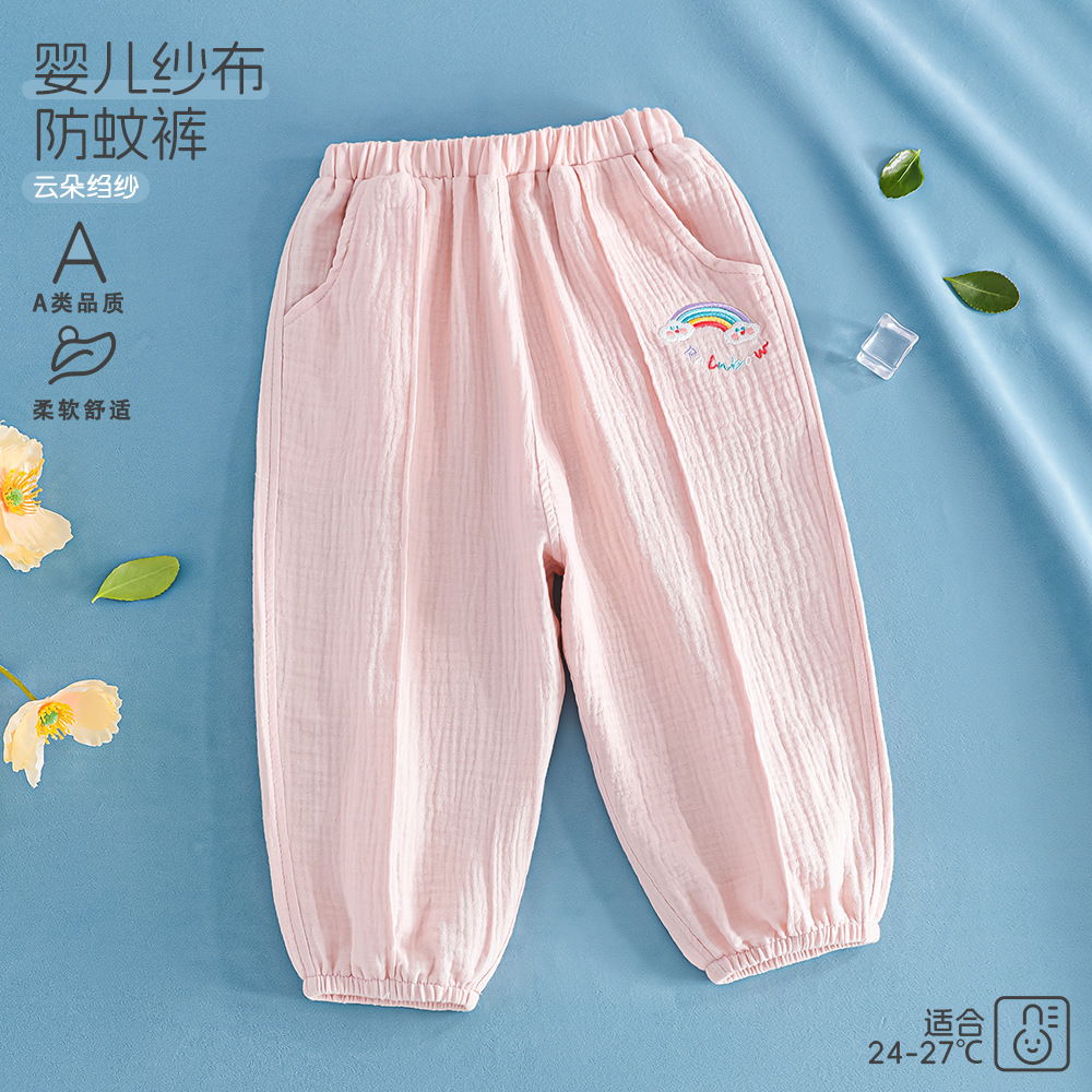 어린이 착용 2025 봄 어린이 모기 방지 바지 거즈 순면 소녀 바지 봄과 여름 얇은 통기성 아기 홈 바지
