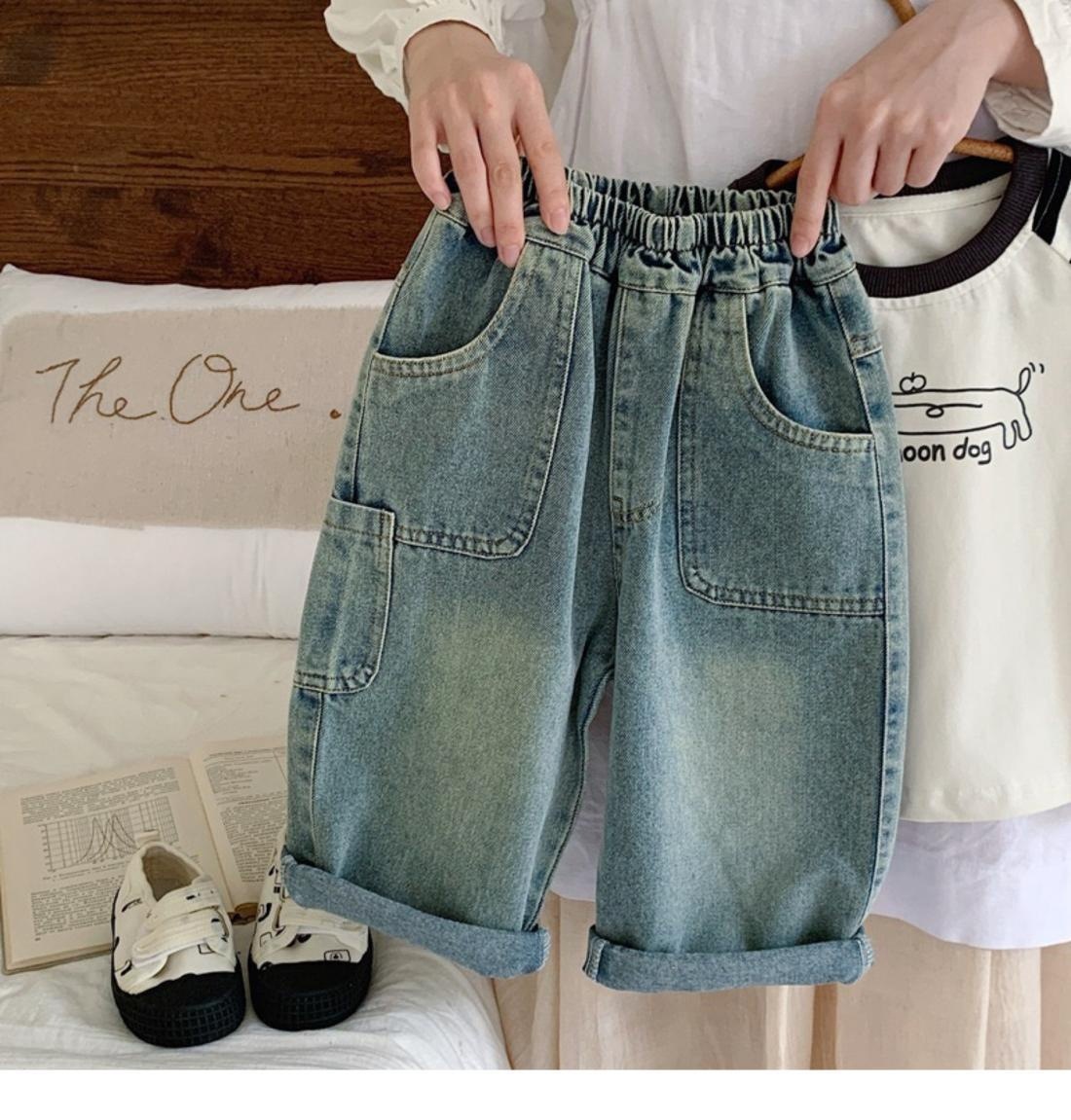일본식 레트로 소년 가을 드레스 청바지 소녀 한국 스타일 어린이 느슨한 아기 유행 시원한 봄과 가을 스트레이트 다리 바지스토어 가기