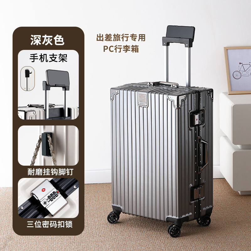 수하물 케이스 대용량 알루미늄 프레임 트롤리 케이스 모든 알루미늄 항공 탑승 케이스 두꺼운 수하물 가방 암호 상자